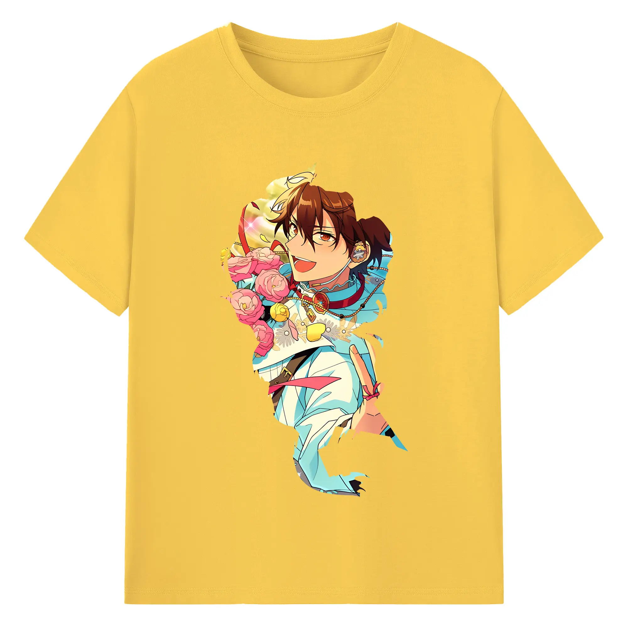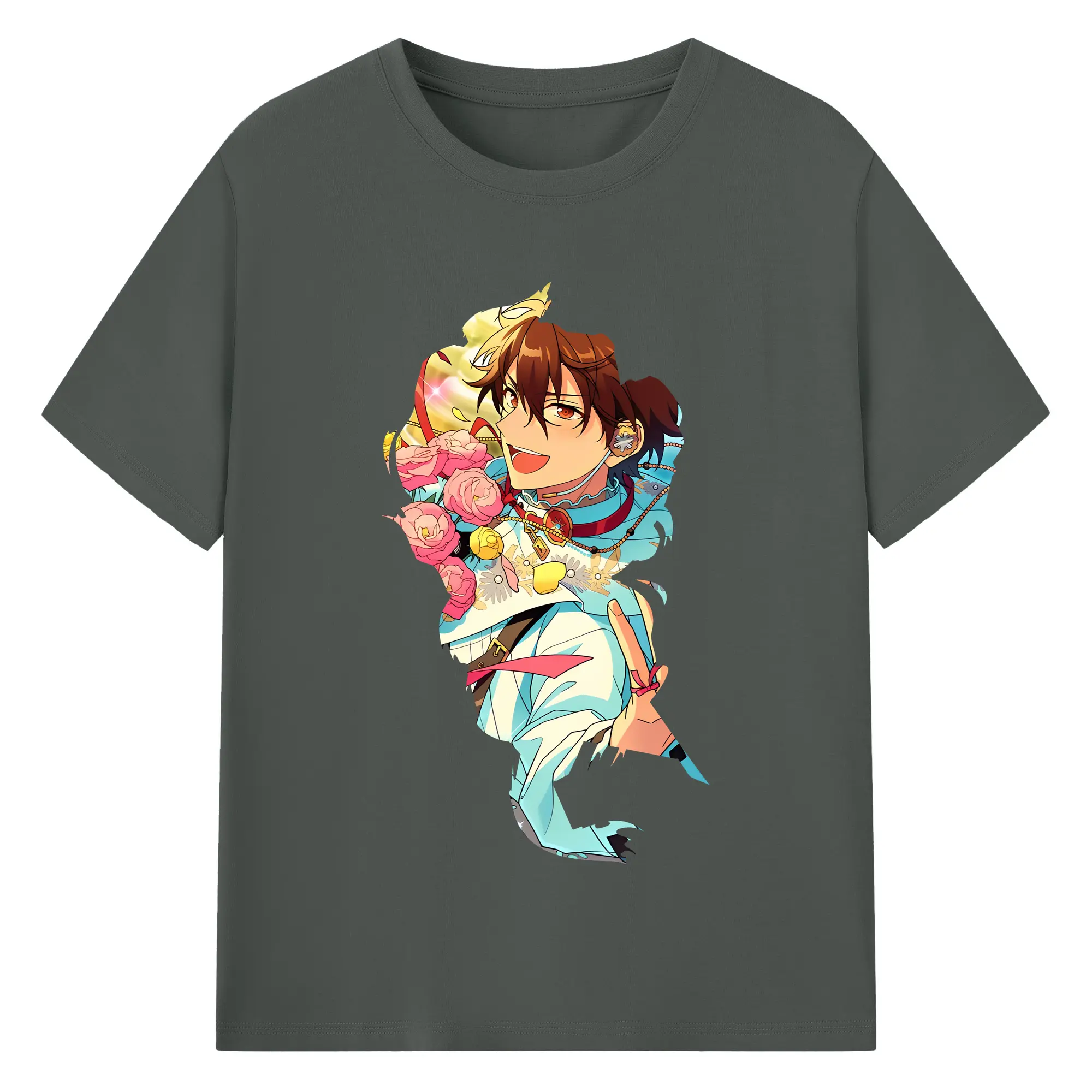 あんさん ぶる グッズ 流星隊 守沢千秋 - 綿100% ヴィンテージ風 半袖Tシャツ ・ フロントプリント ・ 柔らか肌触り ・ 通気性 快適 ・ スポーツ カジュアル 外出用