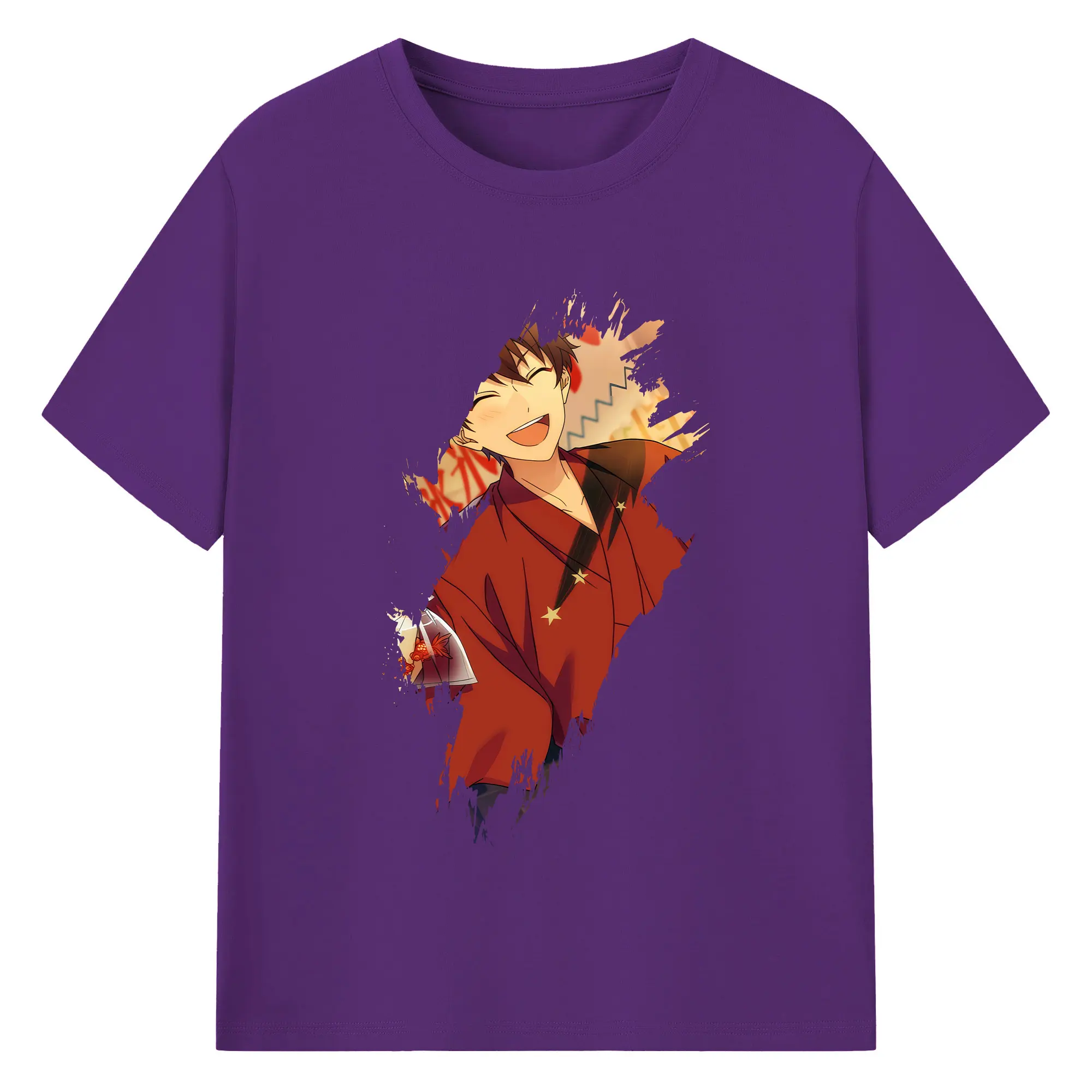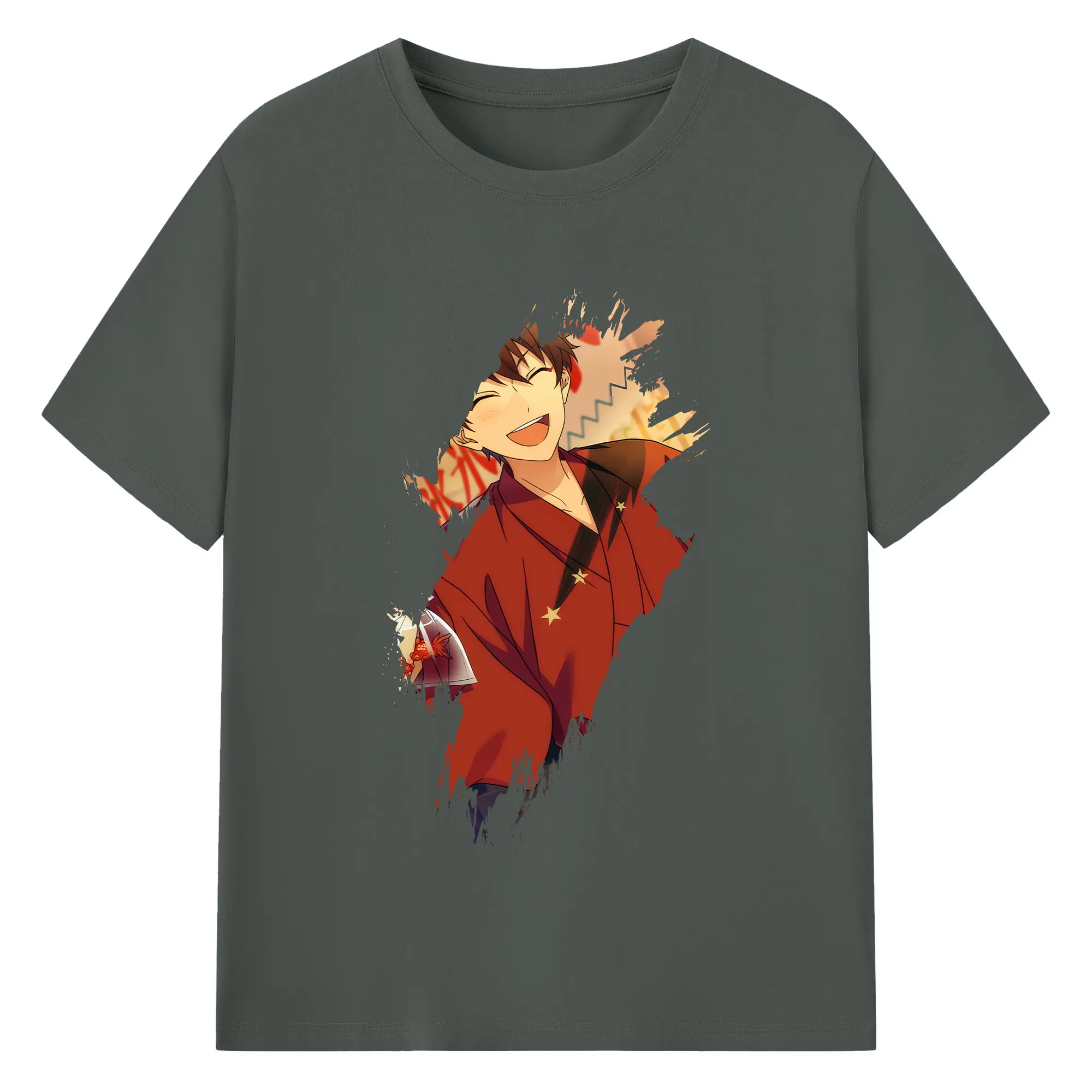 名探偵コナン グッズ 江戸川 コナン - 綿100% 半袖Tシャツ ・ フロントプリント ・ 快適 通気性 ・ 日常使い 散歩 スポーツ用