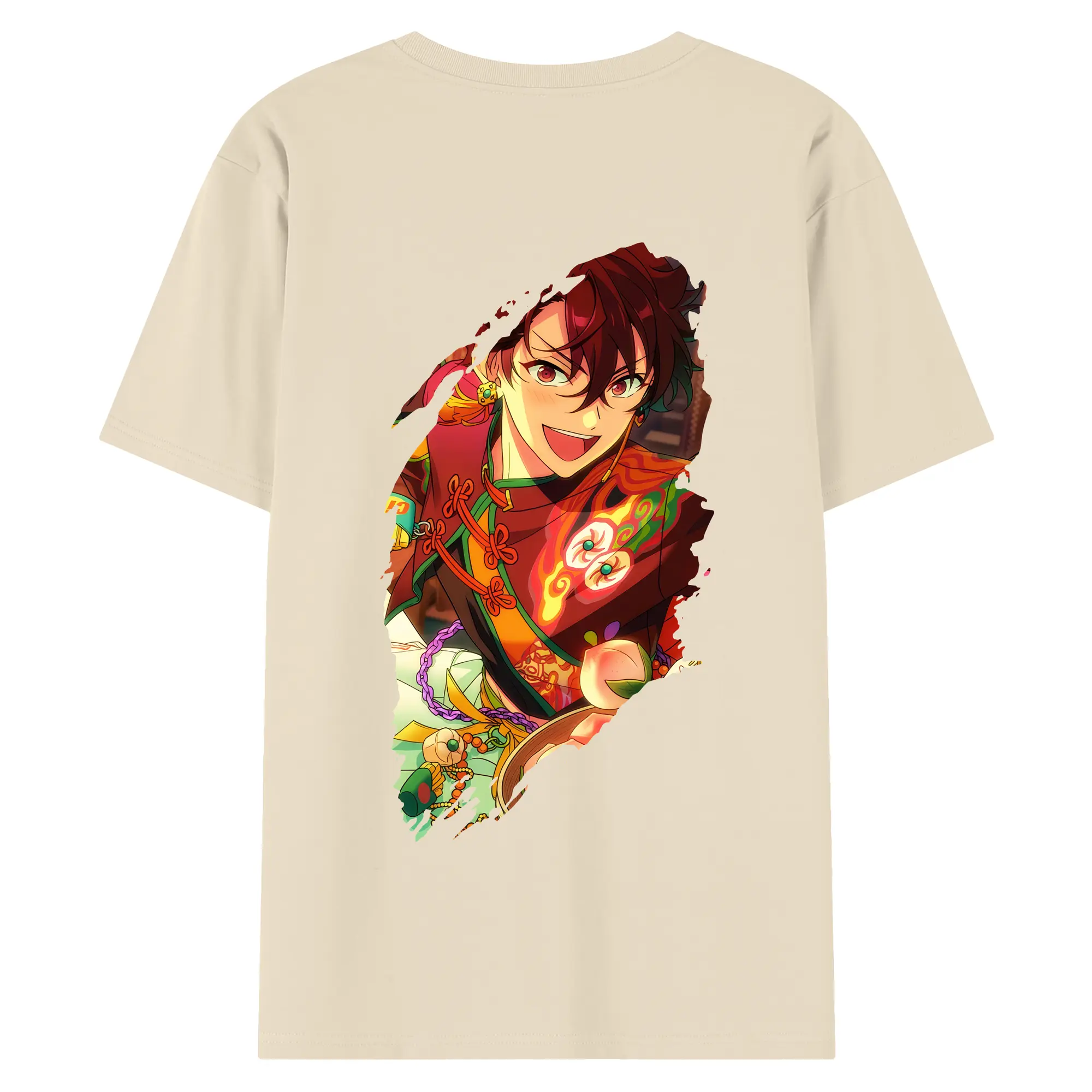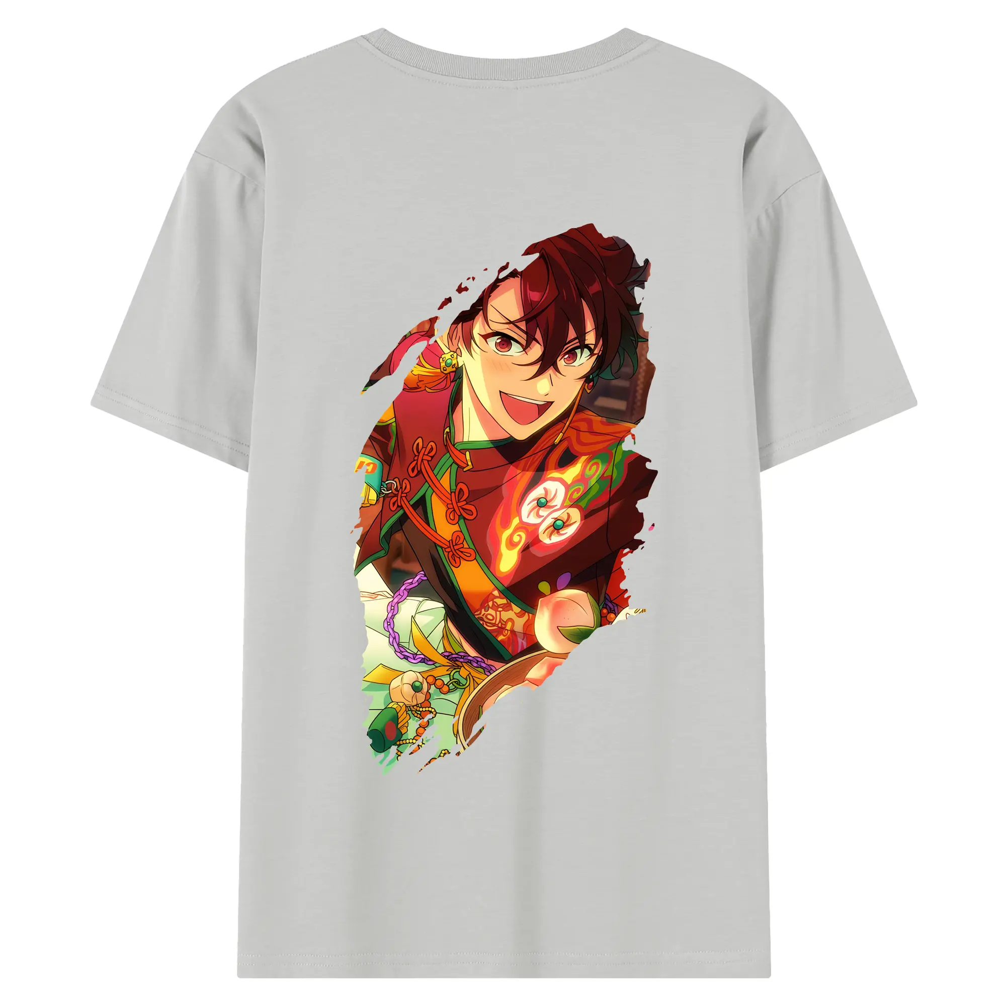 あんさん ぶる グッズ 流星隊 守沢千秋 - 綿100% ヴィンテージ風 半袖Tシャツ ・ 背面プリント ・ 柔らか肌触り ・ 通気性 快適 ・ スポーツ カジュアル 外出用