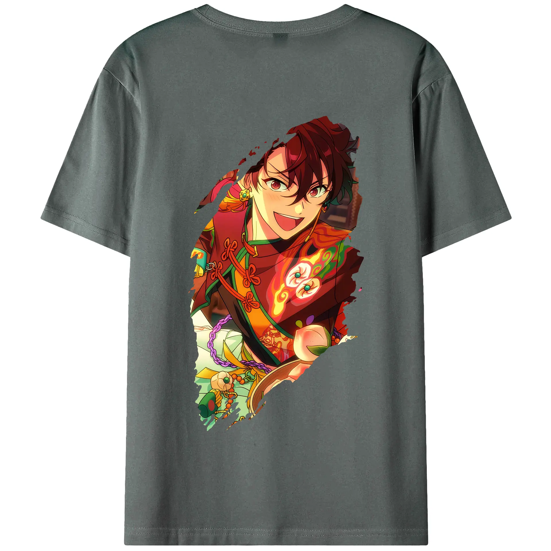 あんさん ぶる グッズ 流星隊 守沢千秋 - 綿100% 半袖Tシャツ ・ フロントプリント ・ 快適 通気性 ・ 日常使い 散歩 スポーツ用