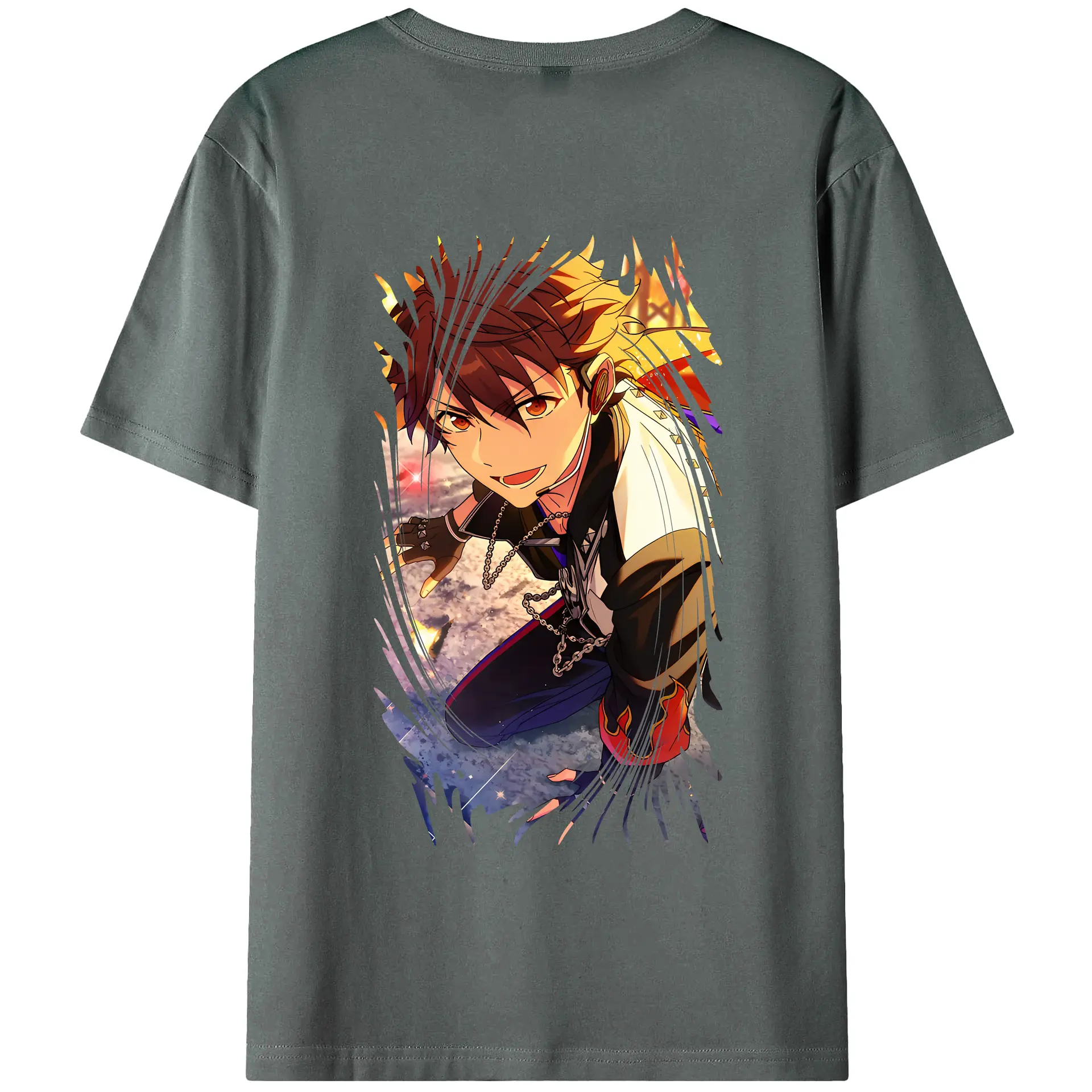 あんさん ぶる グッズ 流星隊 守沢千秋 - 綿100% ヴィンテージ風 半袖Tシャツ ・ 背面プリント ・ 柔らか肌触り ・ 通気性 快適 ・ スポーツ カジュアル 外出用