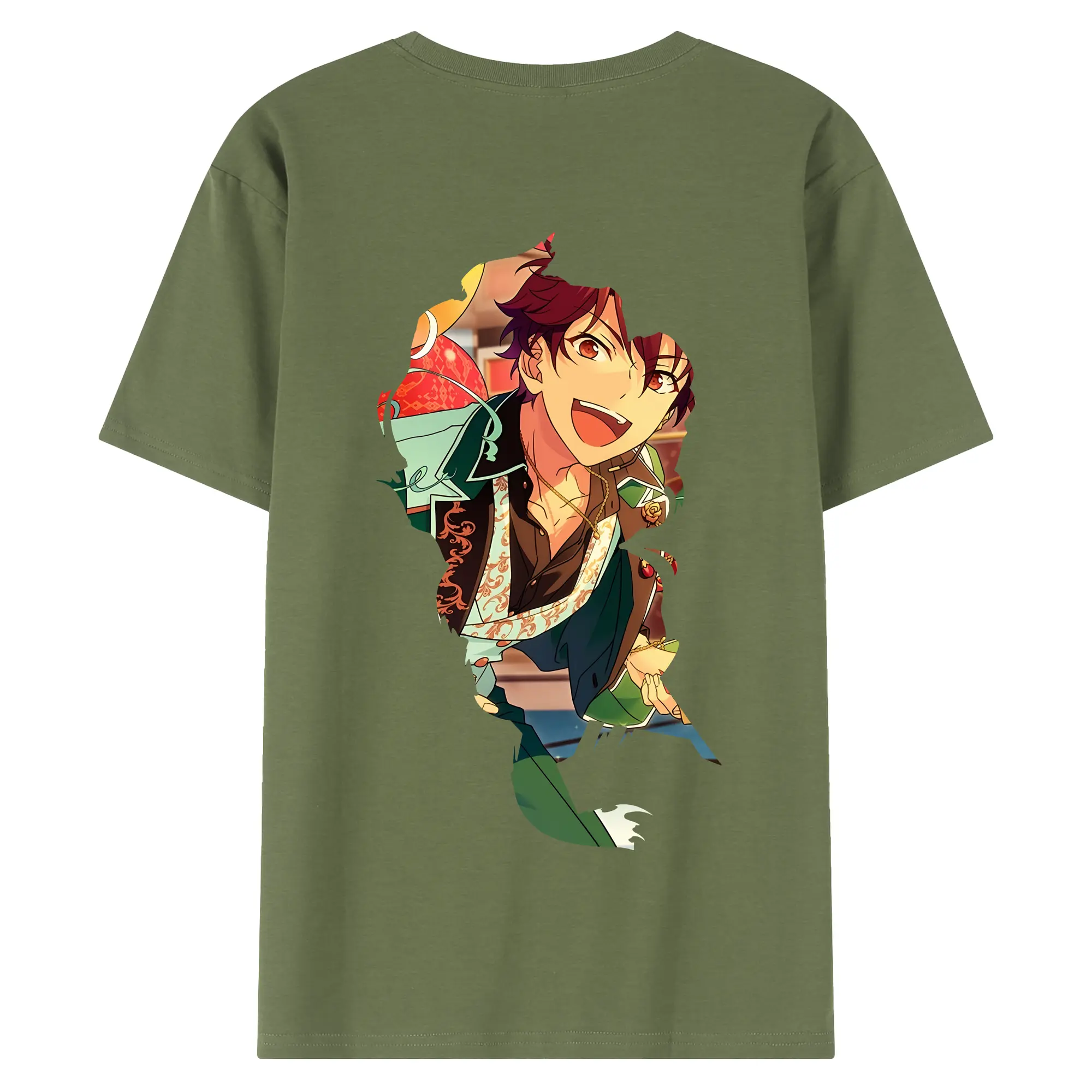 あんさん ぶる グッズ 流星隊 守沢千秋 - 綿100% 半袖Tシャツ ・ フロントプリント ・ 快適 通気性 ・ 日常使い 散歩 スポーツ用