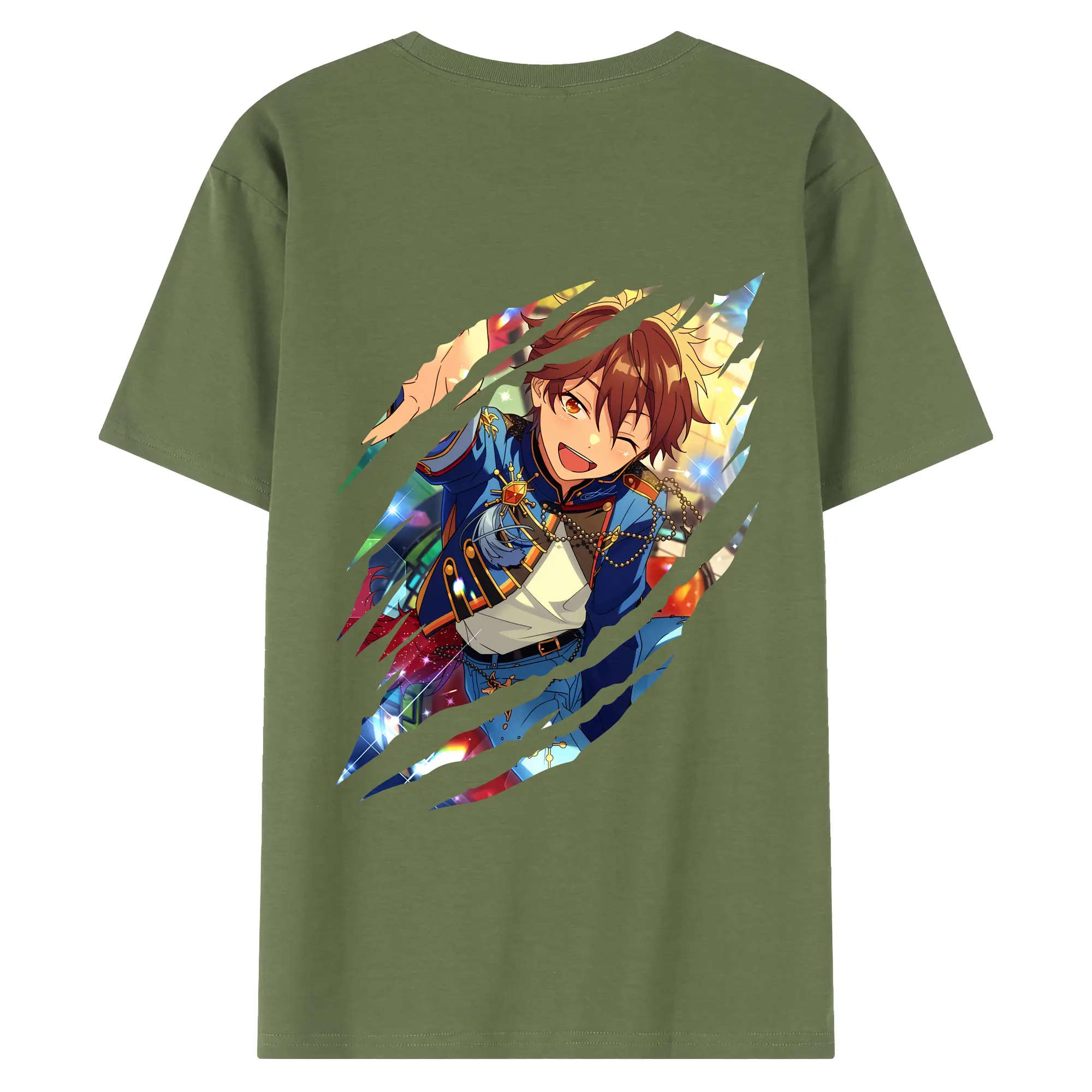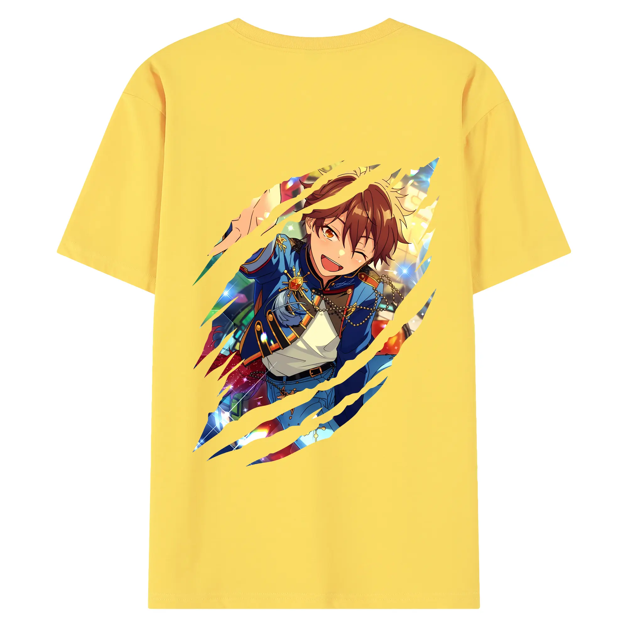 あんさん ぶる グッズ 流星隊 守沢千秋 - 綿100% 半袖Tシャツ ・ フロントプリント ・ 快適 通気性 ・ 日常使い 散歩 スポーツ用