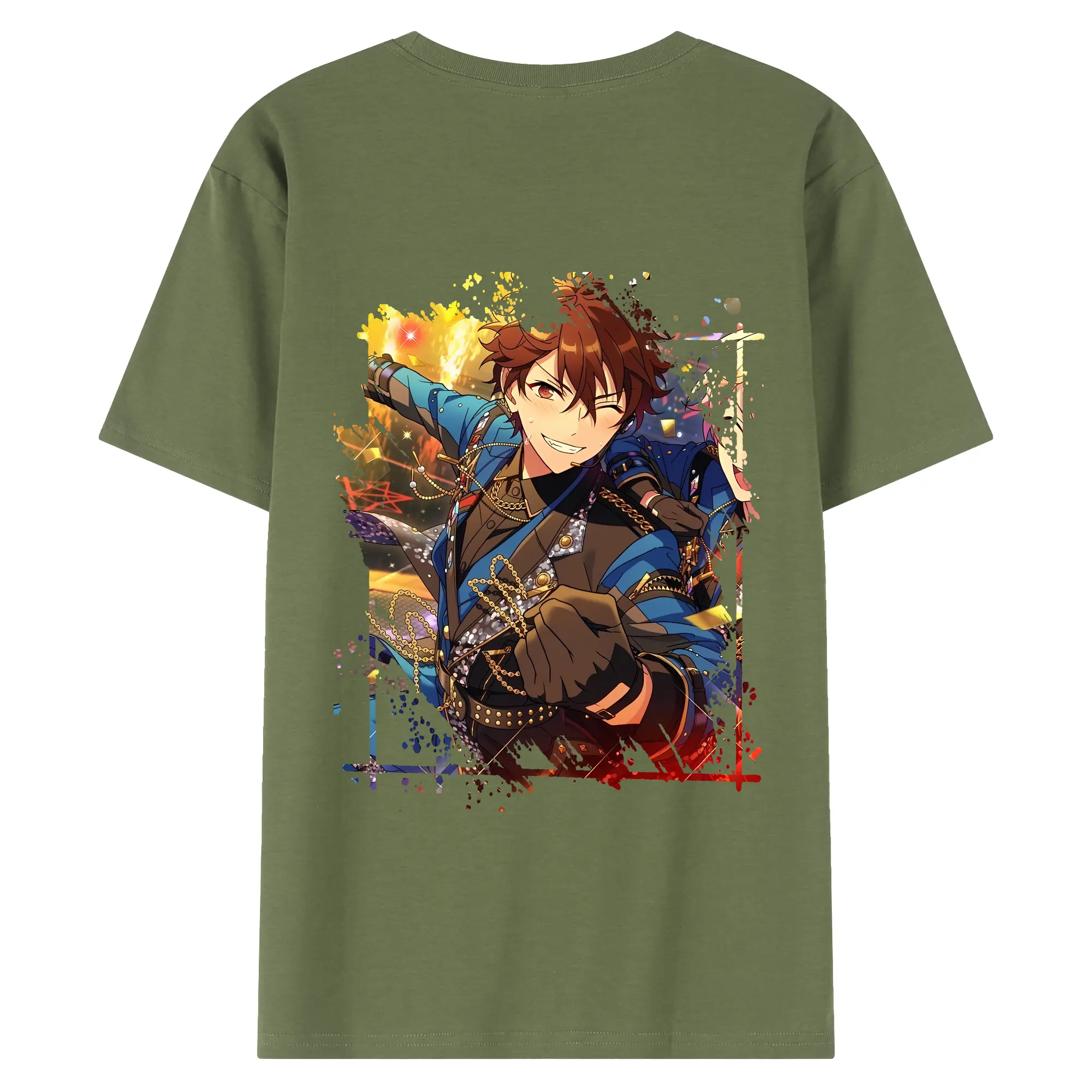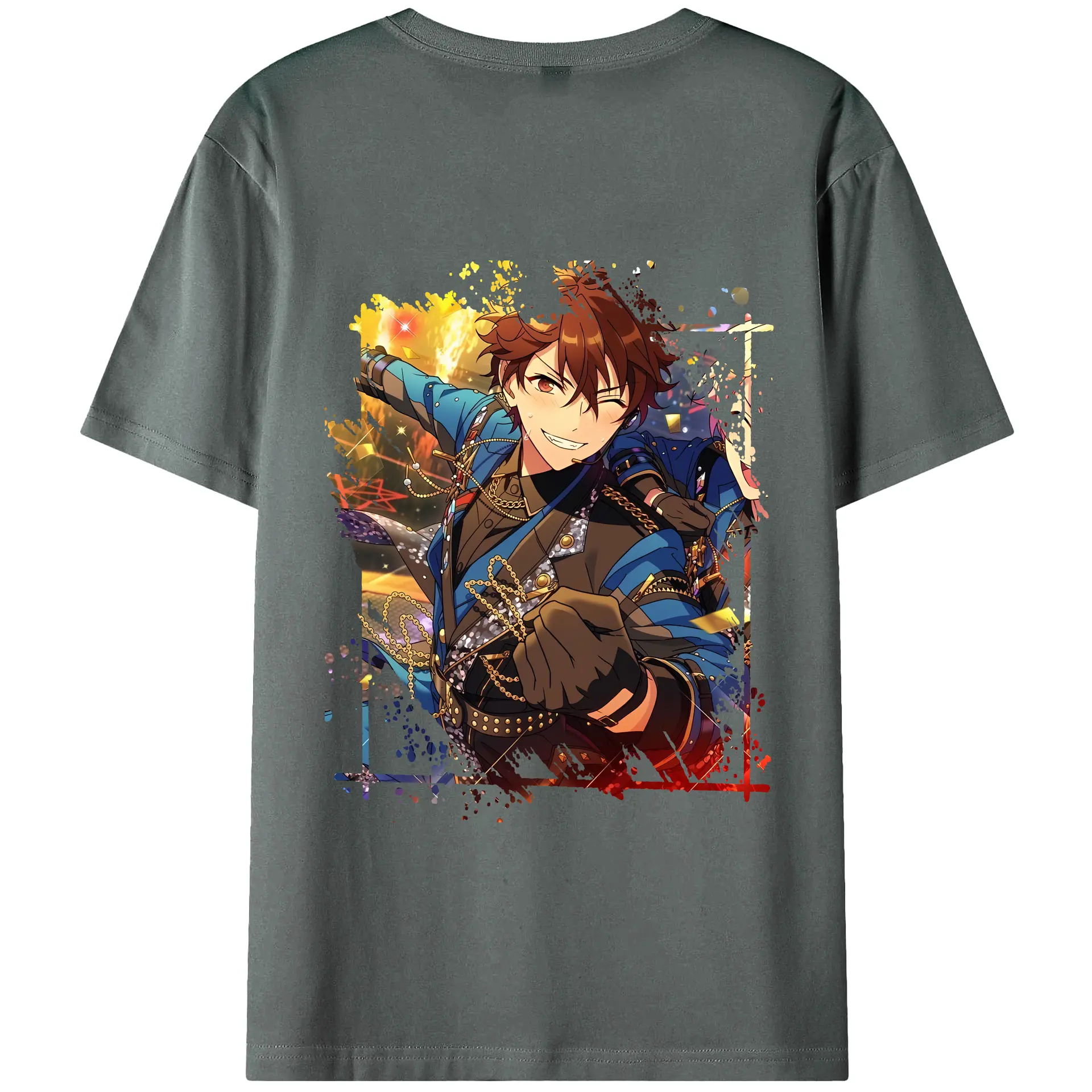 あんさん ぶる グッズ 流星隊 守沢千秋 - 綿100% 半袖Tシャツ ・ フロントプリント ・ 快適 通気性 ・ 日常使い 散歩 スポーツ用