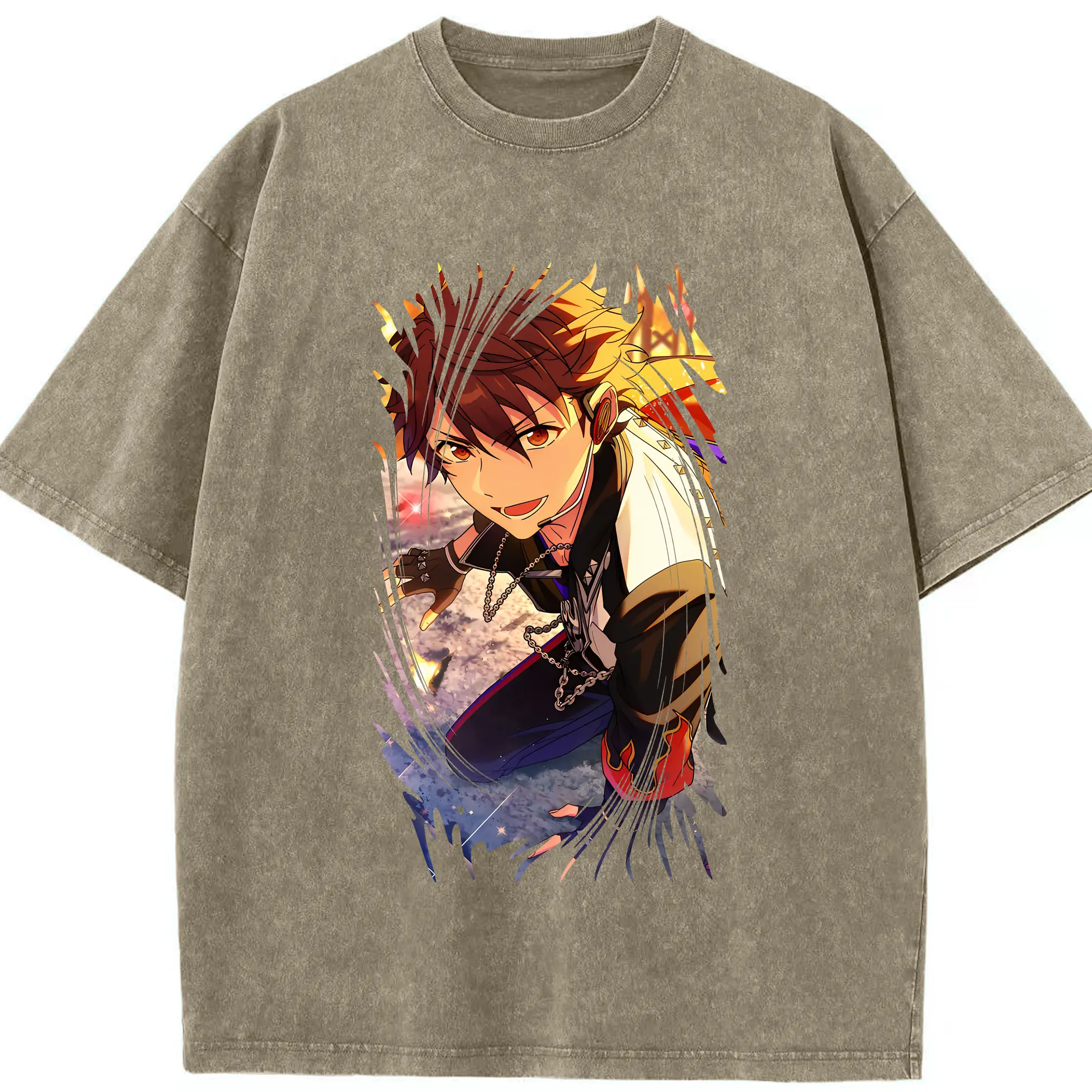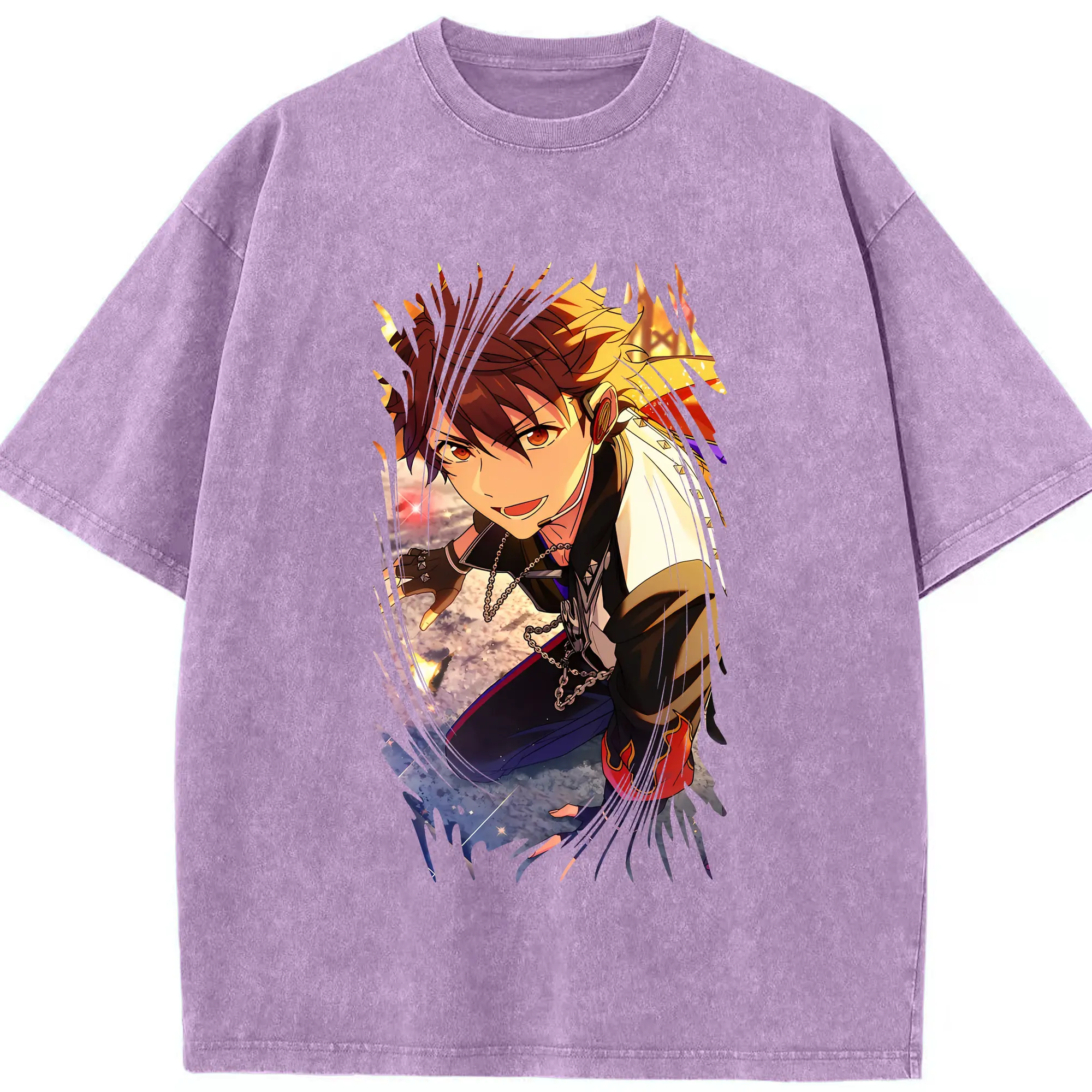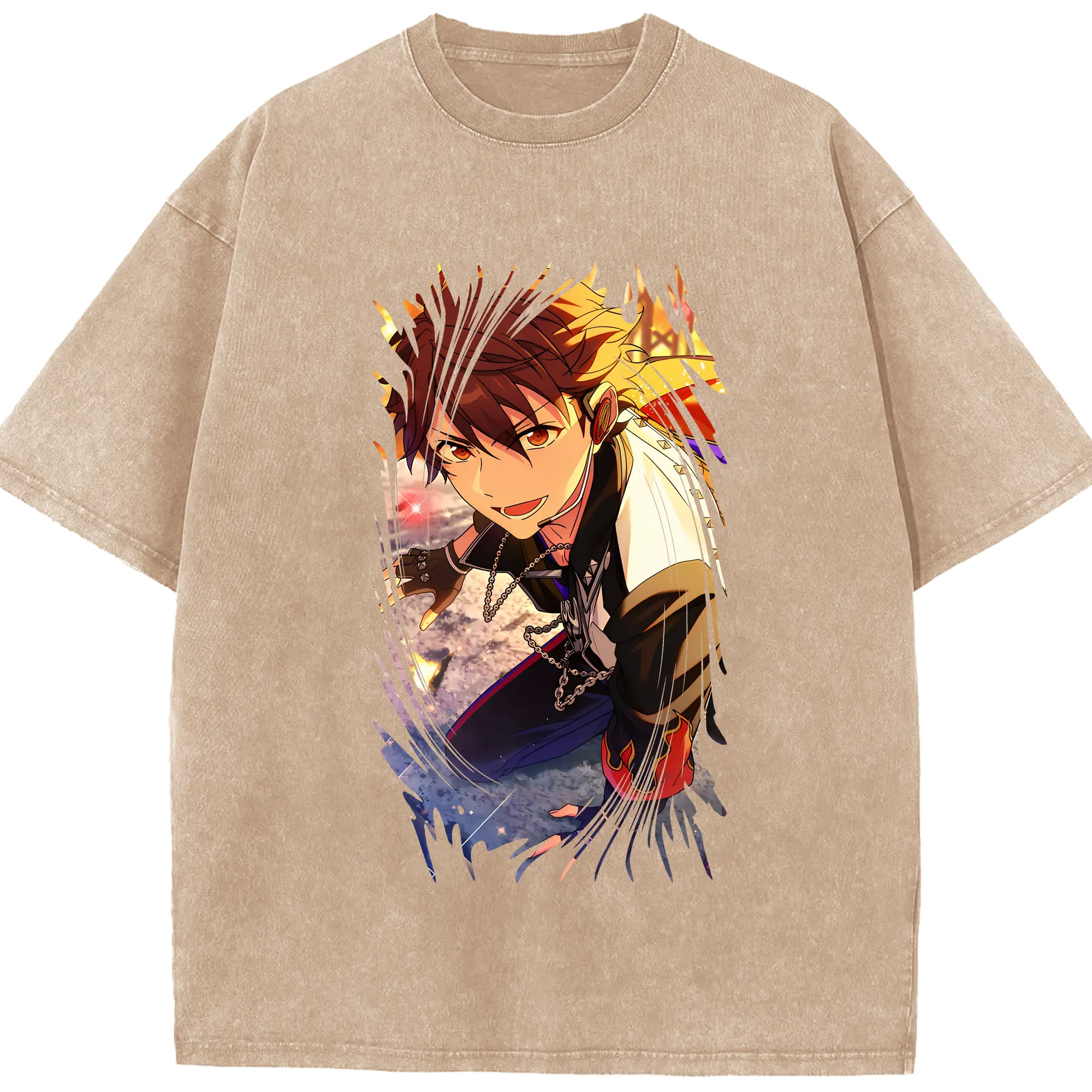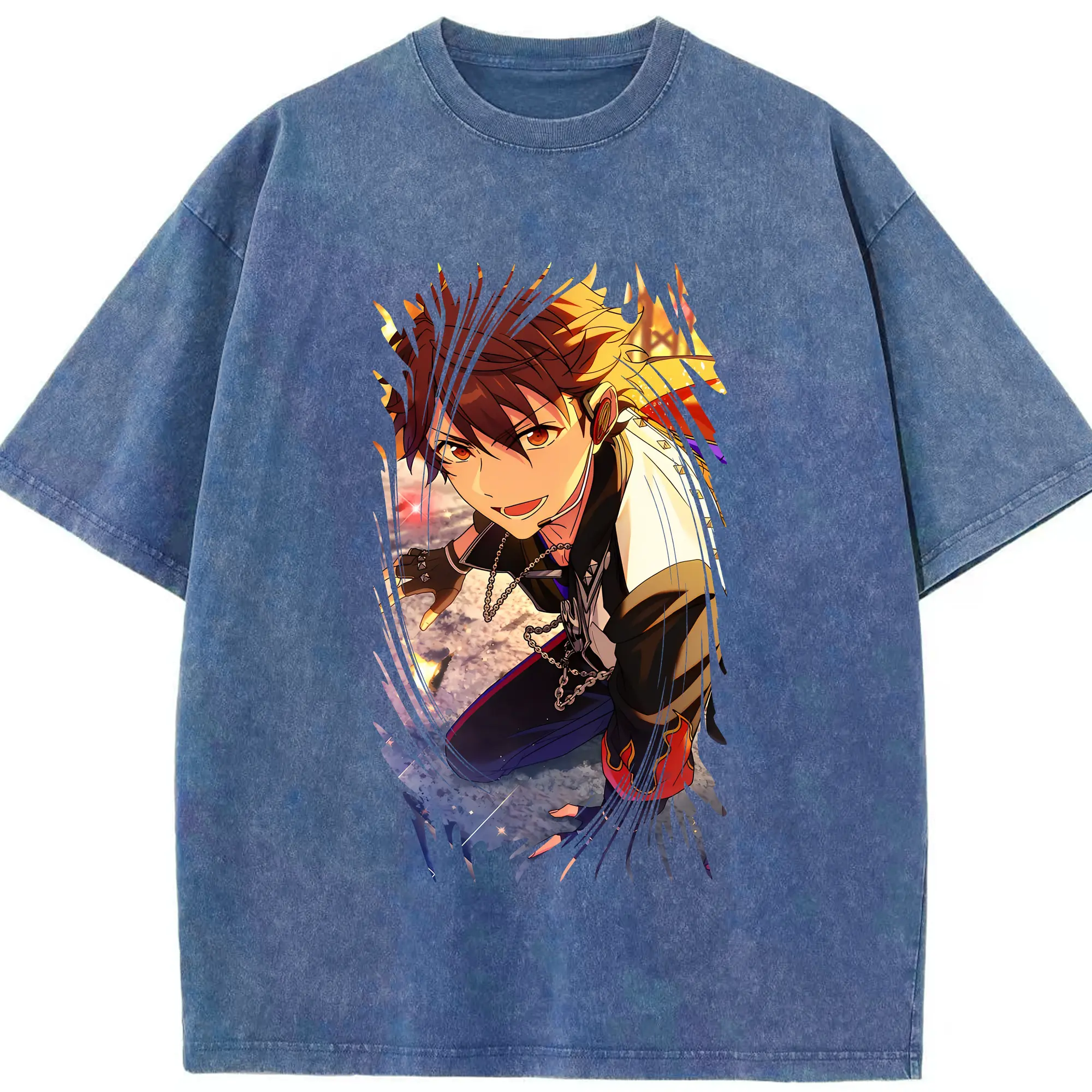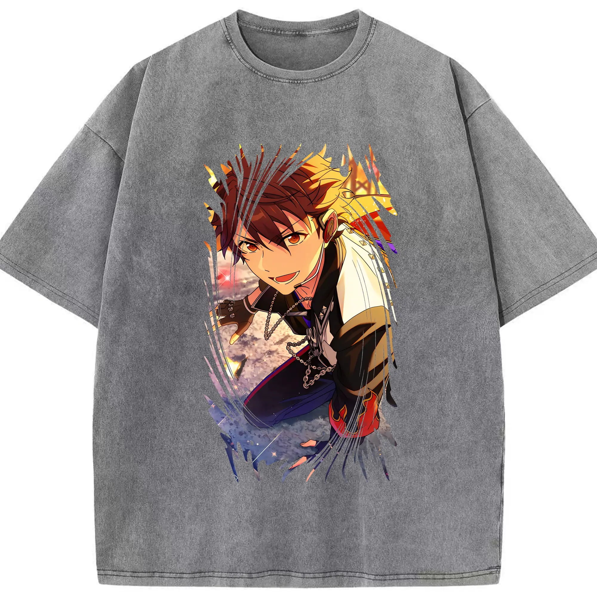 あんさん ぶる グッズ 流星隊 守沢千秋 - 綿100% ヴィンテージ風 半袖Tシャツ ・ 背面プリント ・ 柔らか肌触り ・ 通気性 快適 ・ スポーツ カジュアル 外出用