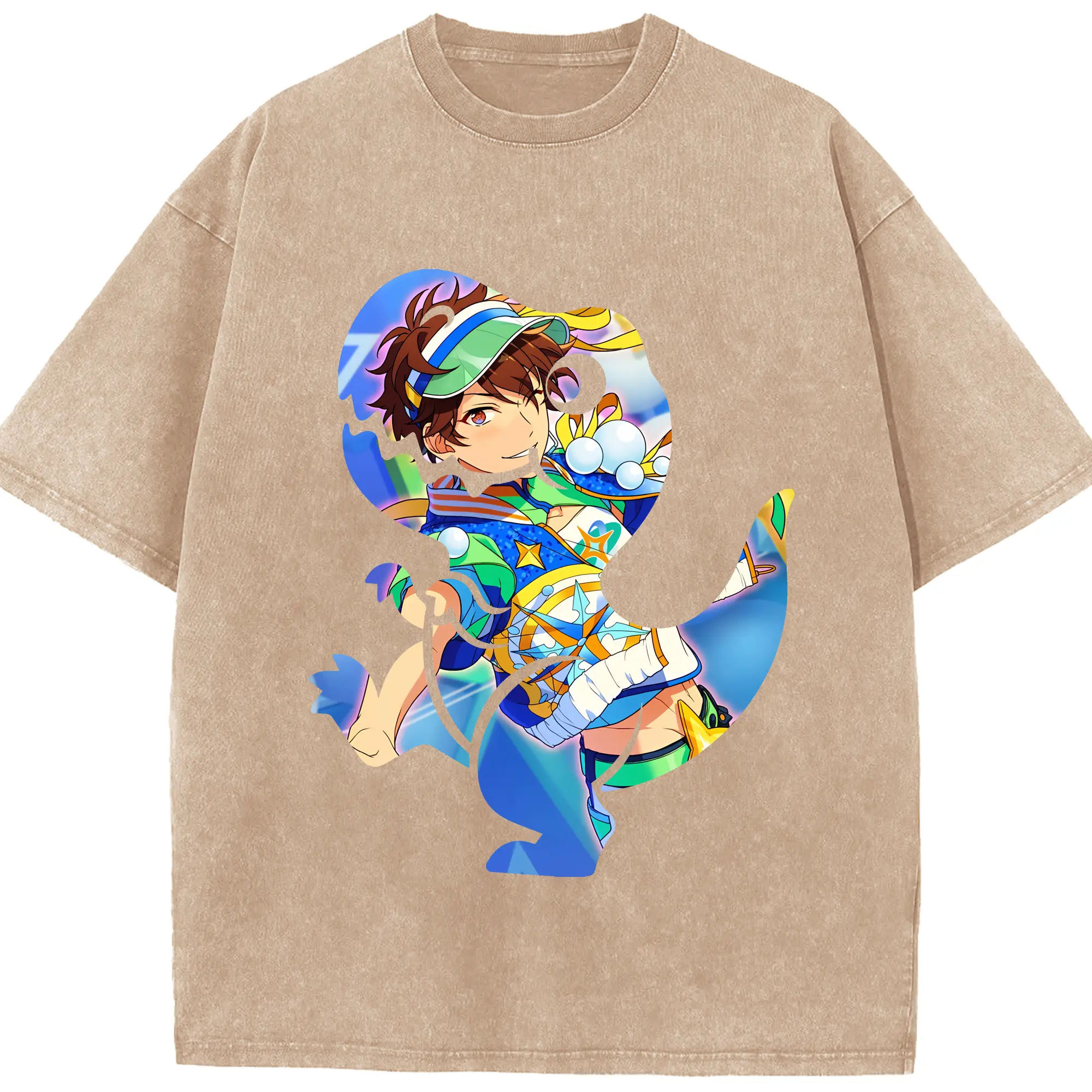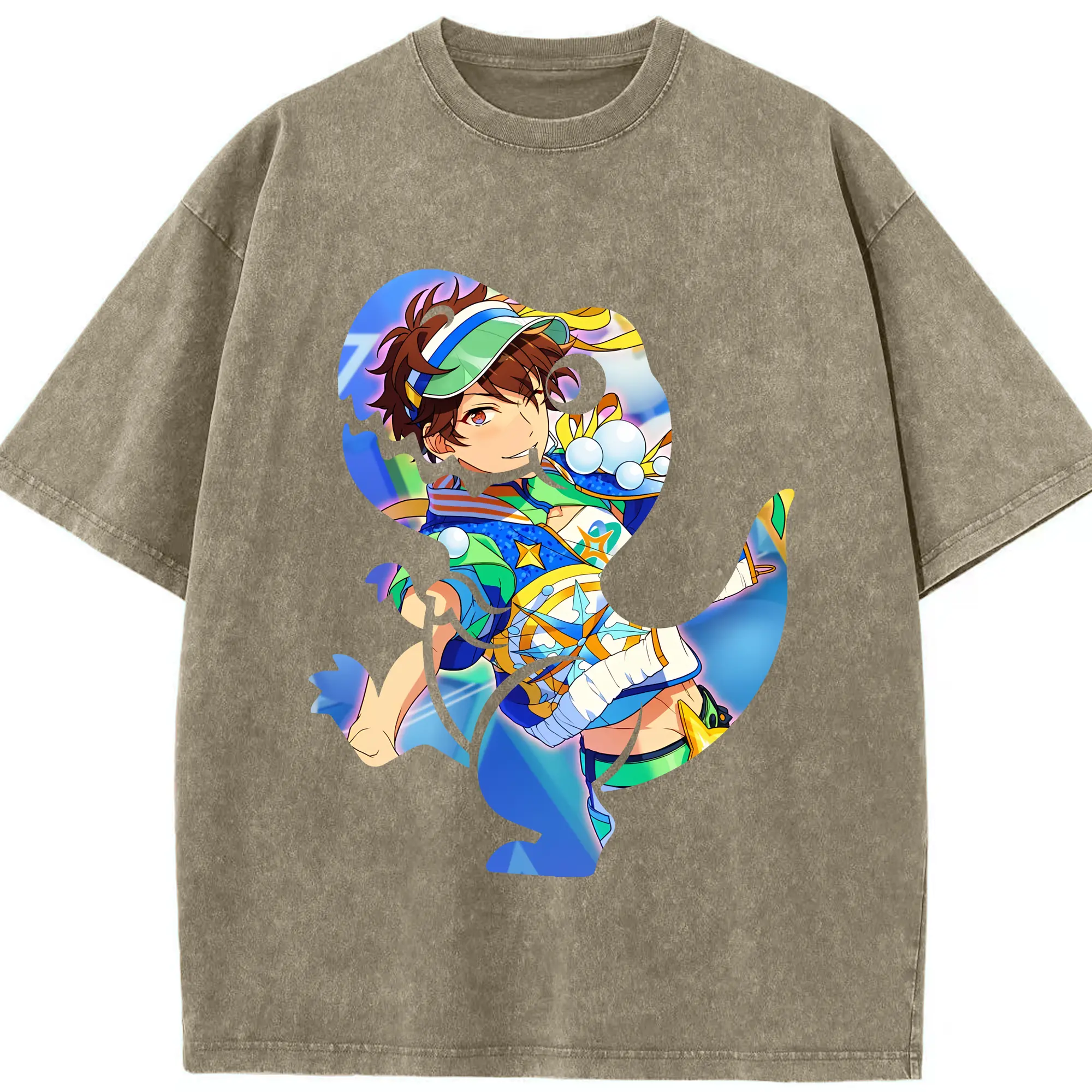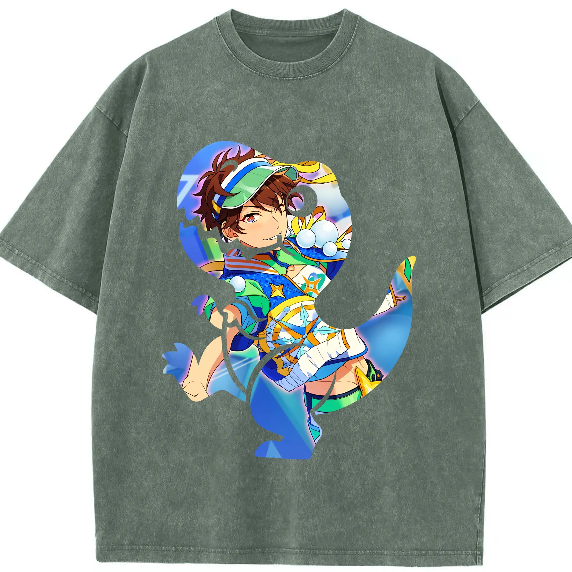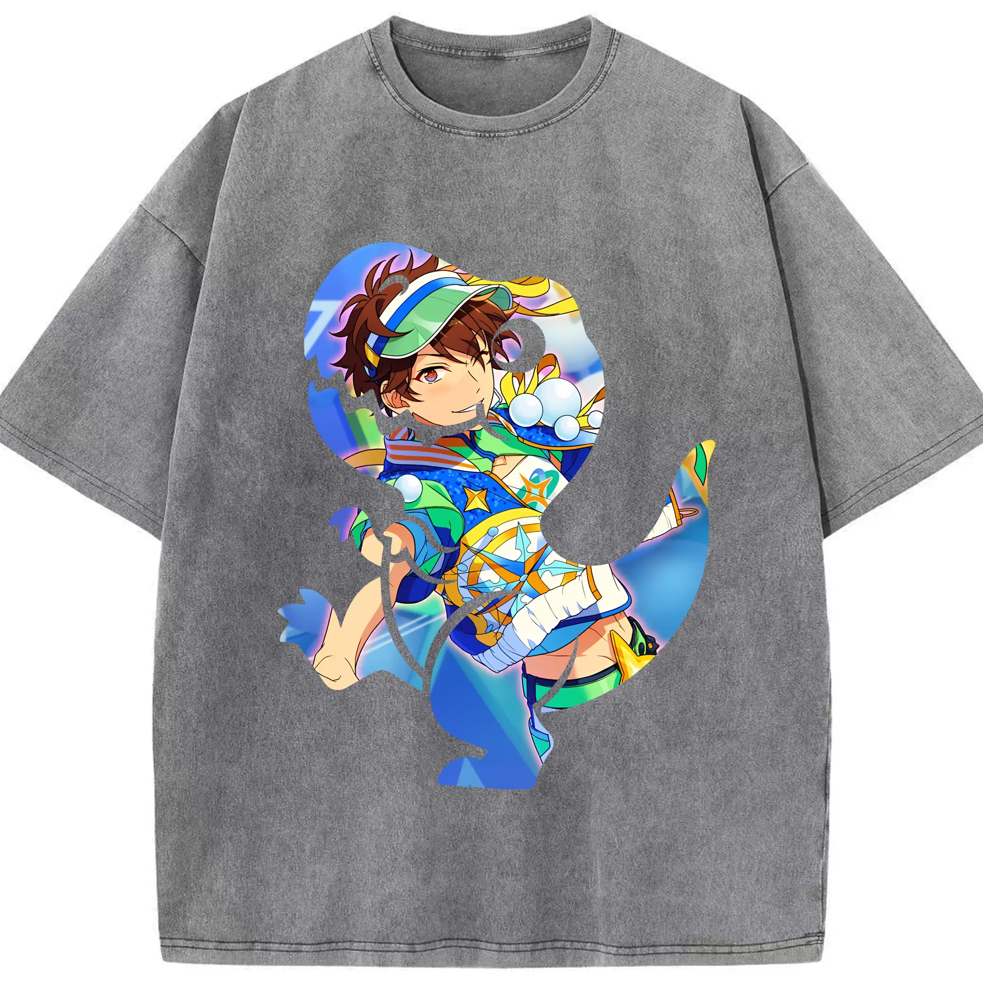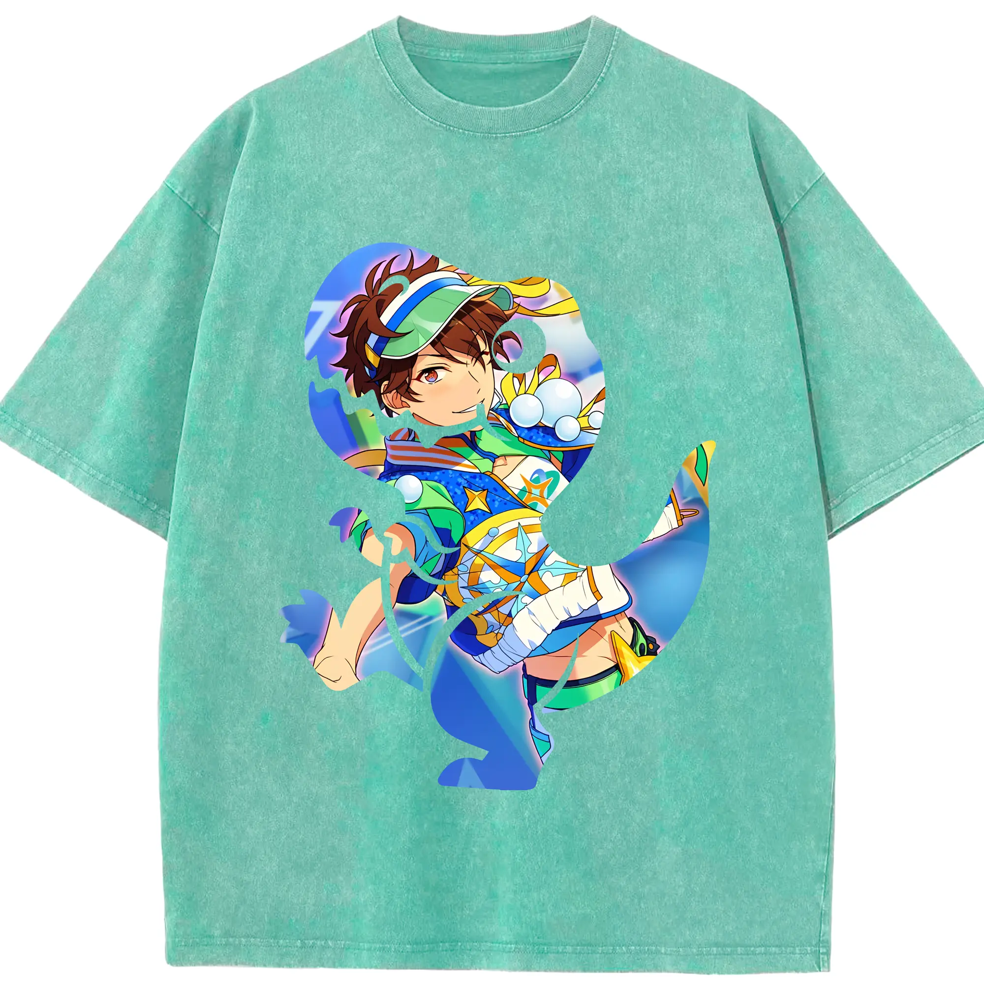あんさん ぶる グッズ 流星隊 守沢千秋 - 綿100% ヴィンテージ風 半袖Tシャツ ・ 背面プリント ・ 柔らか肌触り ・ 通気性 快適 ・ スポーツ カジュアル 外出用