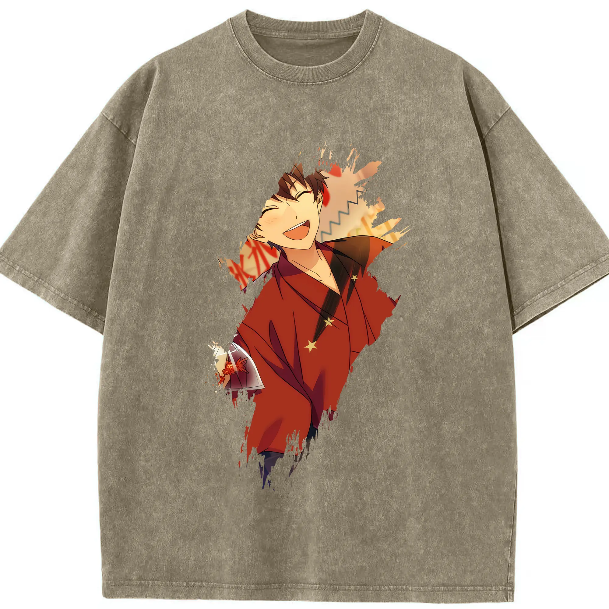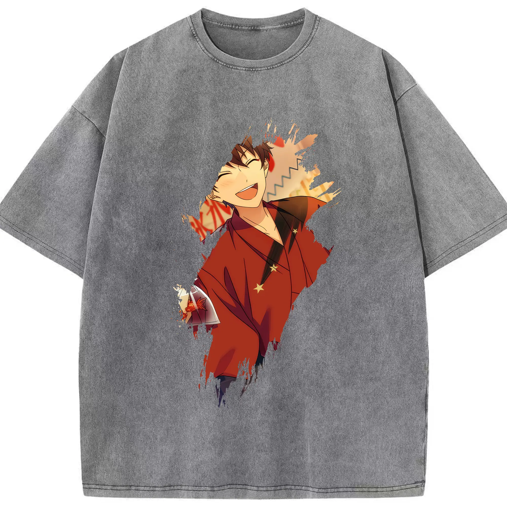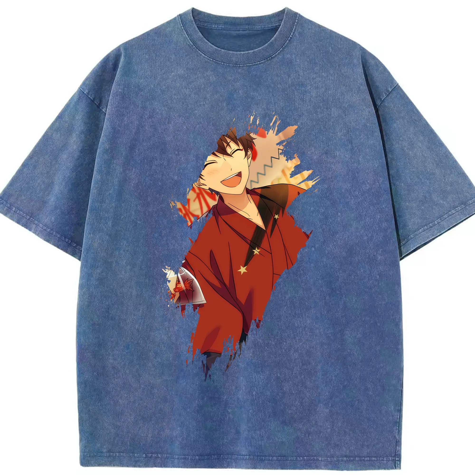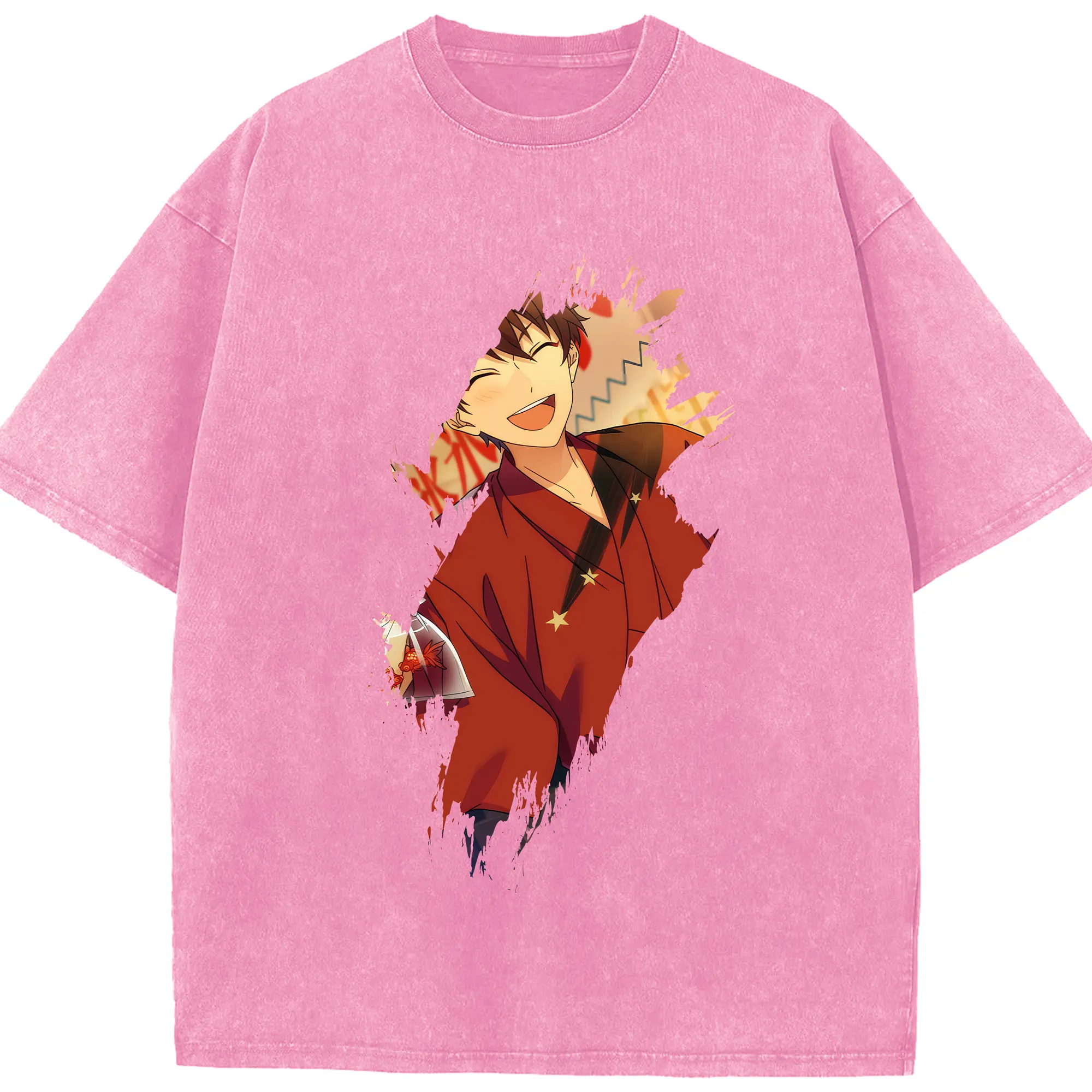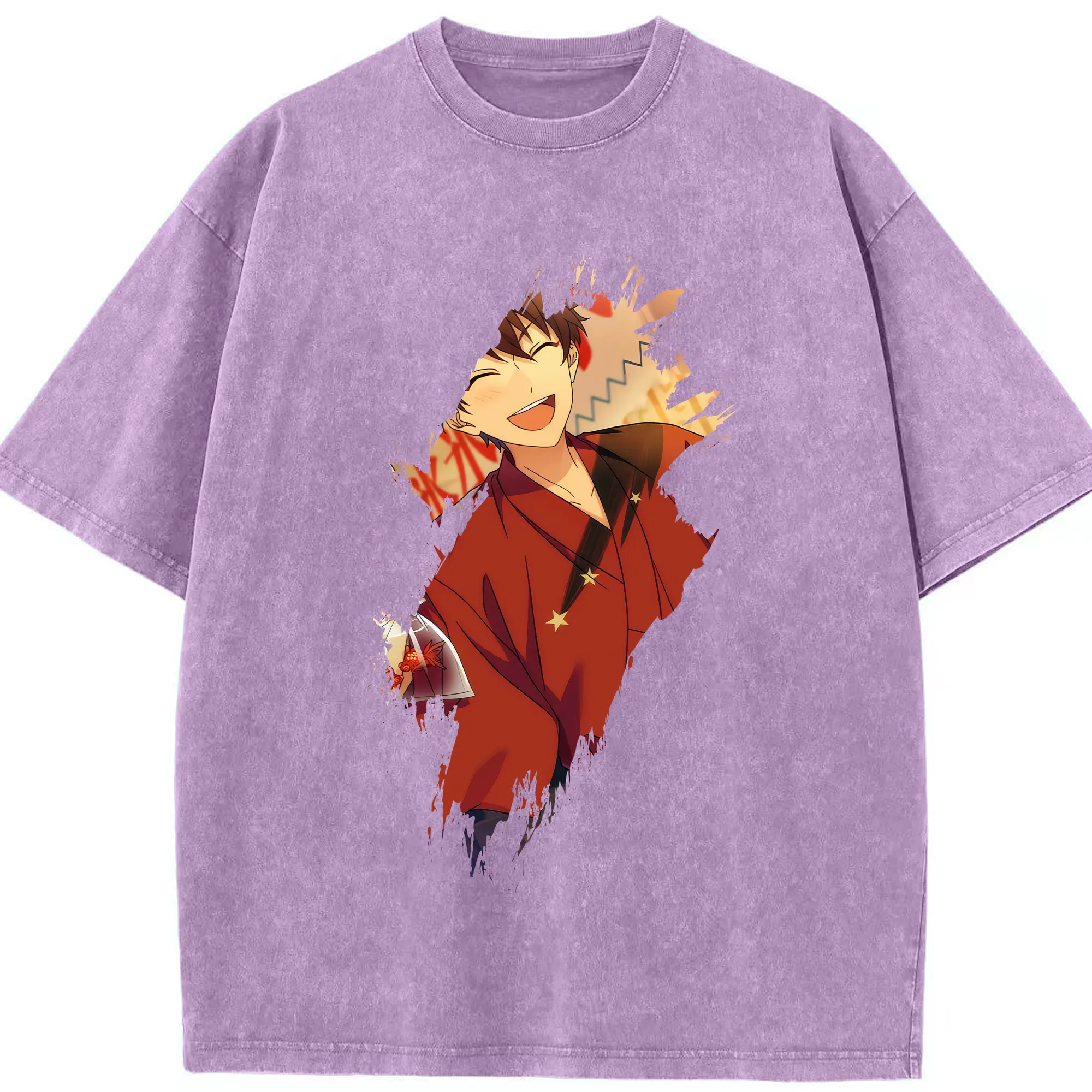 あんさん ぶる グッズ 流星隊 守沢千秋 - 綿100% ヴィンテージ風 半袖Tシャツ ・ 背面プリント ・ 柔らか肌触り ・ 通気性 快適 ・ スポーツ カジュアル 外出用