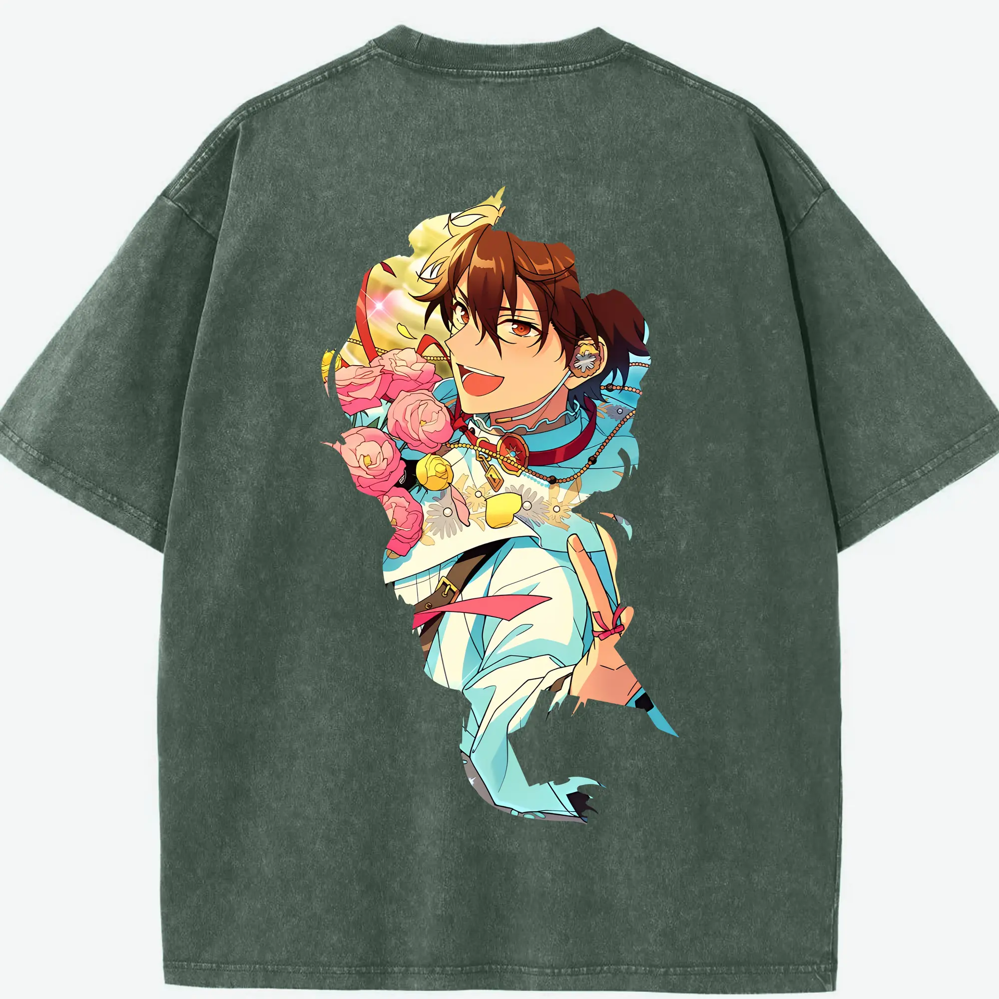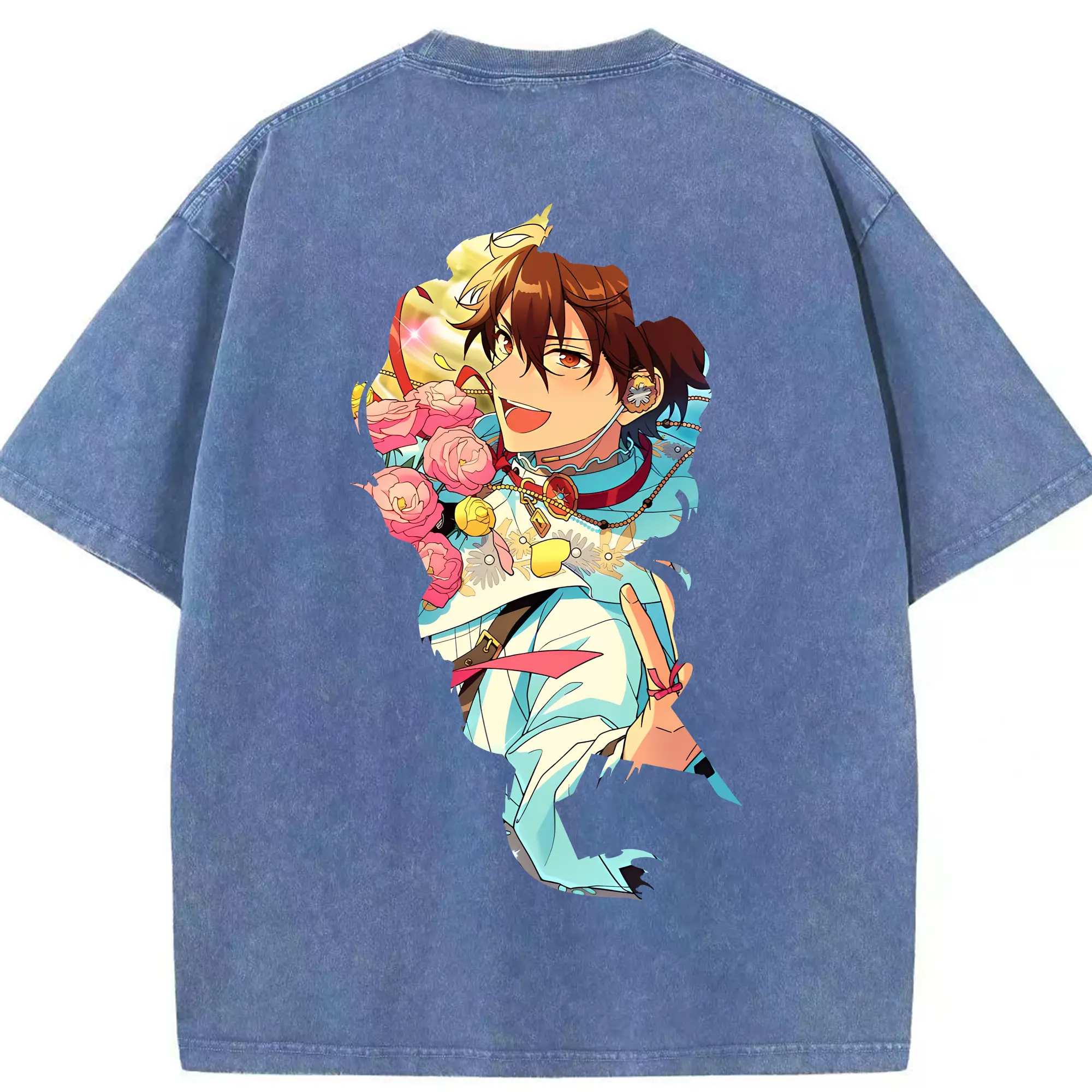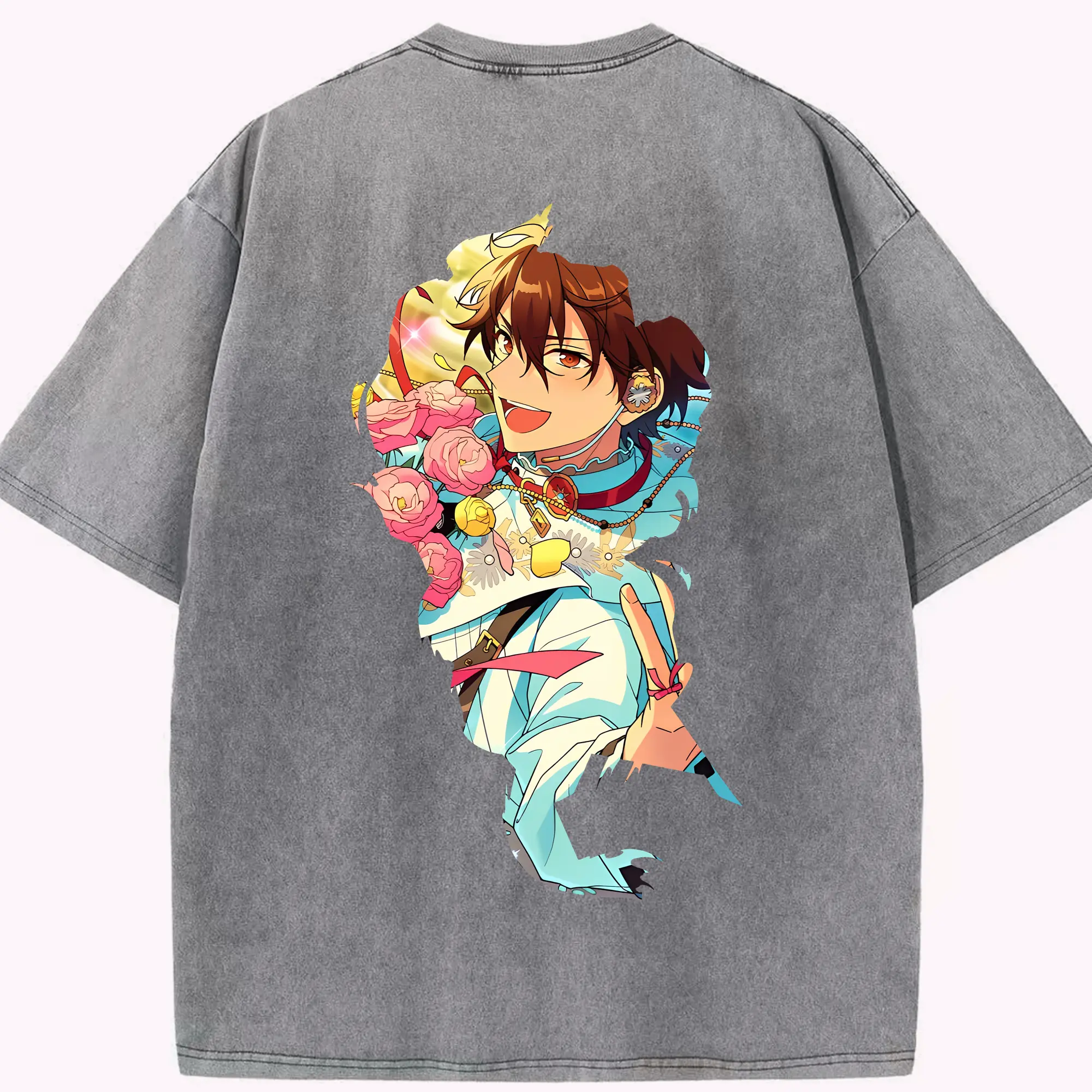 あんさん ぶる グッズ 流星隊 守沢千秋 - 綿100% ヴィンテージ風 半袖Tシャツ ・ フロントプリント ・ 柔らか肌触り ・ 通気性 快適 ・ スポーツ カジュアル 外出用
