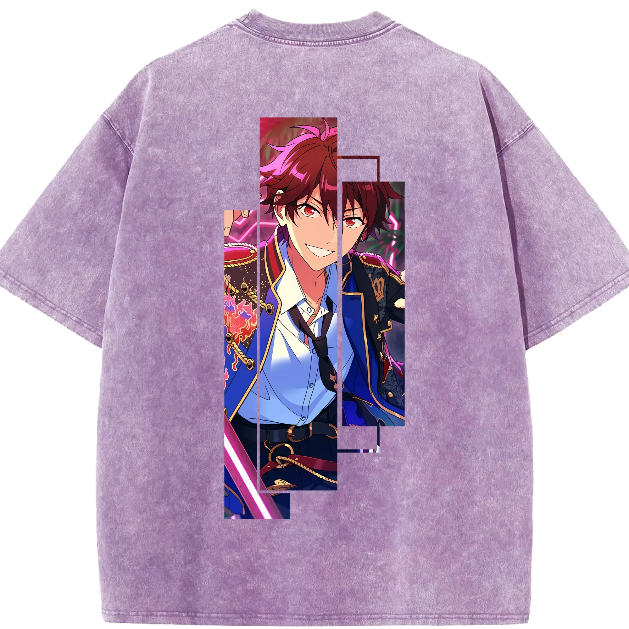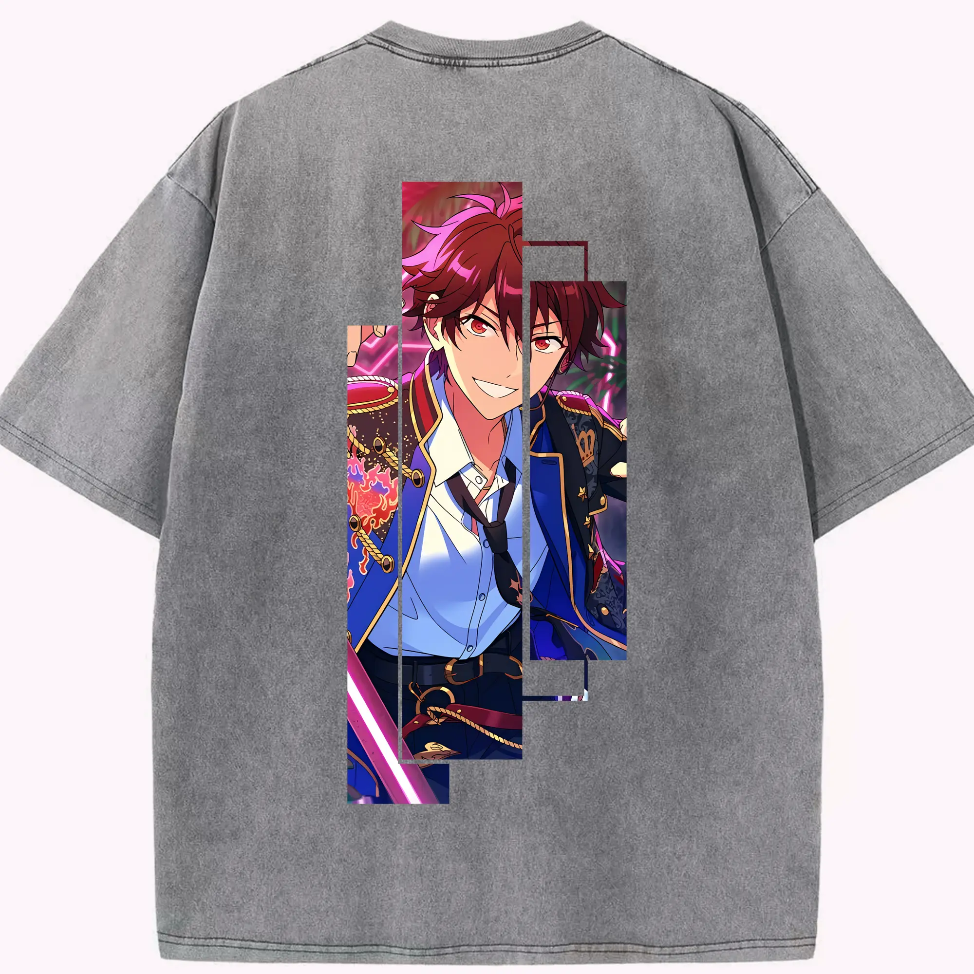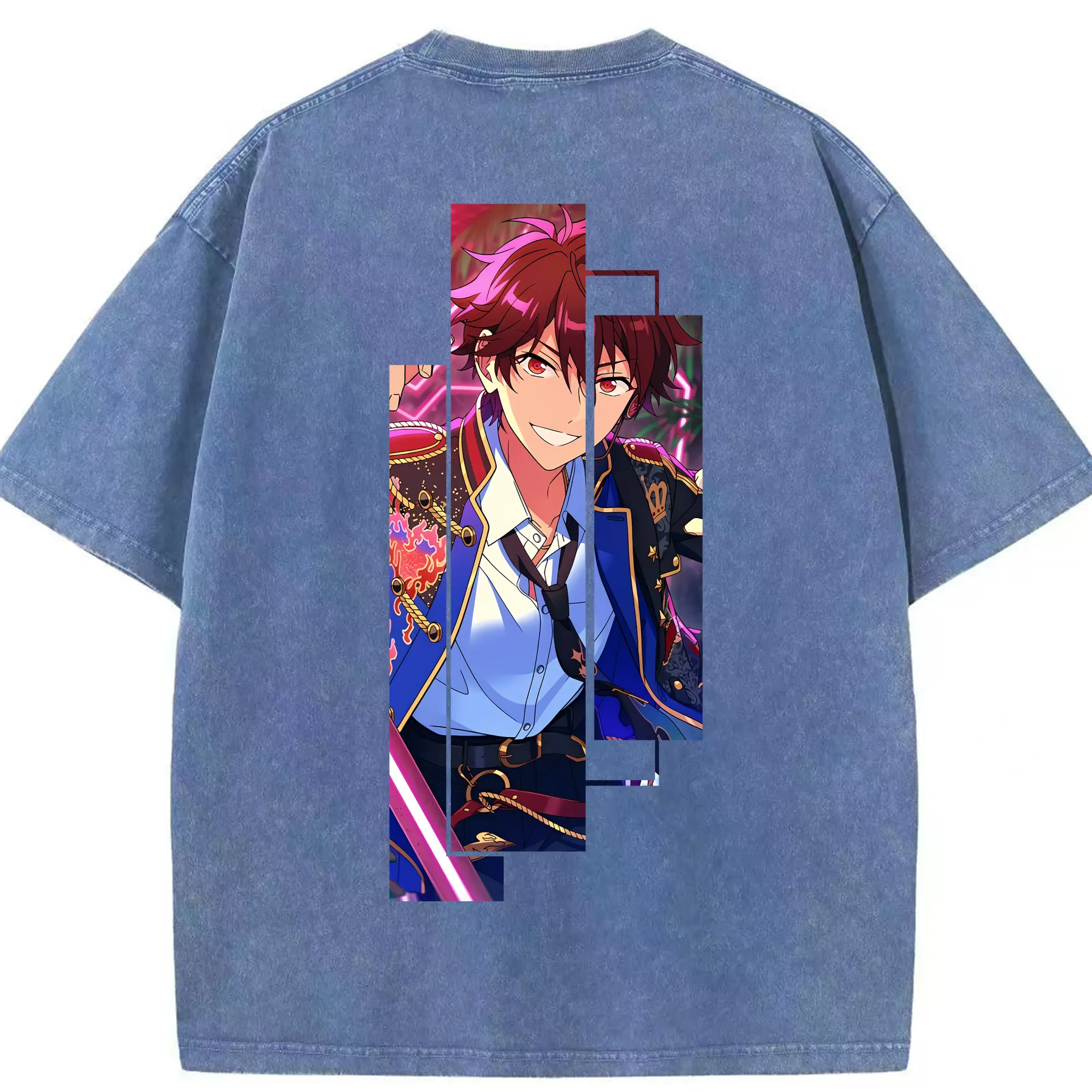 あんさん ぶる グッズ 流星隊 守沢千秋 - 綿100% ヴィンテージ風 半袖Tシャツ ・ フロントプリント ・ 柔らか肌触り ・ 通気性 快適 ・ スポーツ カジュアル 外出用