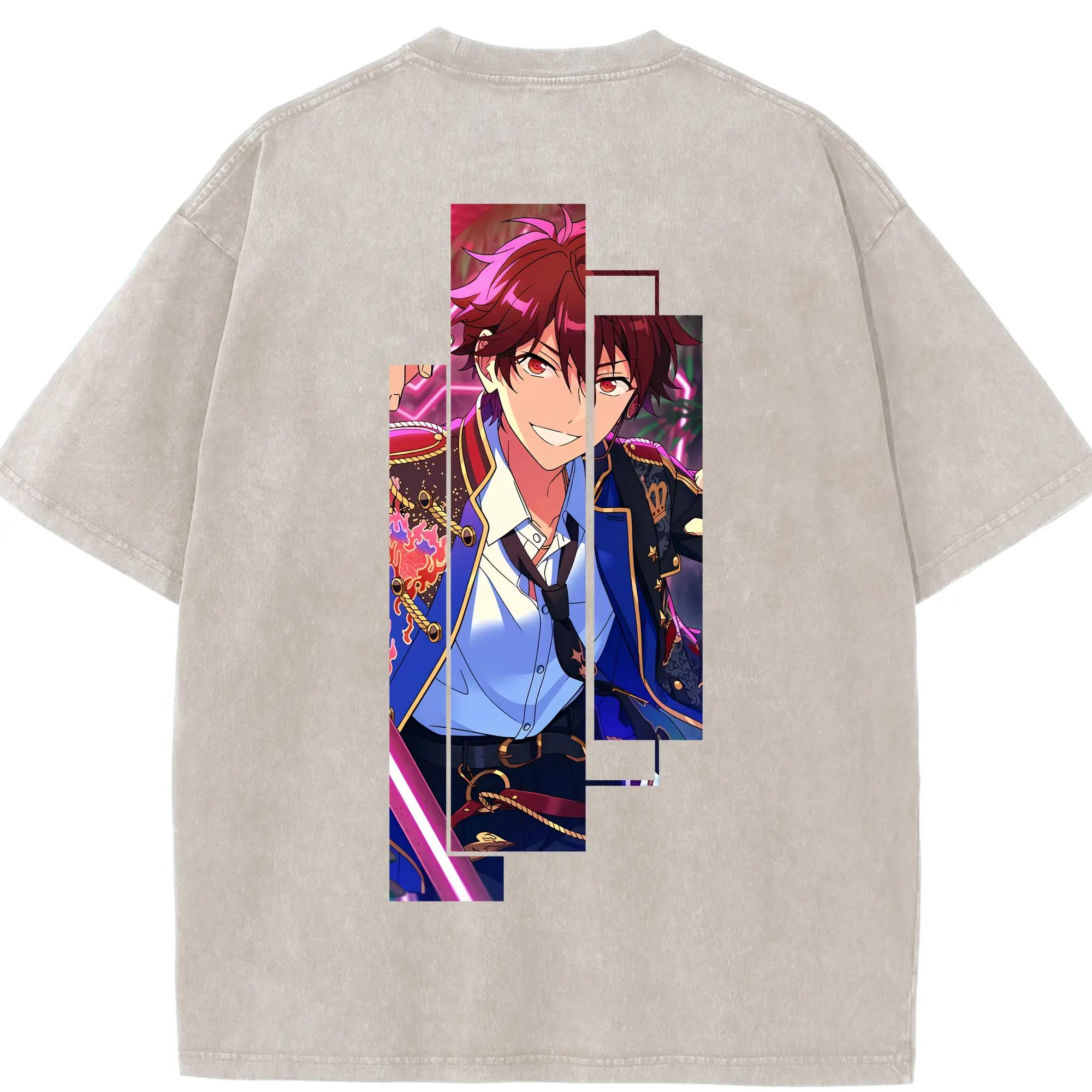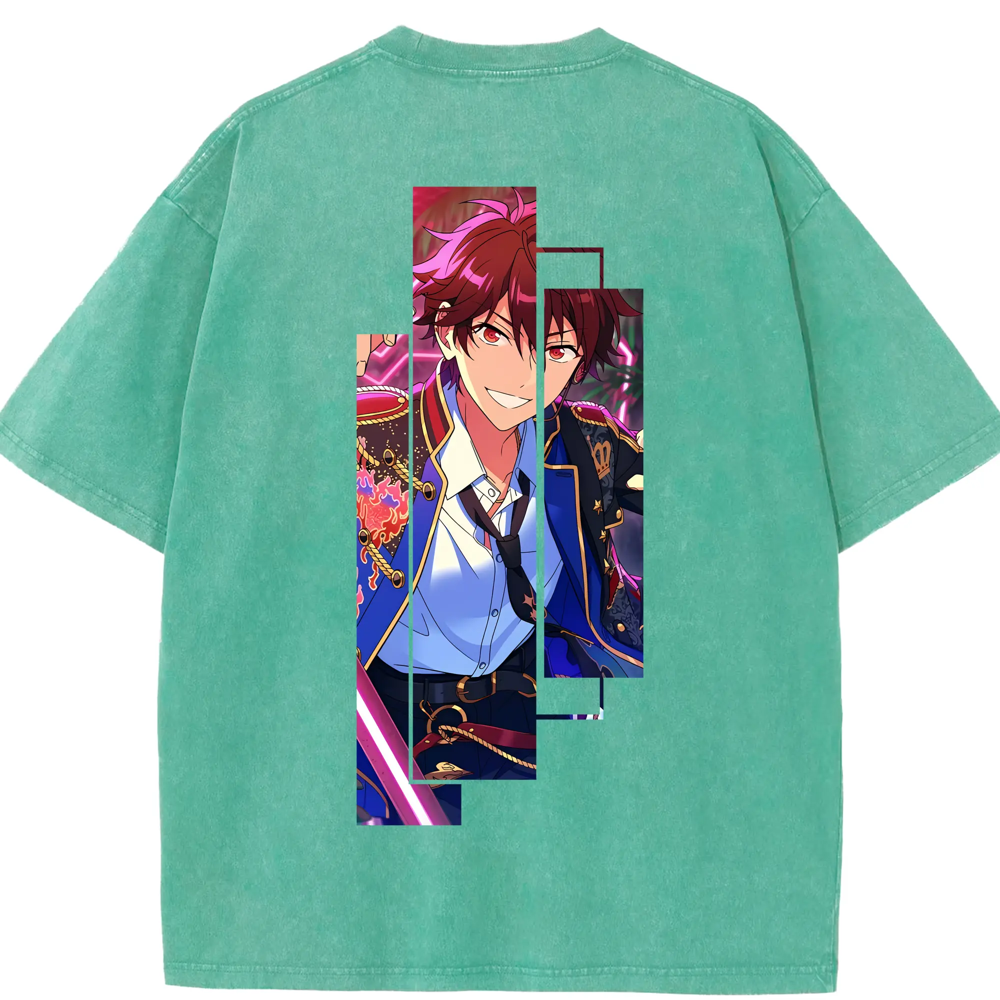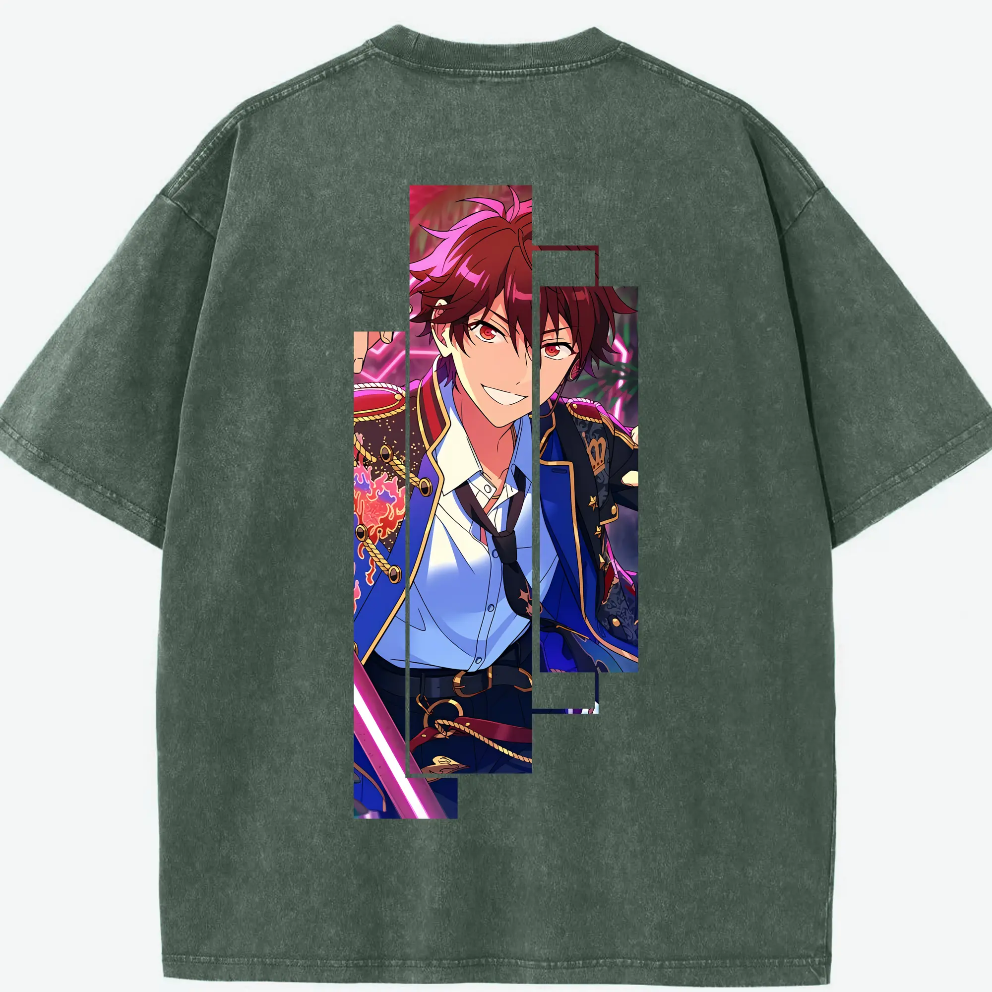 あんさん ぶる グッズ 流星隊 守沢千秋 - 綿100% ヴィンテージ風 半袖Tシャツ ・ フロントプリント ・ 柔らか肌触り ・ 通気性 快適 ・ スポーツ カジュアル 外出用