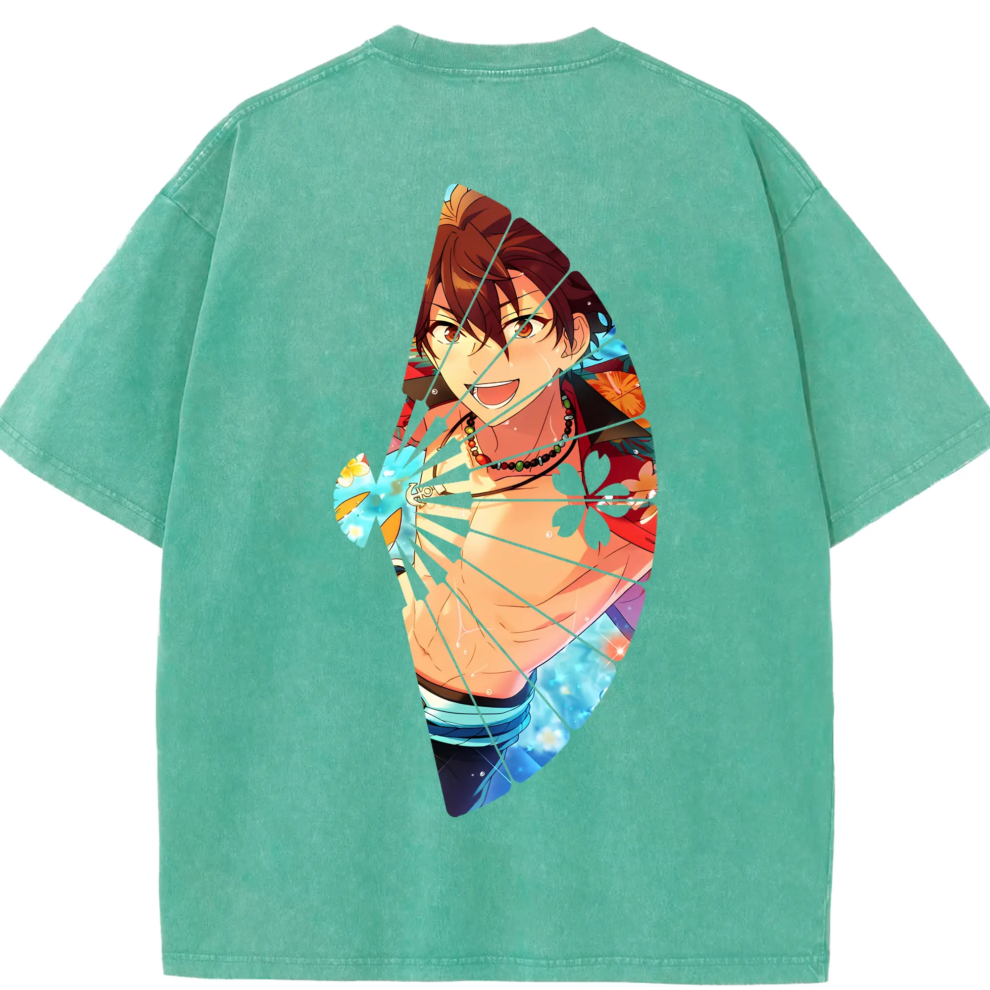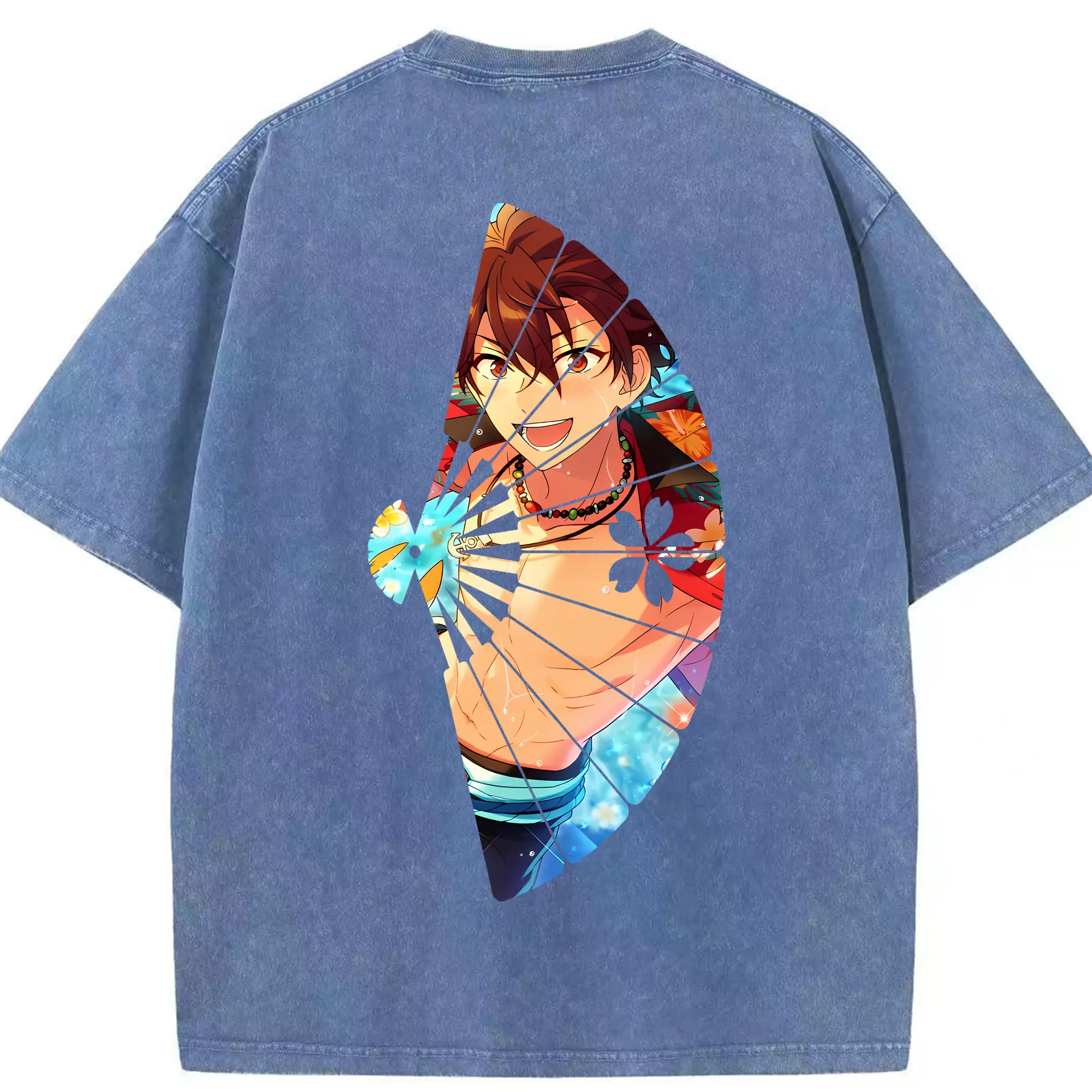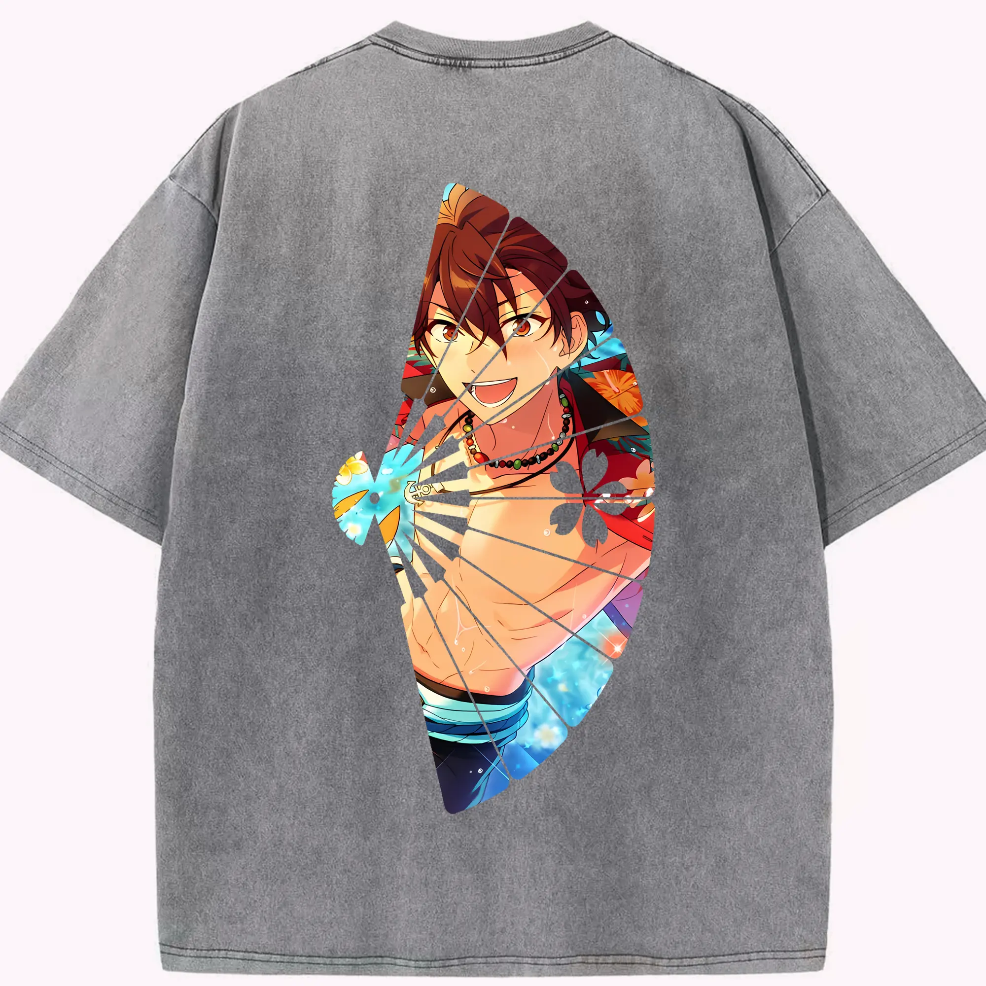あんさん ぶる グッズ 流星隊 守沢千秋 - 綿100% ヴィンテージ風 半袖Tシャツ ・ フロントプリント ・ 柔らか肌触り ・ 通気性 快適 ・ スポーツ カジュアル 外出用