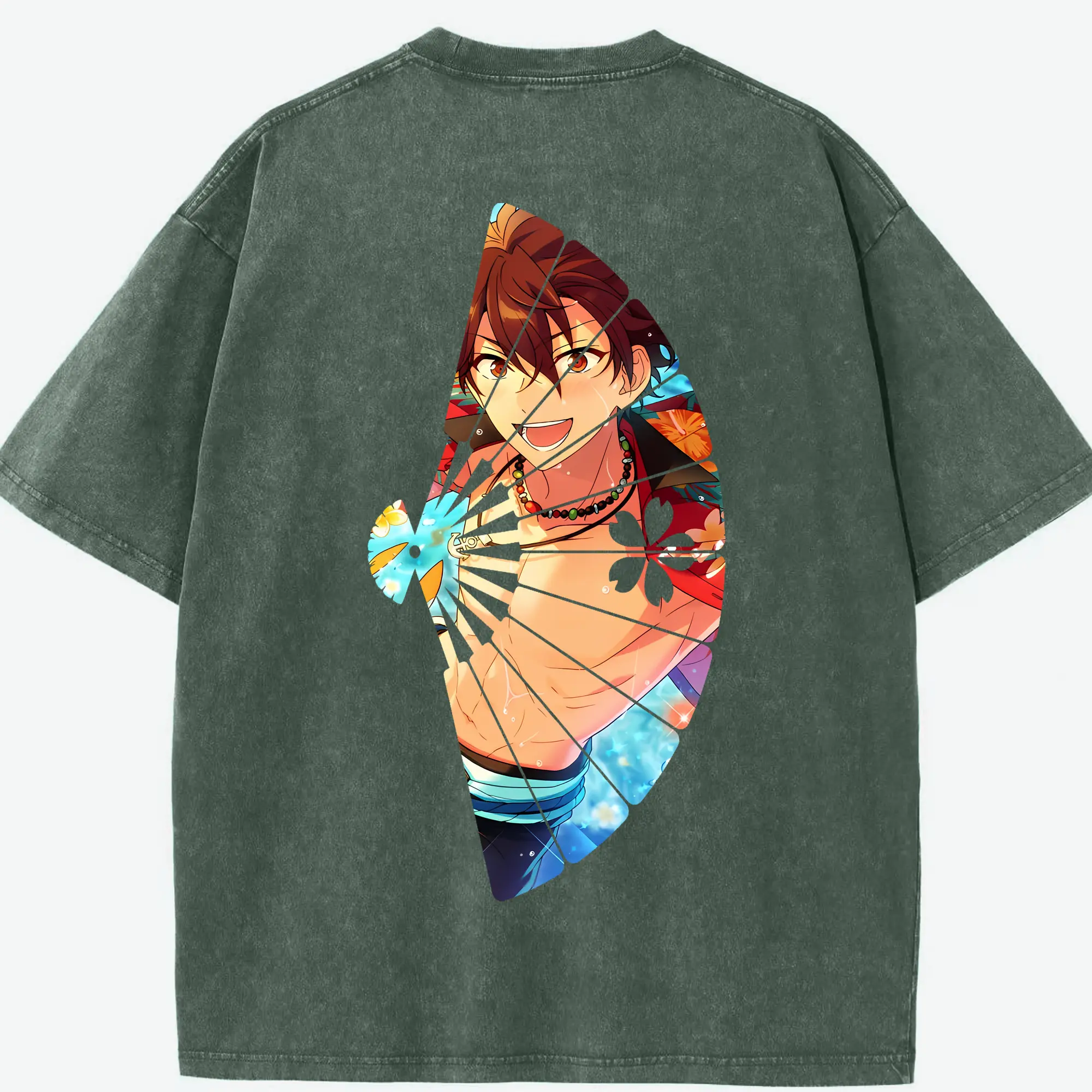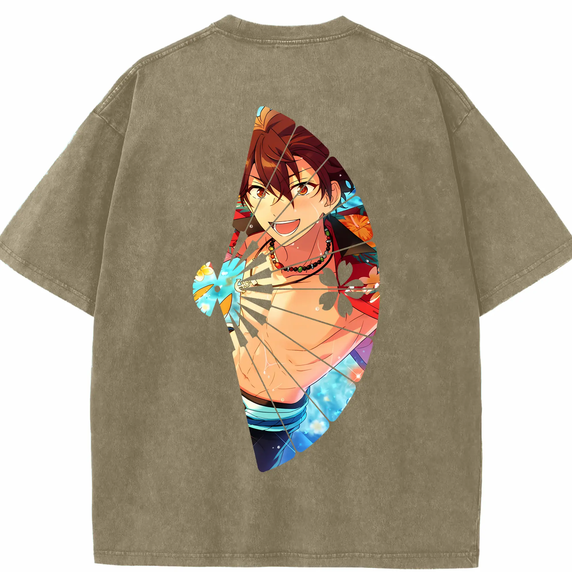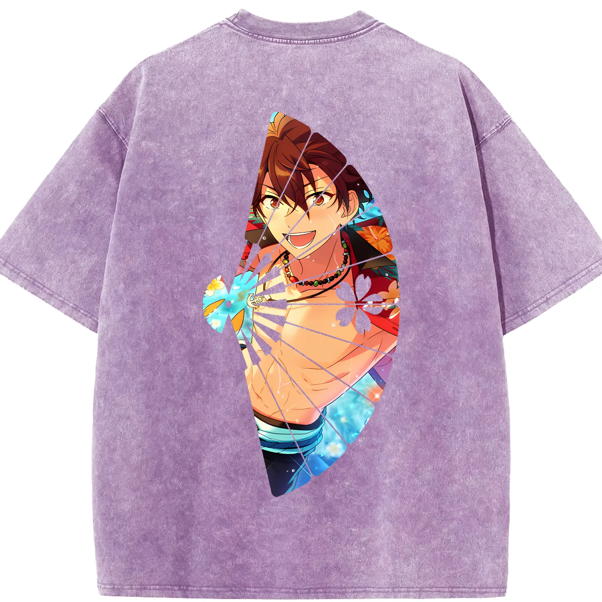 あんさん ぶる グッズ 流星隊 守沢千秋 - 綿100% ヴィンテージ風 半袖Tシャツ ・ フロントプリント ・ 柔らか肌触り ・ 通気性 快適 ・ スポーツ カジュアル 外出用