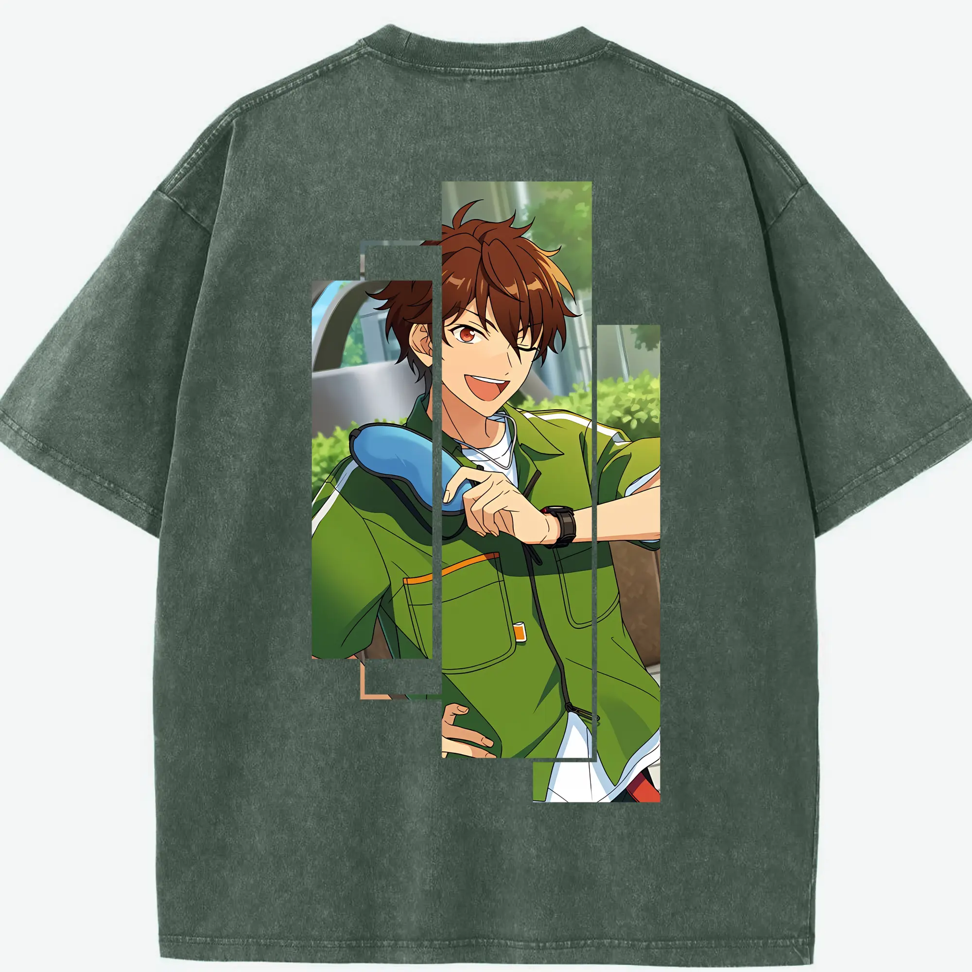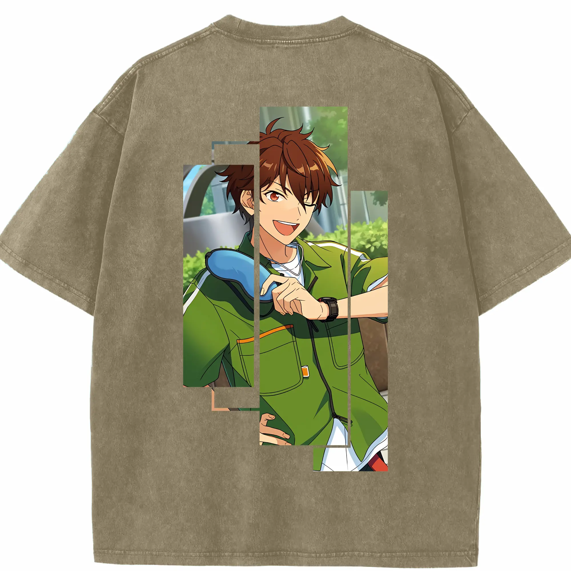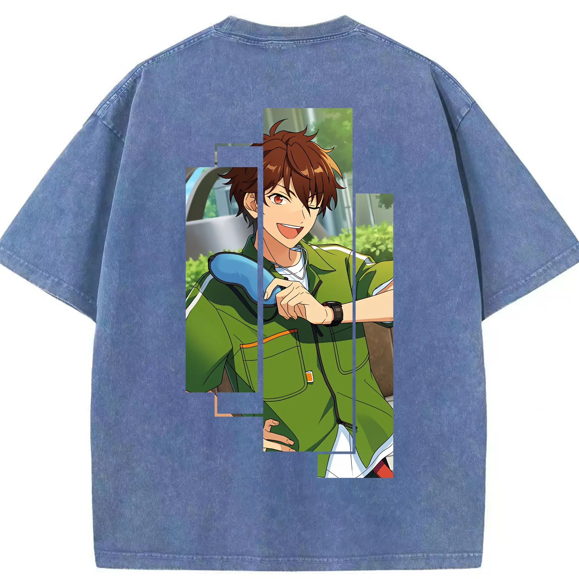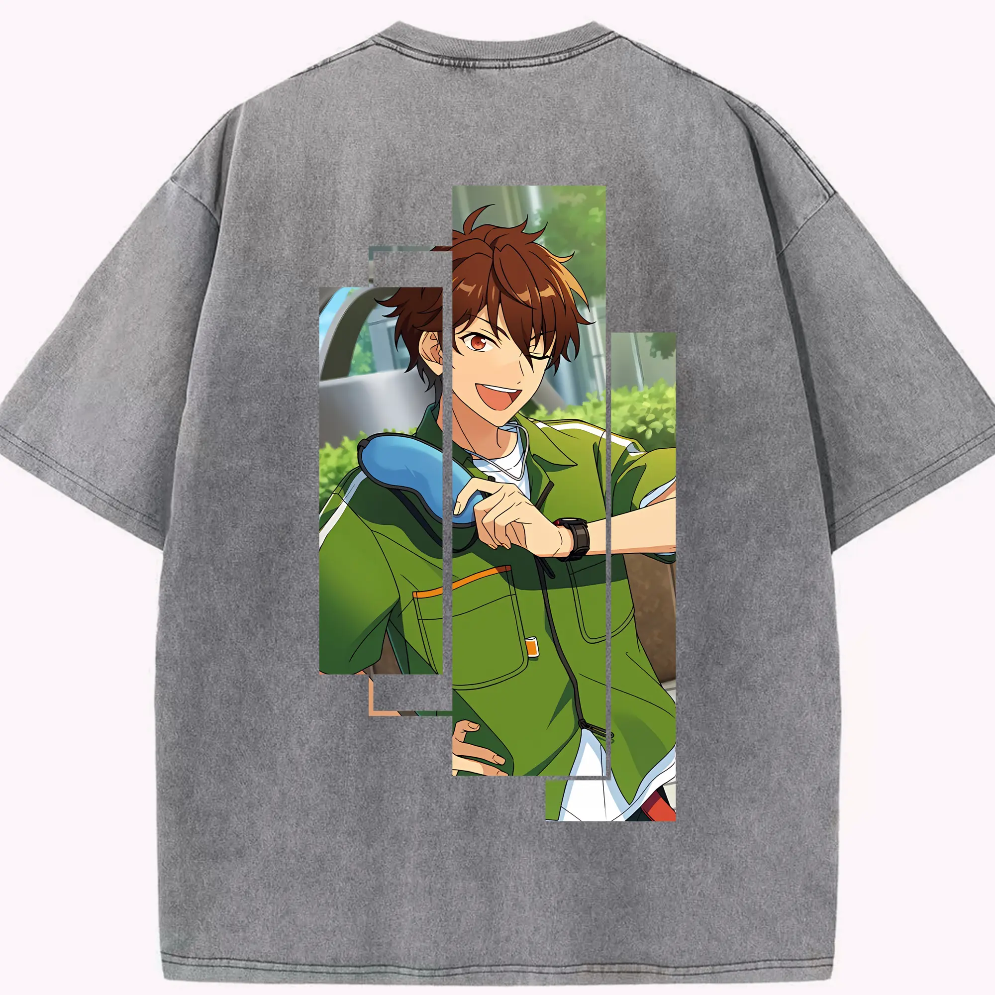 あんさん ぶる グッズ 流星隊 守沢千秋 - 綿100% ヴィンテージ風 半袖Tシャツ ・ フロントプリント ・ 柔らか肌触り ・ 通気性 快適 ・ スポーツ カジュアル 外出用