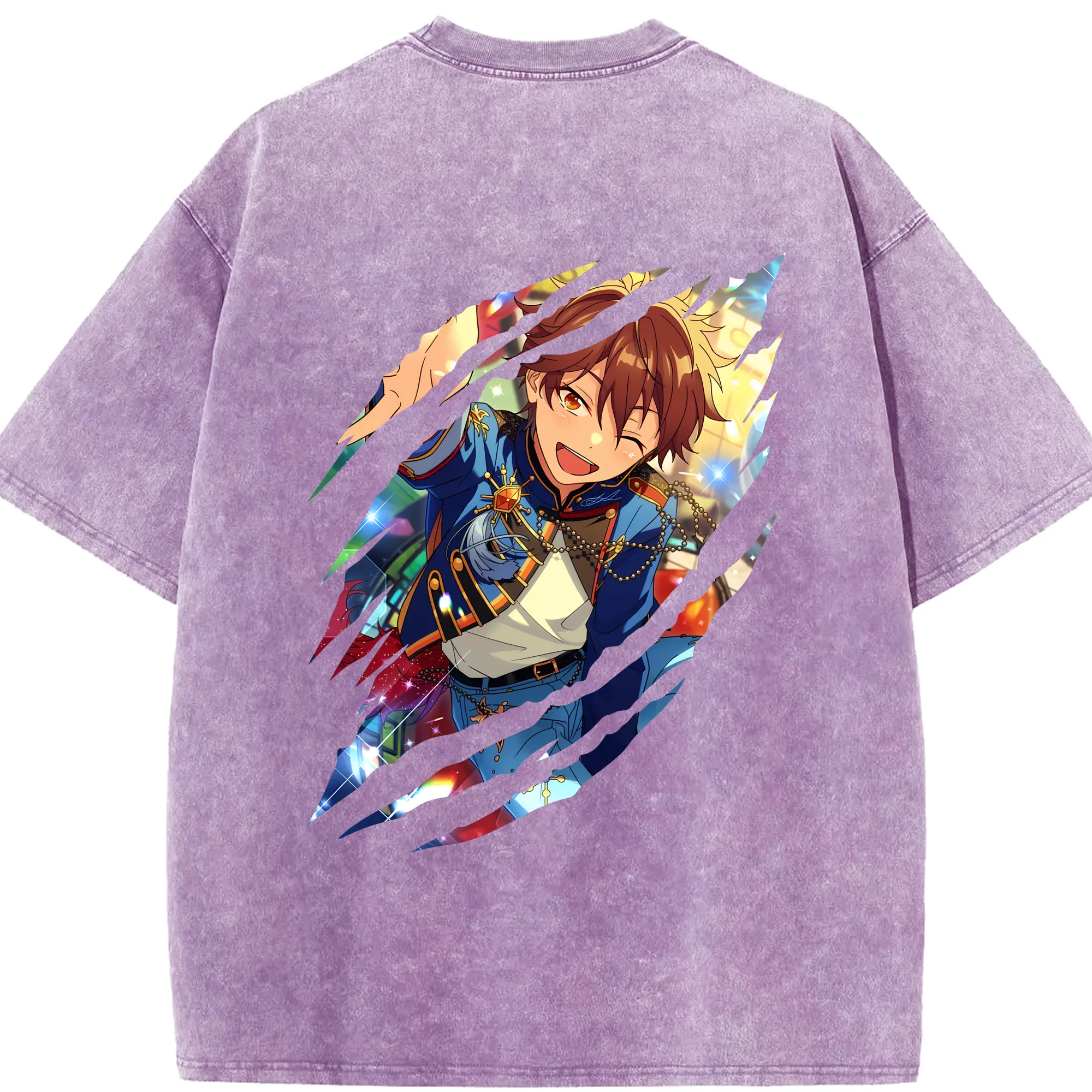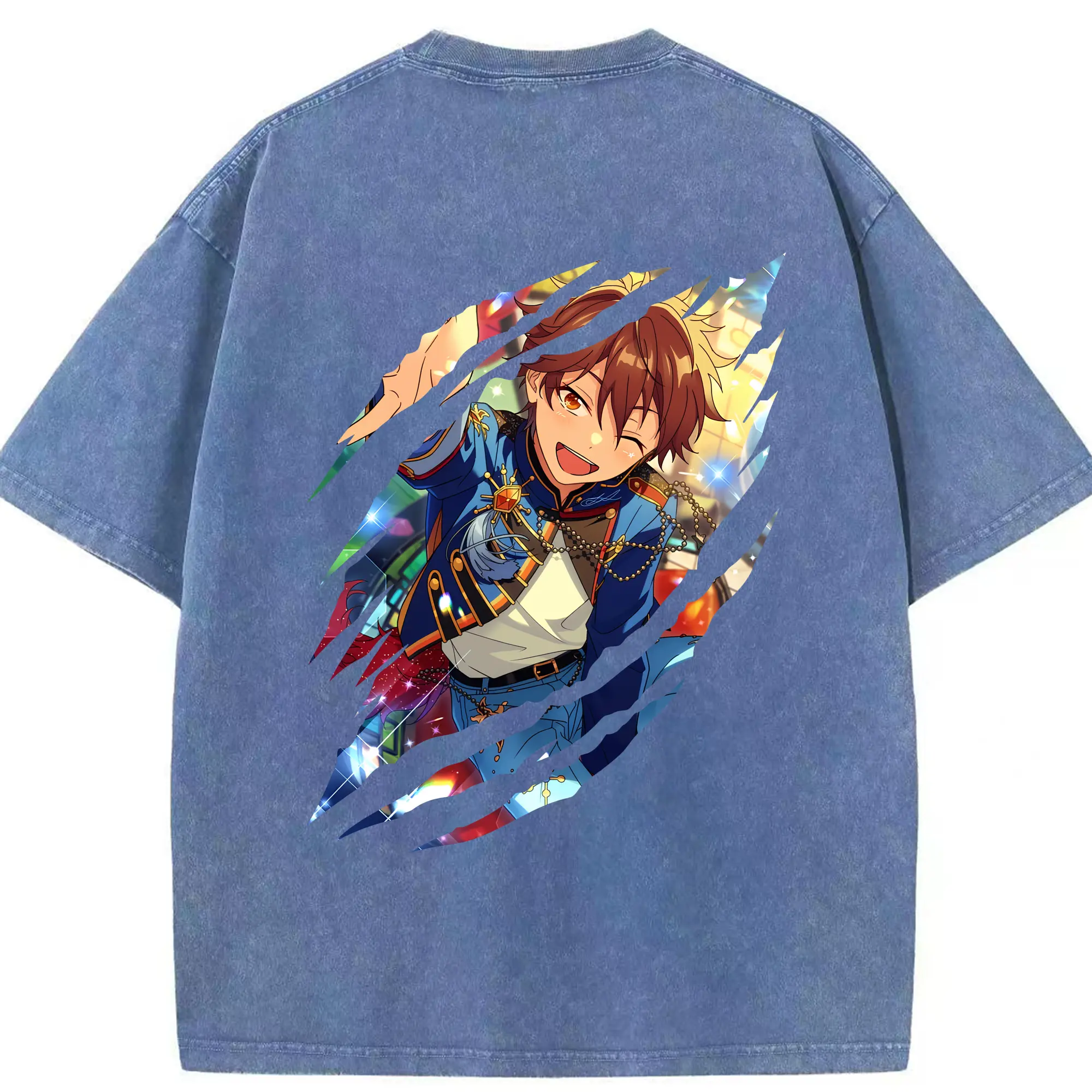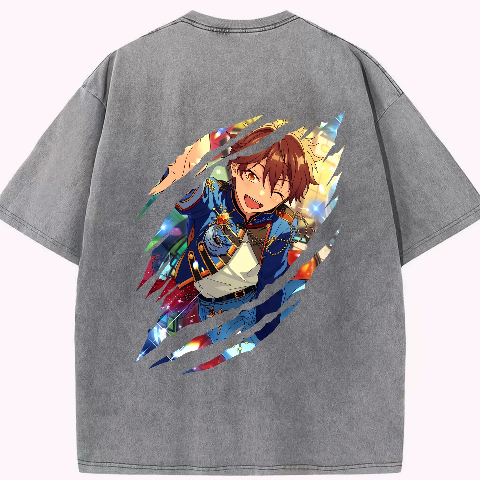 あんさん ぶる グッズ 流星隊 守沢千秋 - 綿100% ヴィンテージ風 半袖Tシャツ ・ フロントプリント ・ 柔らか肌触り ・ 通気性 快適 ・ スポーツ カジュアル 外出用