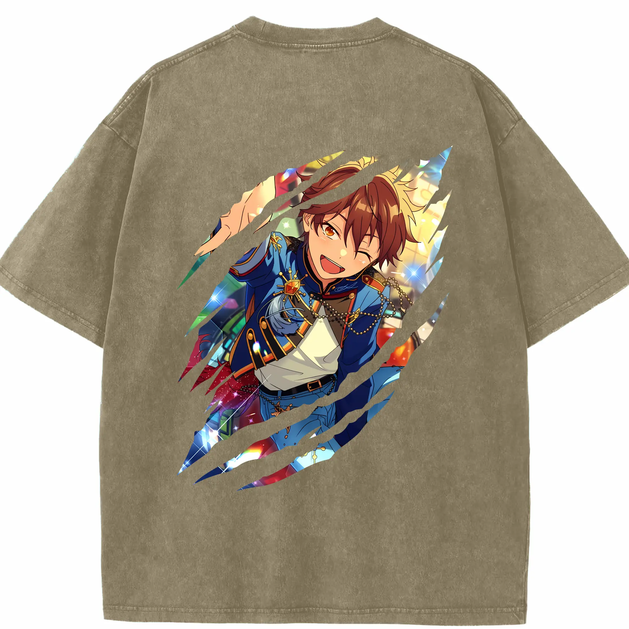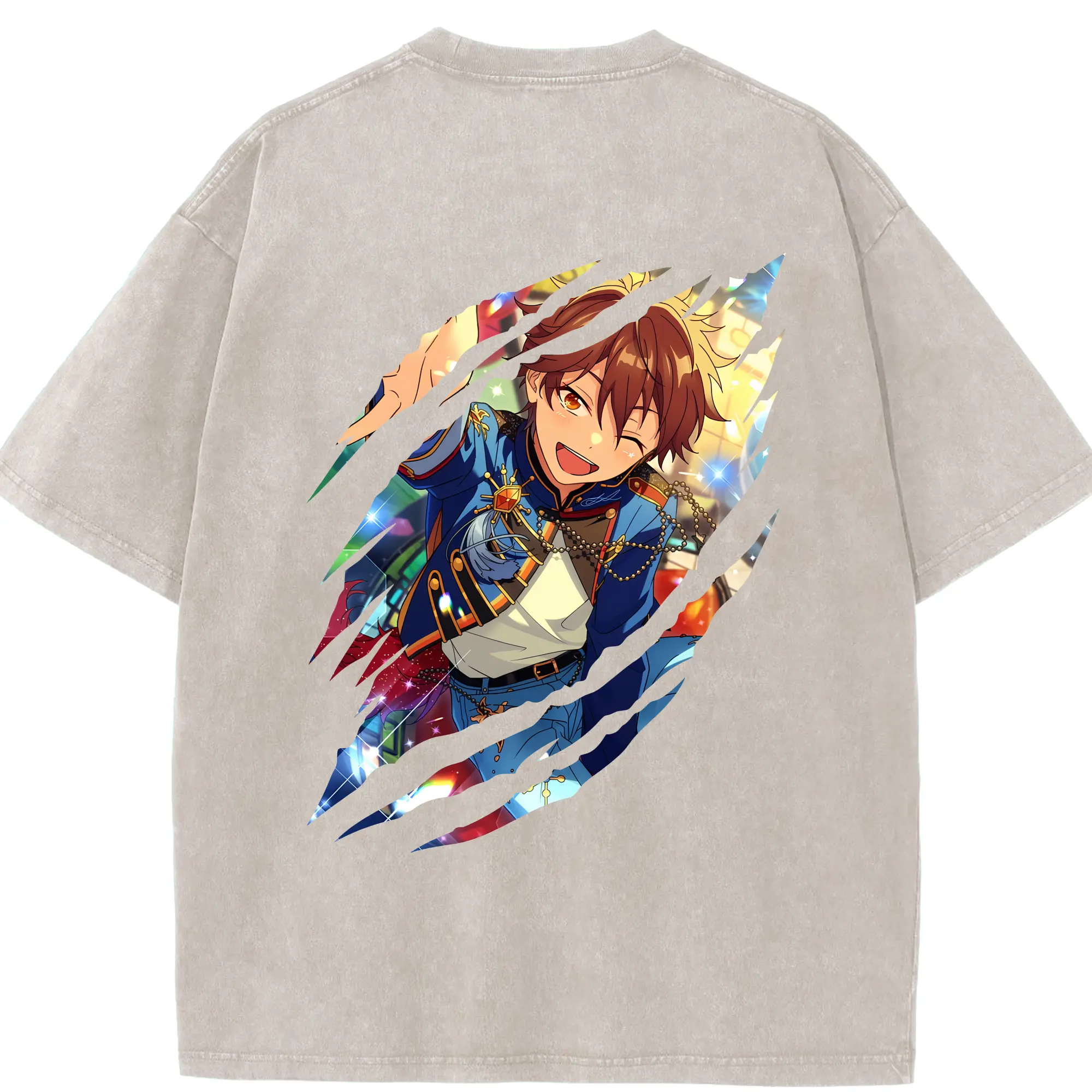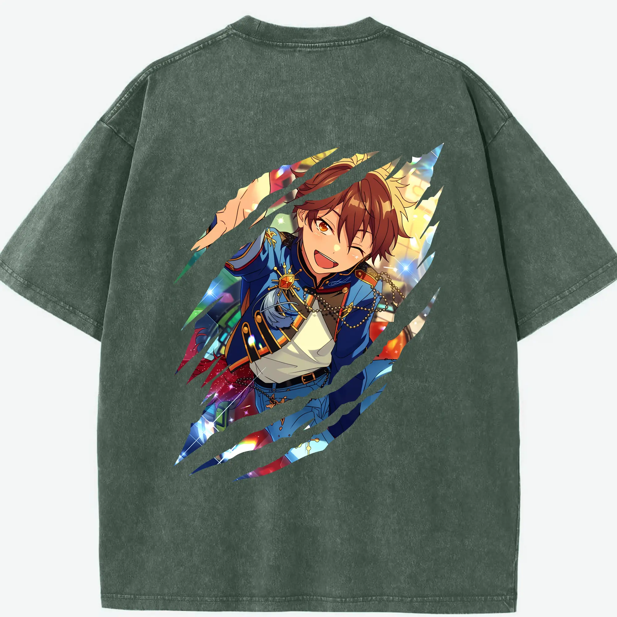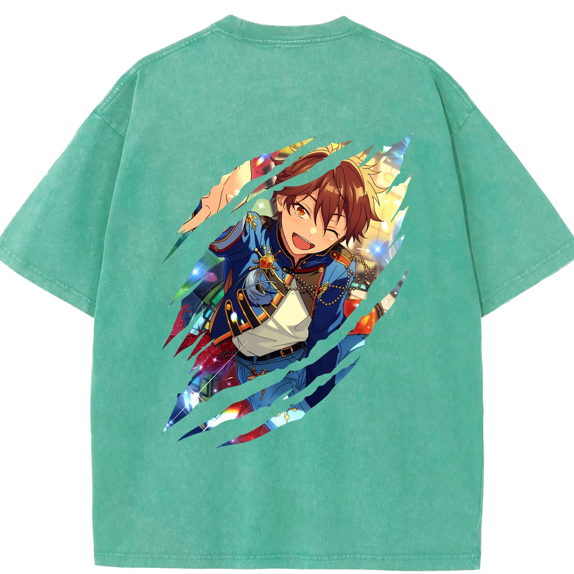あんさん ぶる グッズ 流星隊 守沢千秋 - 綿100% ヴィンテージ風 半袖Tシャツ ・ フロントプリント ・ 柔らか肌触り ・ 通気性 快適 ・ スポーツ カジュアル 外出用