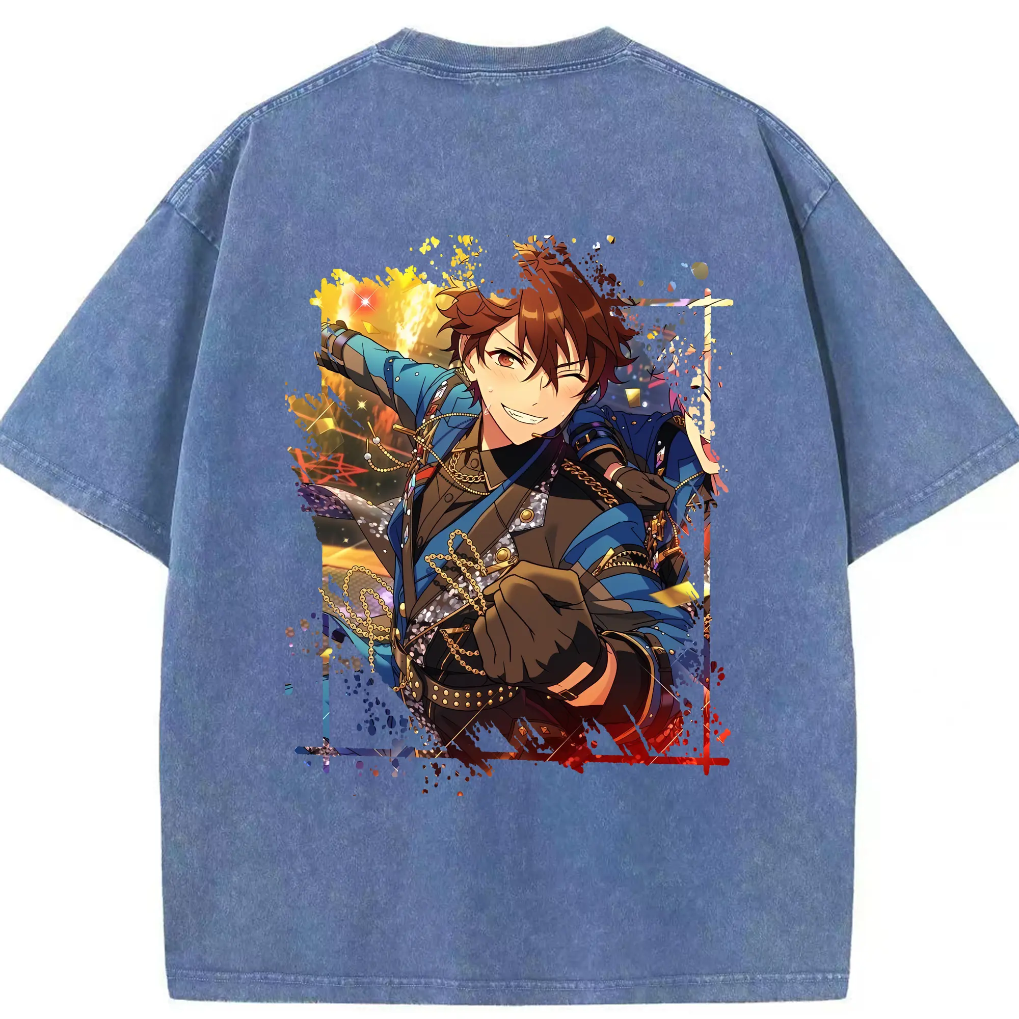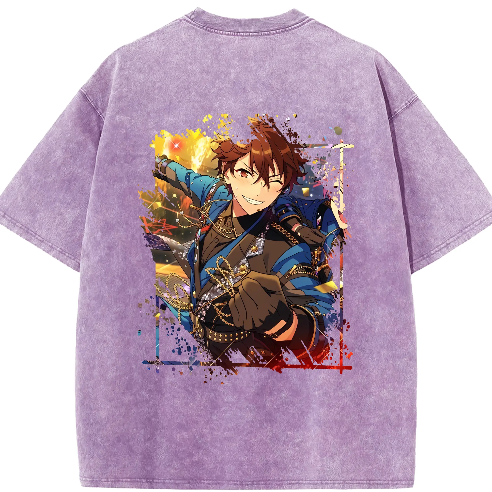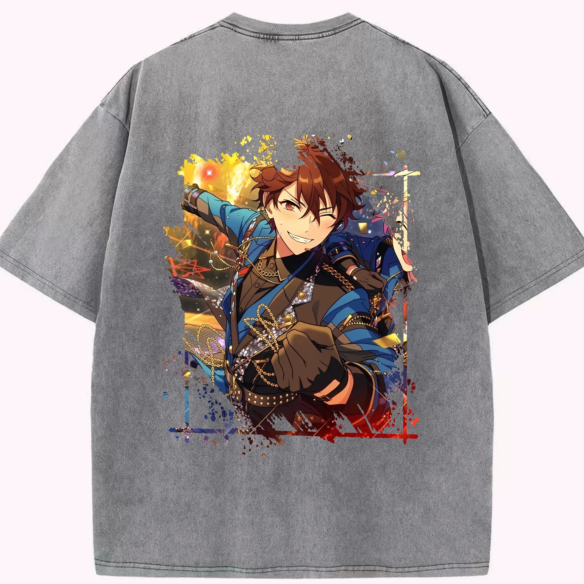 あんさん ぶる グッズ 流星隊 守沢千秋 - 綿100% ヴィンテージ風 半袖Tシャツ ・ フロントプリント ・ 柔らか肌触り ・ 通気性 快適 ・ スポーツ カジュアル 外出用