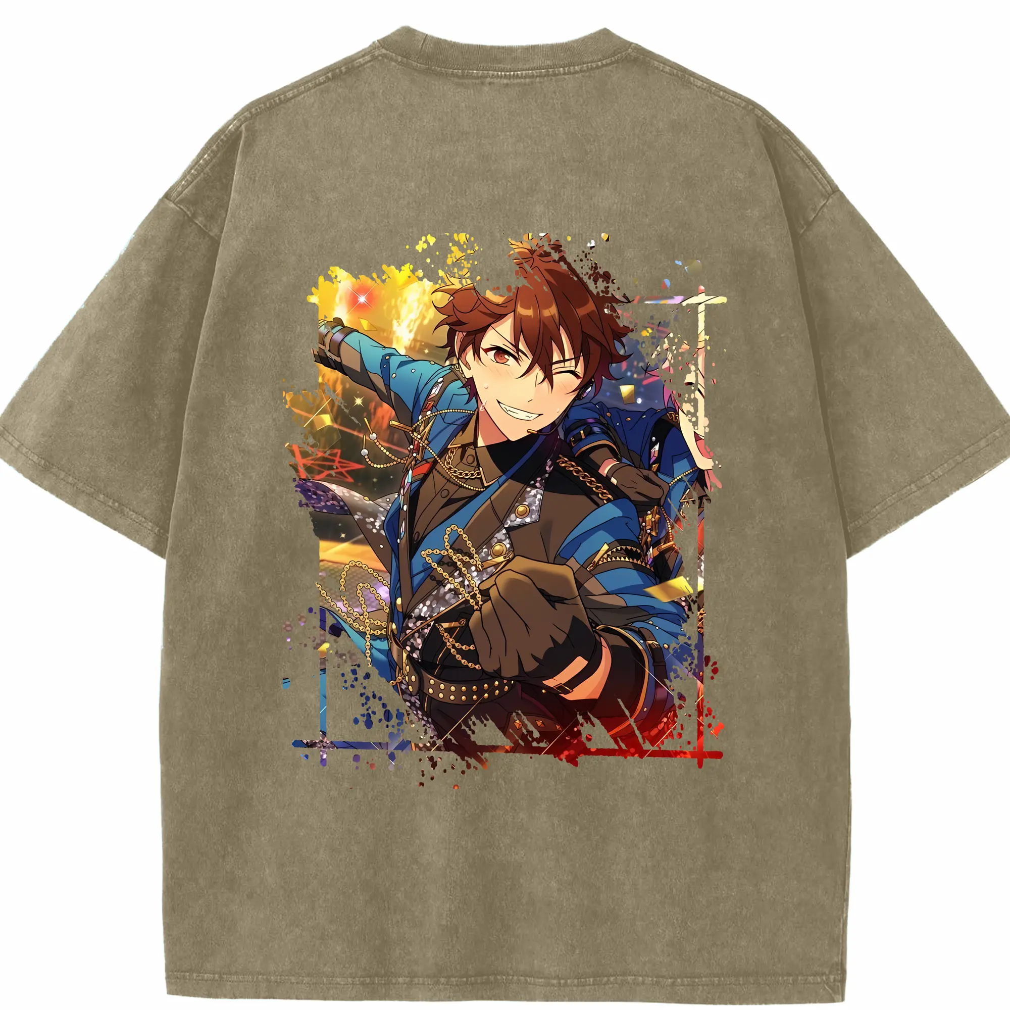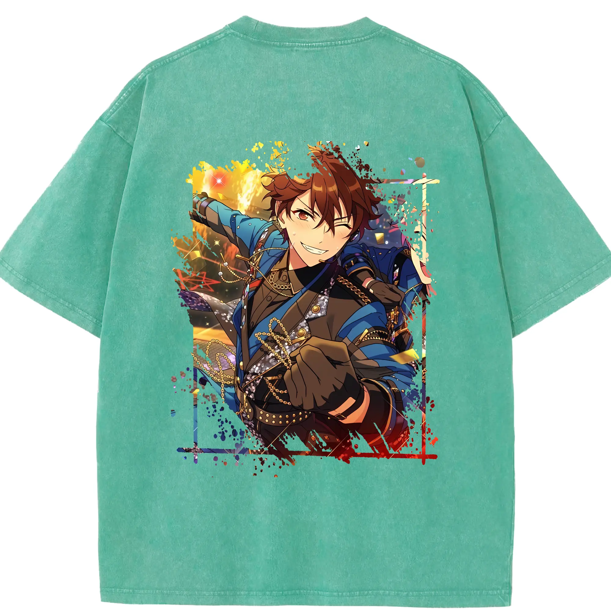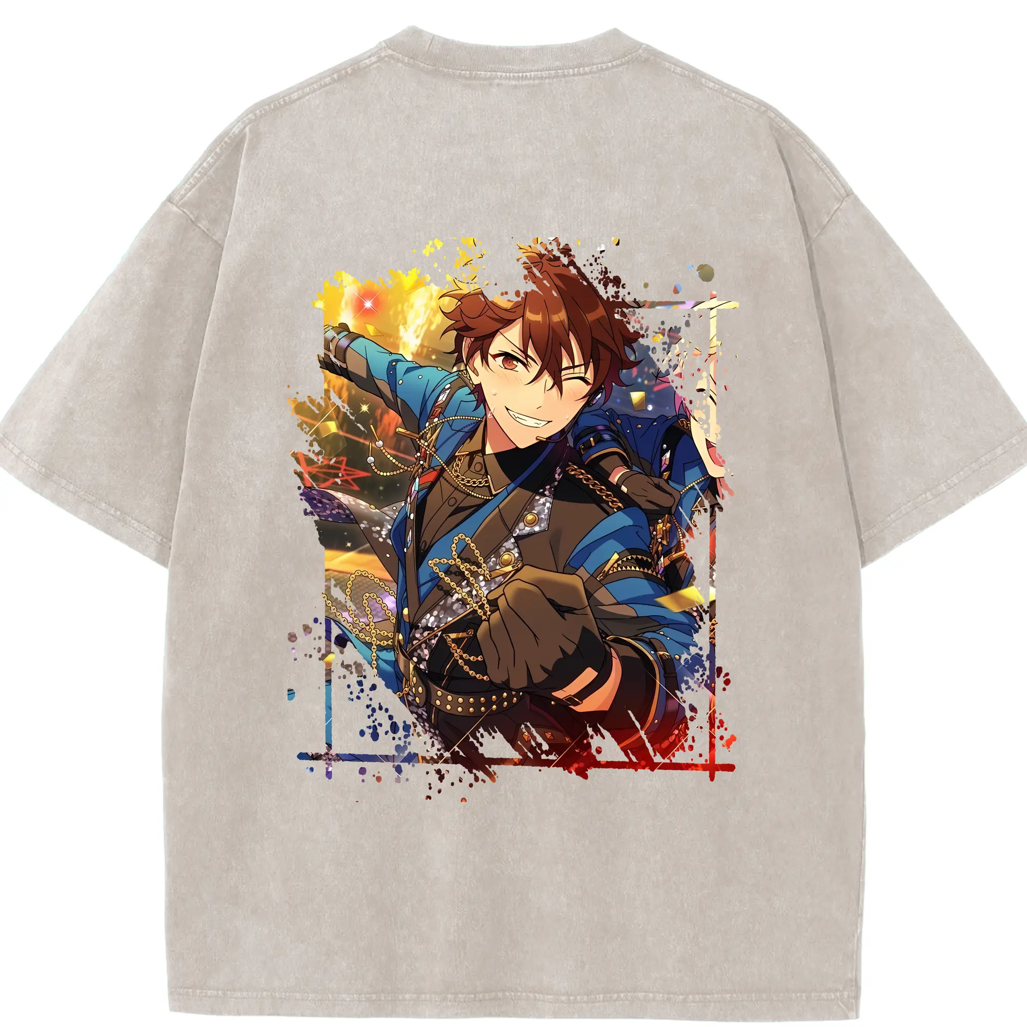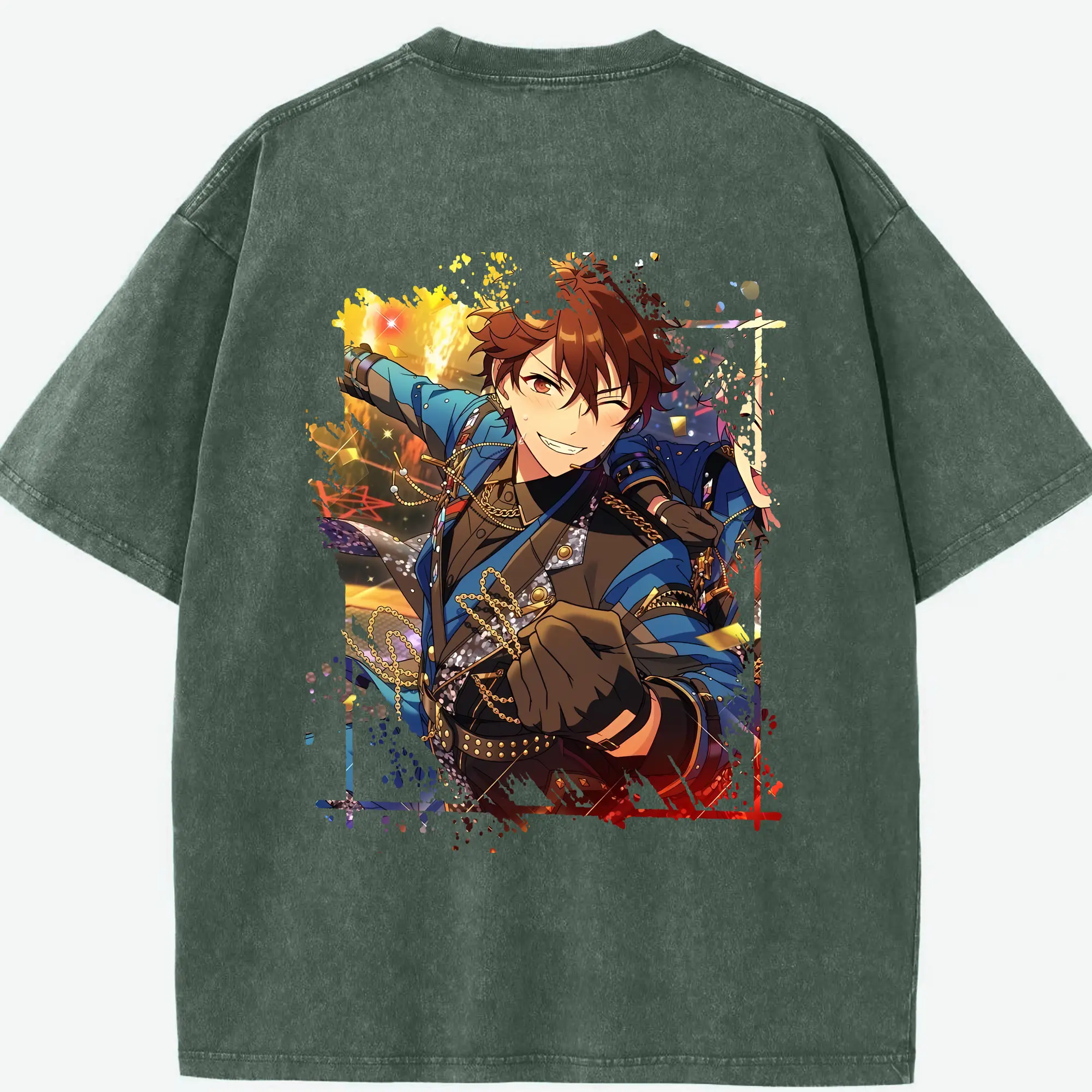 あんさん ぶる グッズ 流星隊 守沢千秋 - 綿100% ヴィンテージ風 半袖Tシャツ ・ フロントプリント ・ 柔らか肌触り ・ 通気性 快適 ・ スポーツ カジュアル 外出用