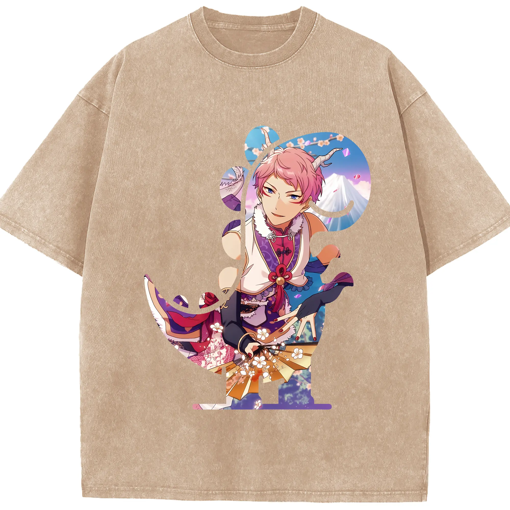 あんさん ぶる グッズ Valkyrie 斎宮宗 - 綿100% ヴィンテージ風 半袖Tシャツ ・ 背面プリント ・ 柔らか肌触り ・ 通気性 快適 ・ スポーツ カジュアル 外出用