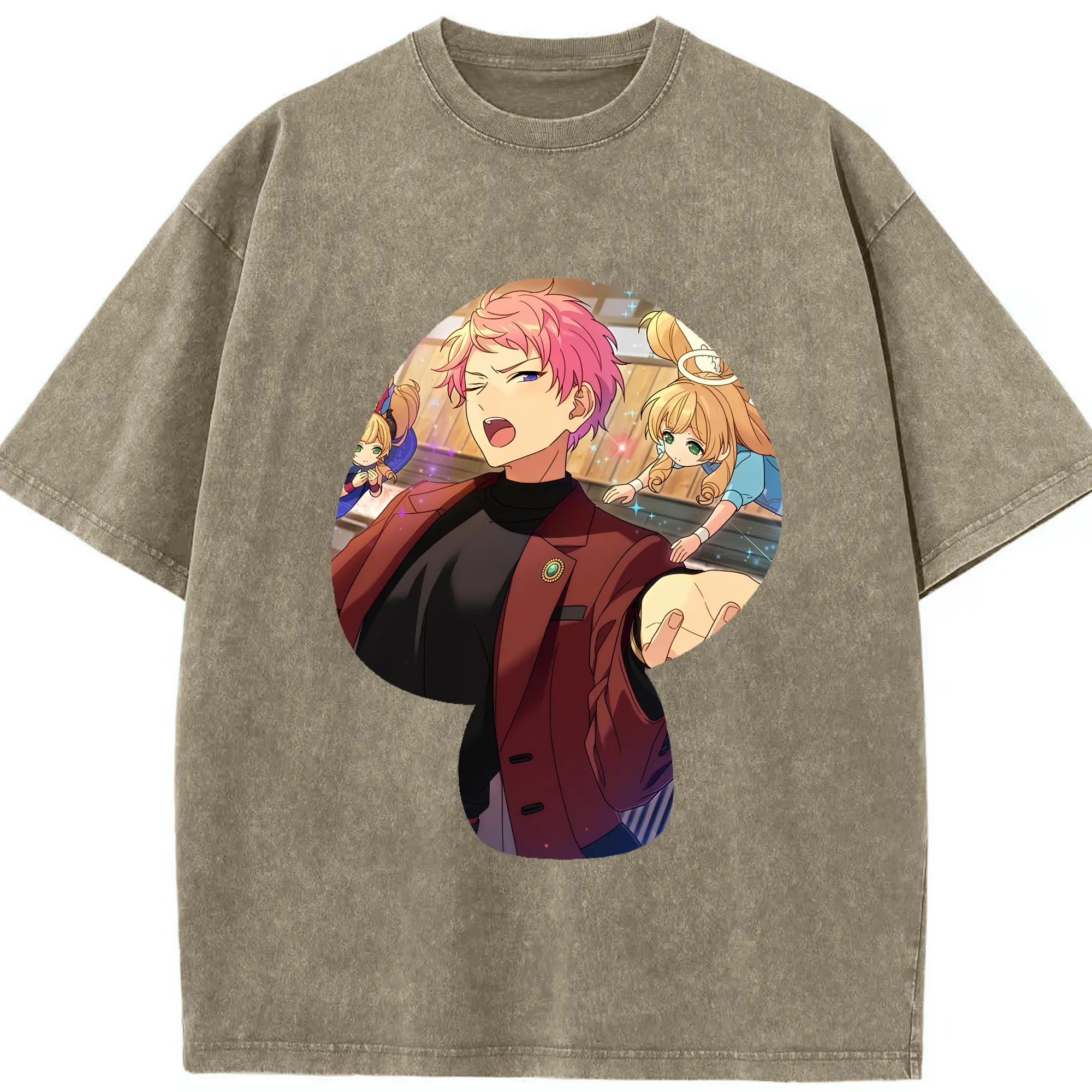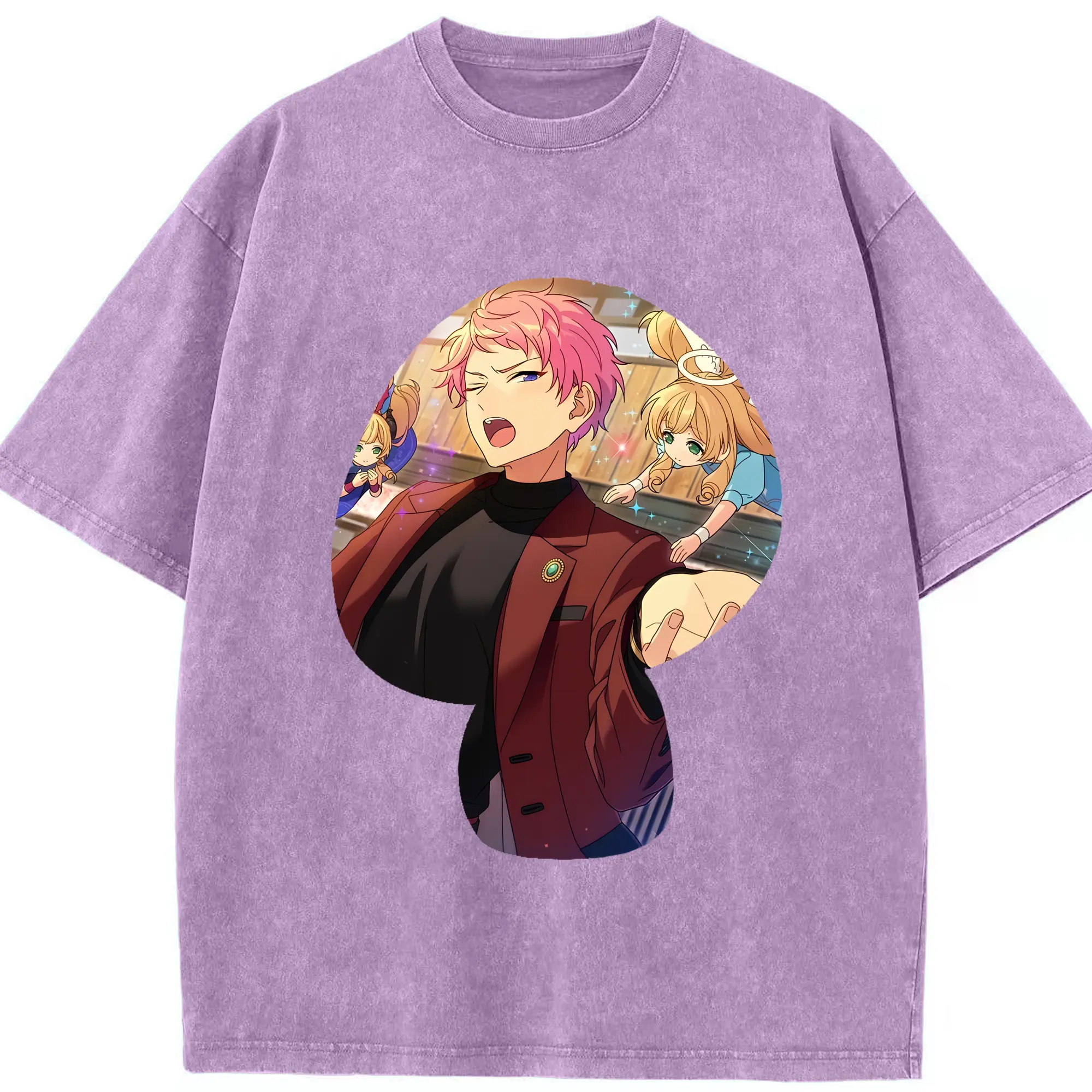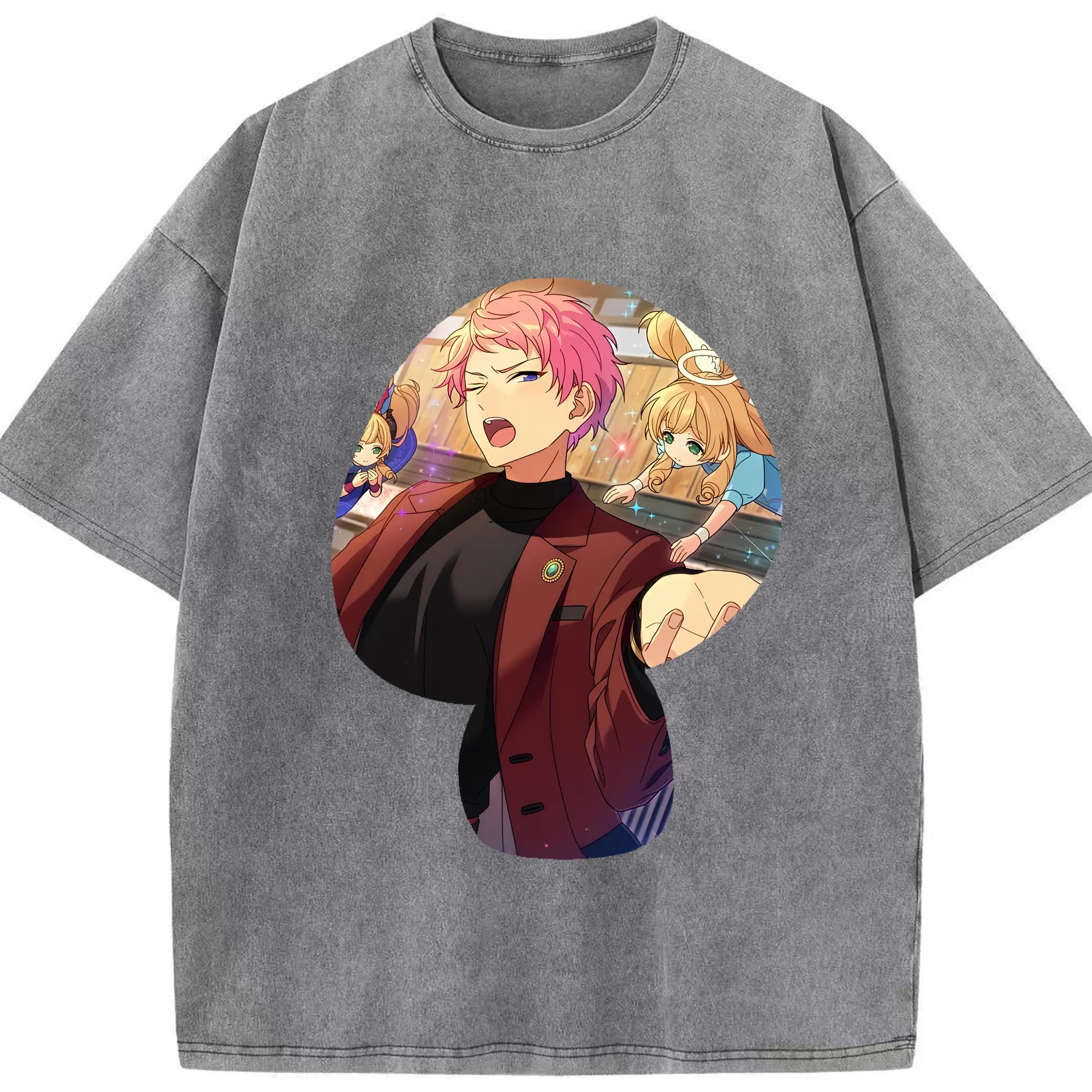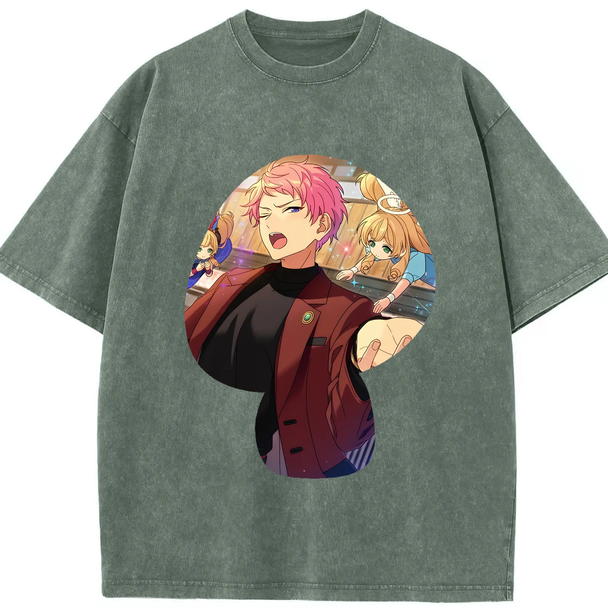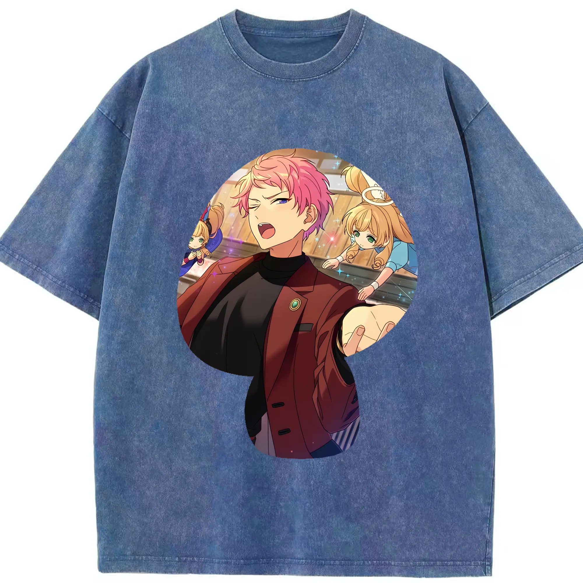 あんさん ぶる グッズ 流星隊 守沢千秋 - 綿100% ヴィンテージ風 半袖Tシャツ ・ フロントプリント ・ 柔らか肌触り ・ 通気性 快適 ・ スポーツ カジュアル 外出用