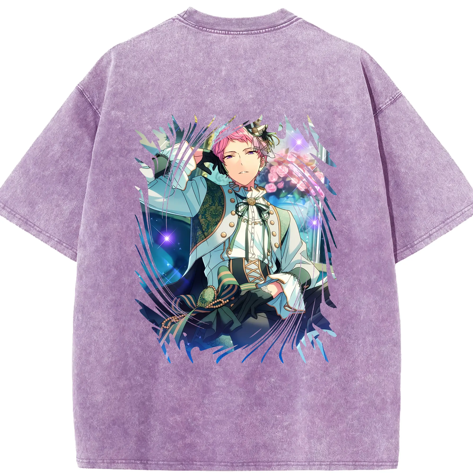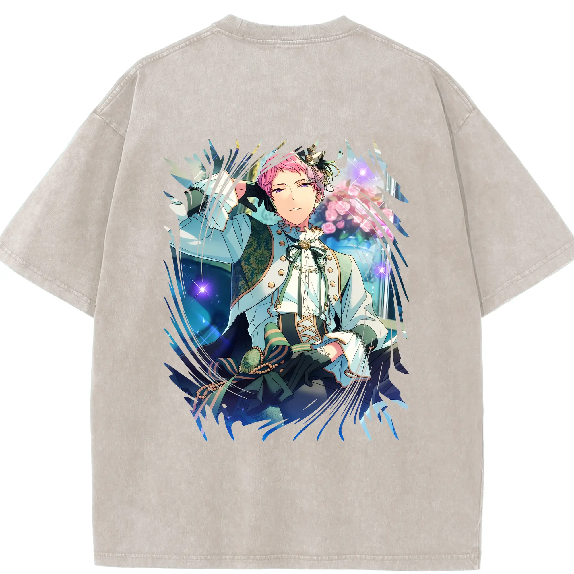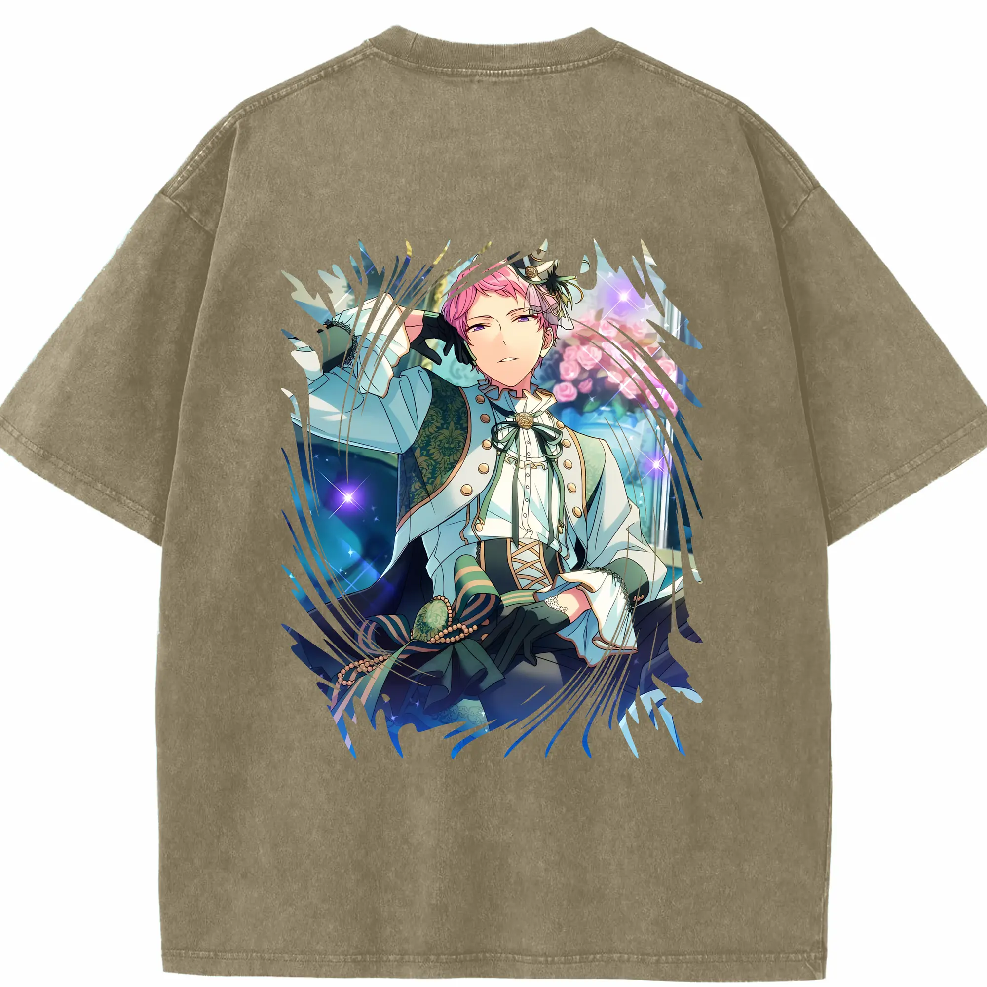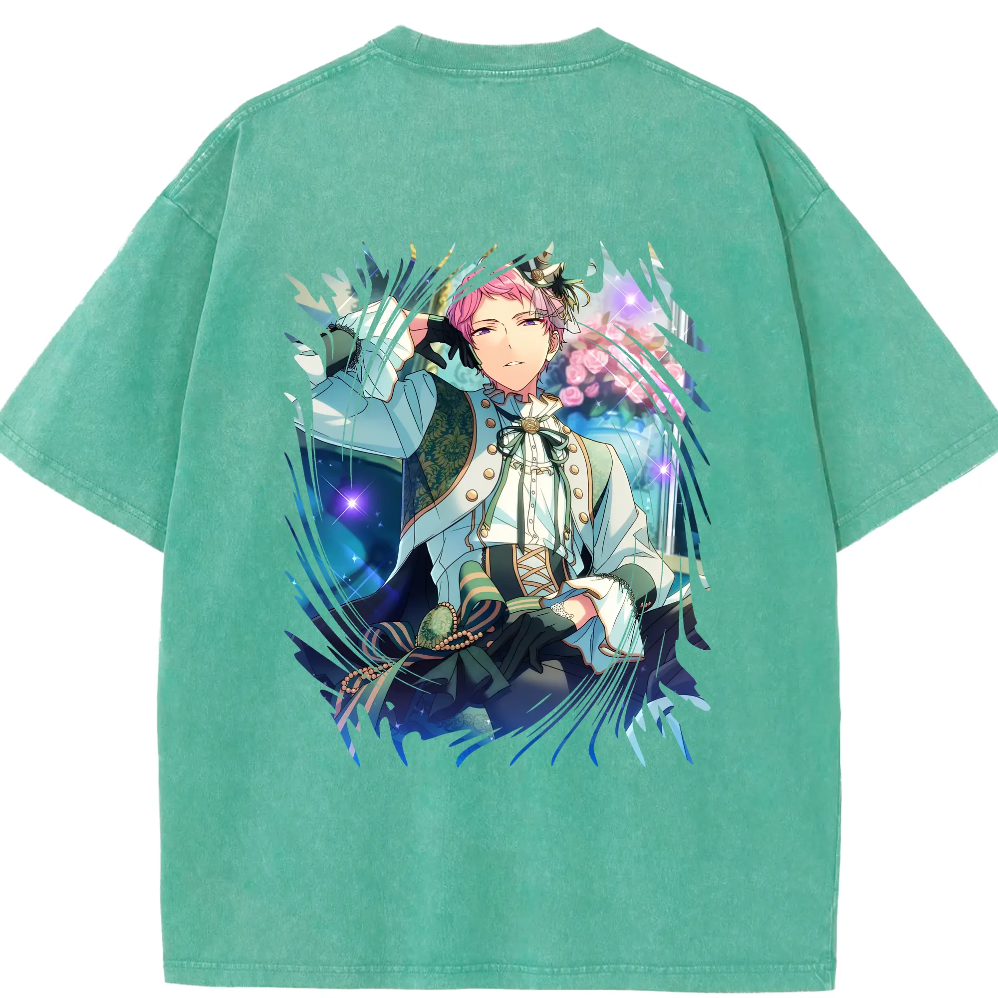 あんさん ぶる グッズ UNDEAD 羽風薫 - 綿100% ヴィンテージ風 半袖Tシャツ ・ 背面プリント ・ 柔らか肌触り ・ 通気性 快適 ・ スポーツ カジュアル 外出用