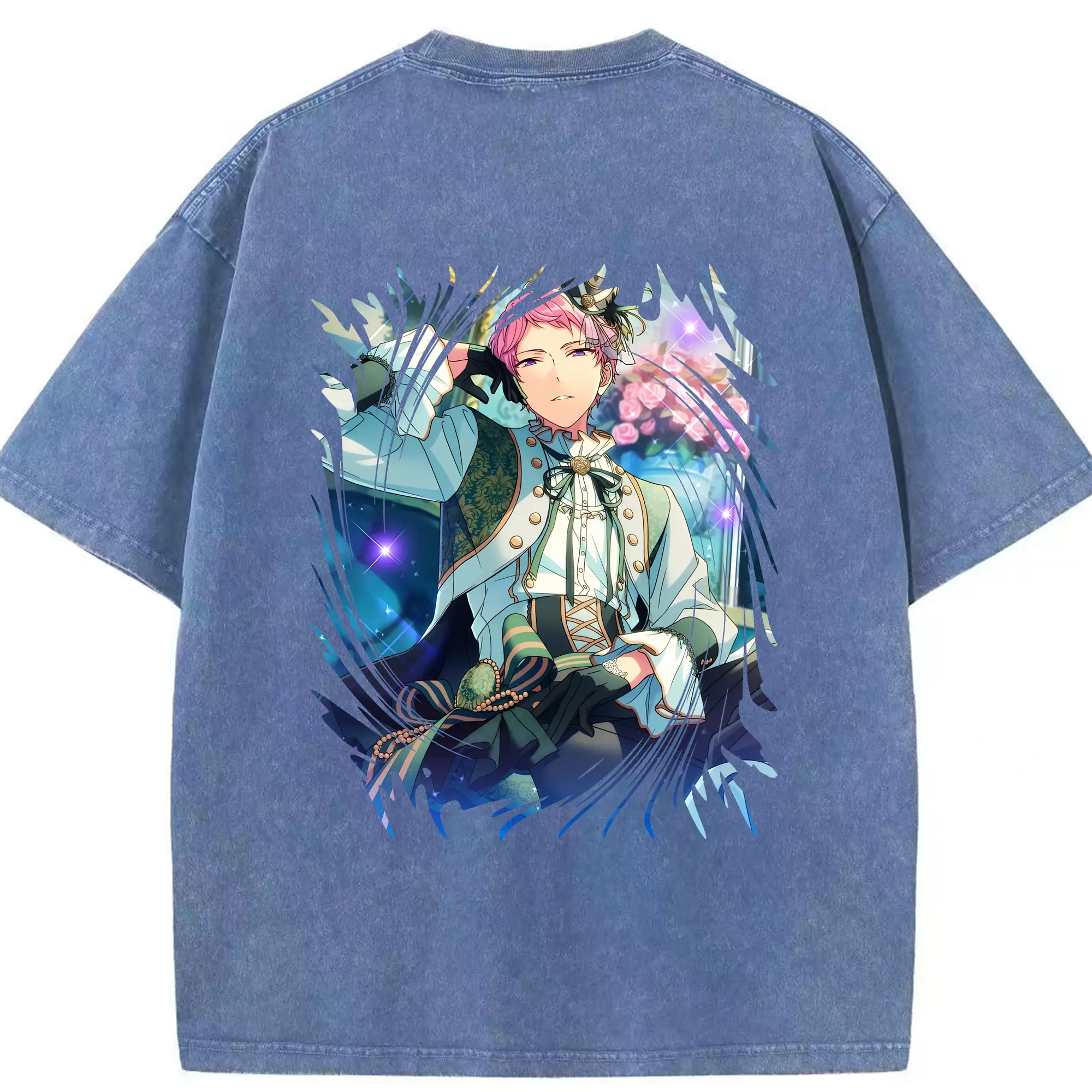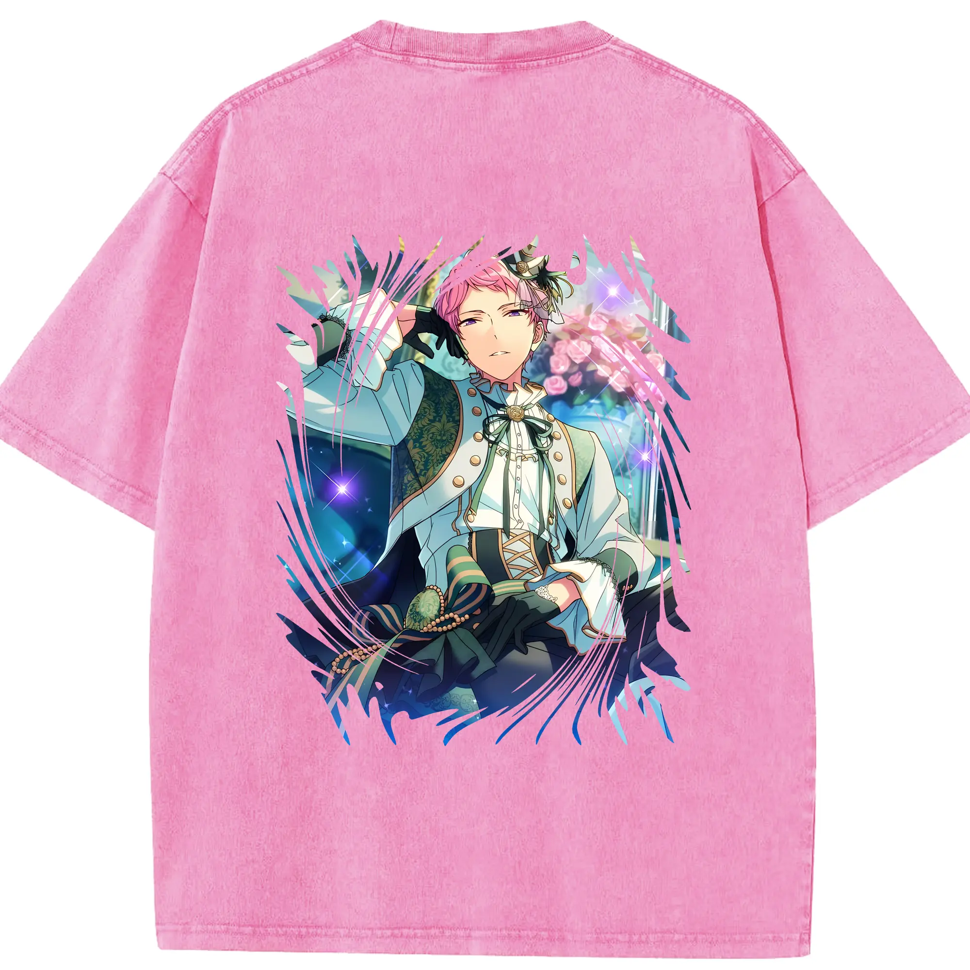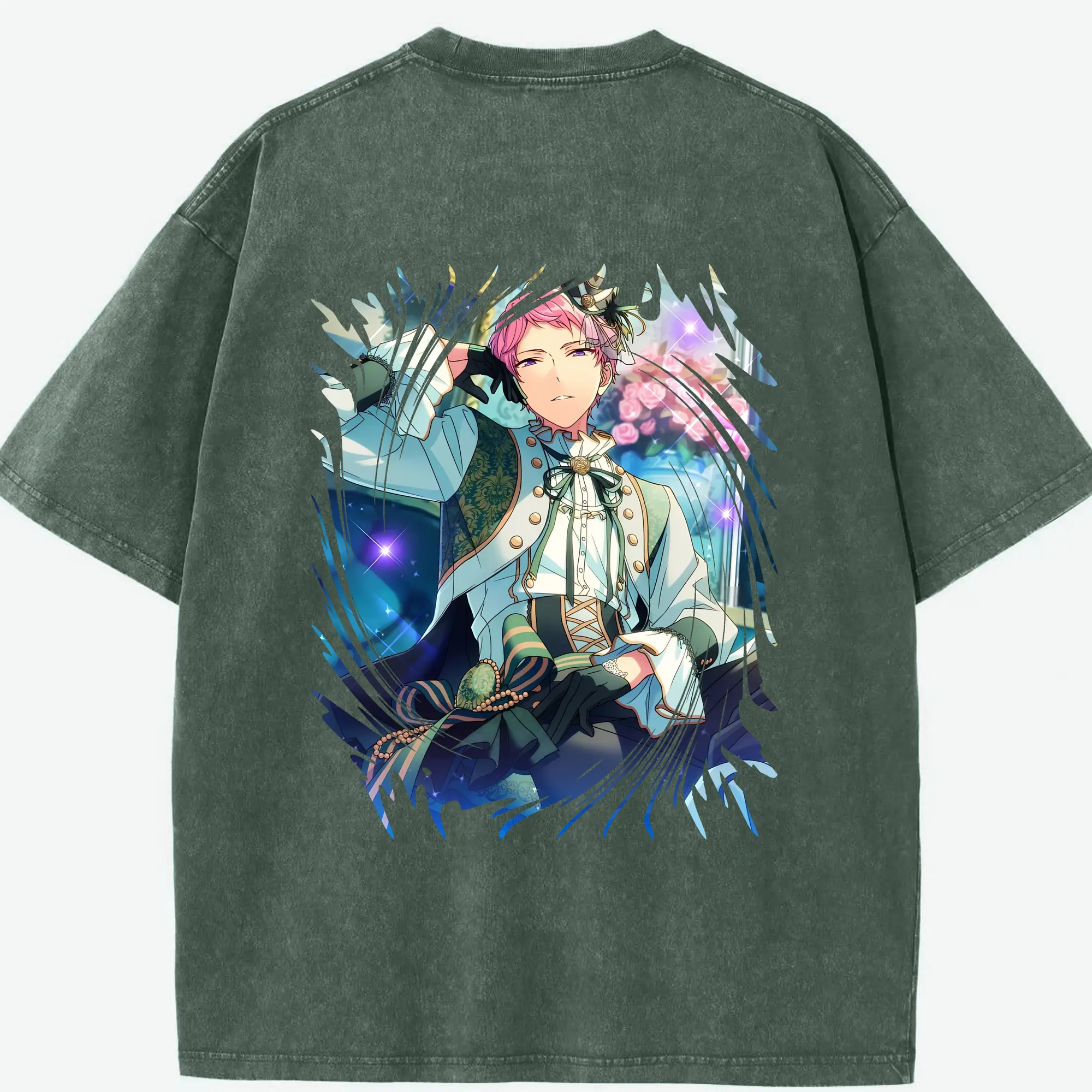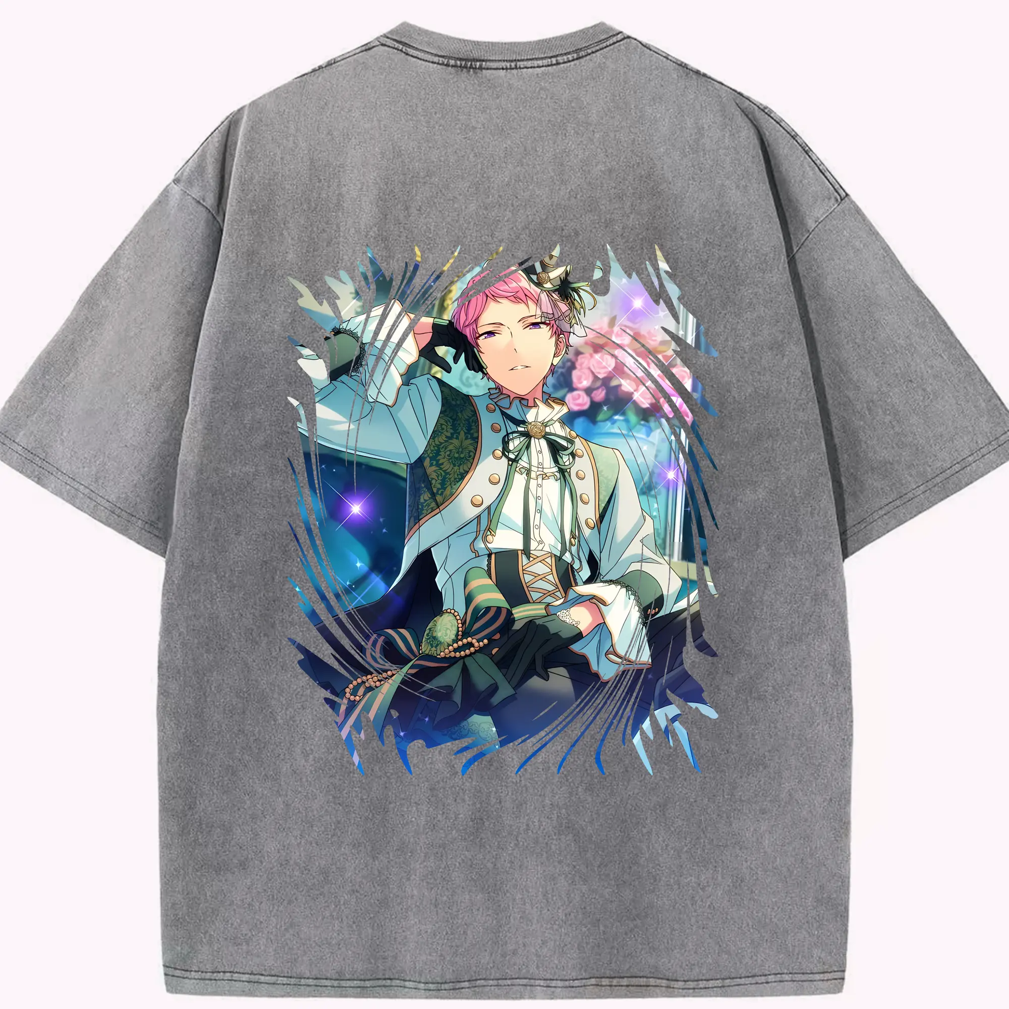 あんさん ぶる グッズ UNDEAD 羽風薫 - 綿100% ヴィンテージ風 半袖Tシャツ ・ 背面プリント ・ 柔らか肌触り ・ 通気性 快適 ・ スポーツ カジュアル 外出用