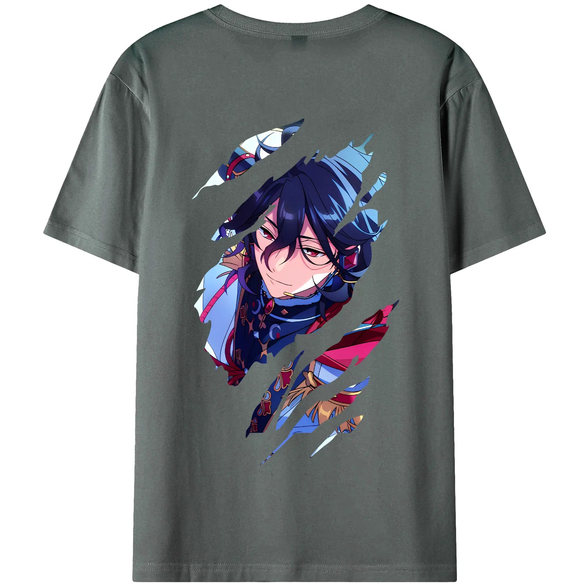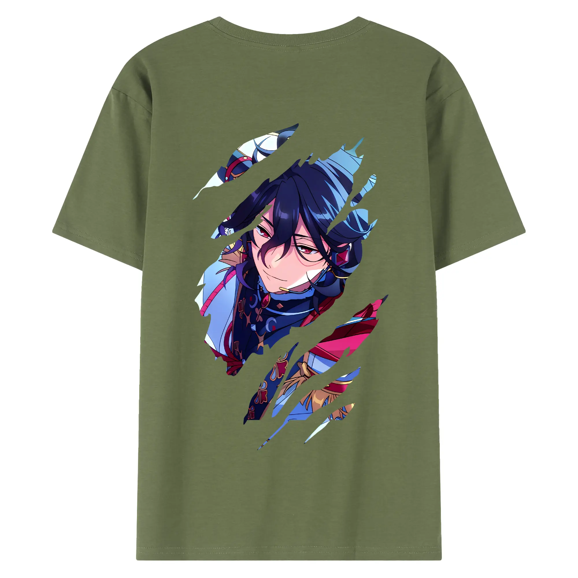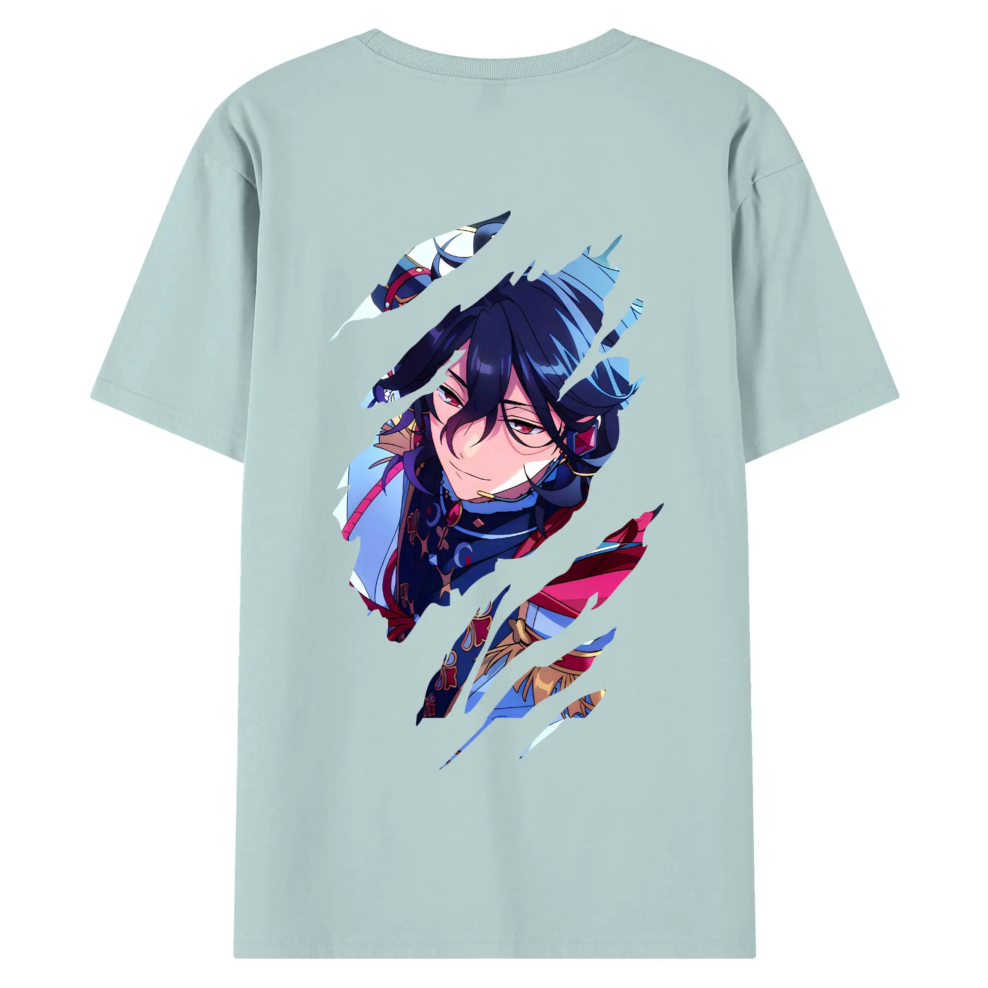 鬼滅の刃 グッズ,不死川 実弥 - 綿100% 半袖Tシャツ ・ バックプリント ・ 快適 通気性 ・ 日常使い 散歩 スポーツ用