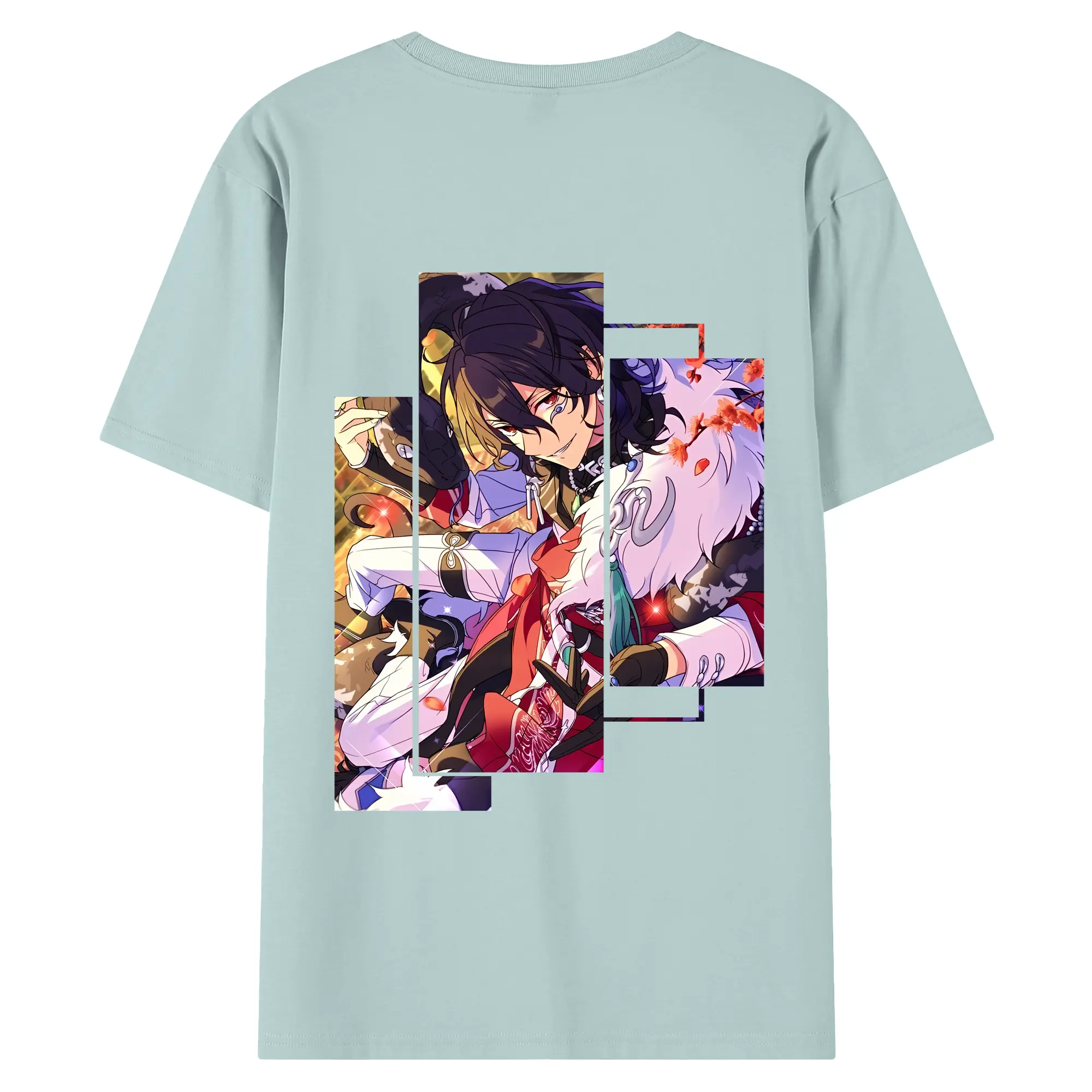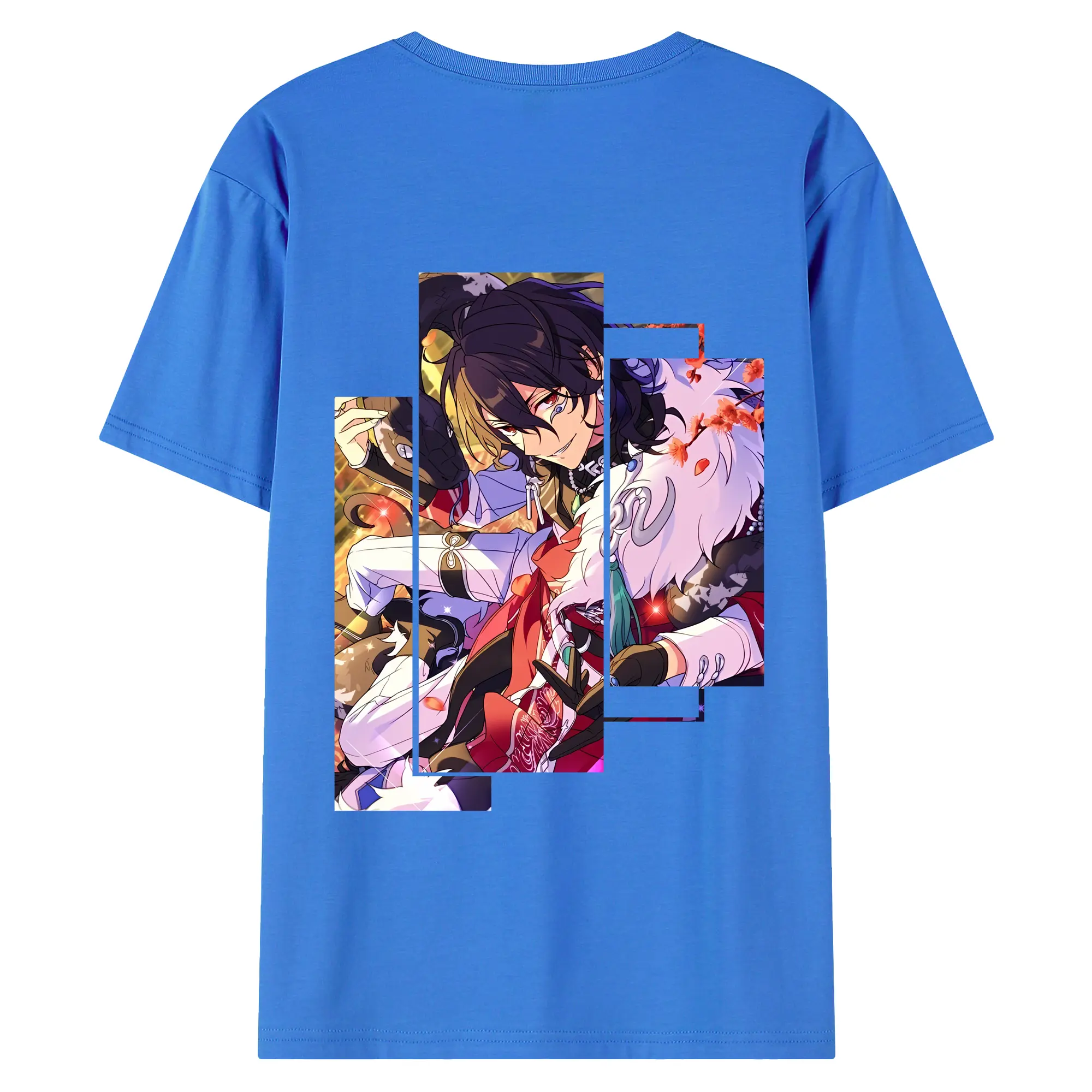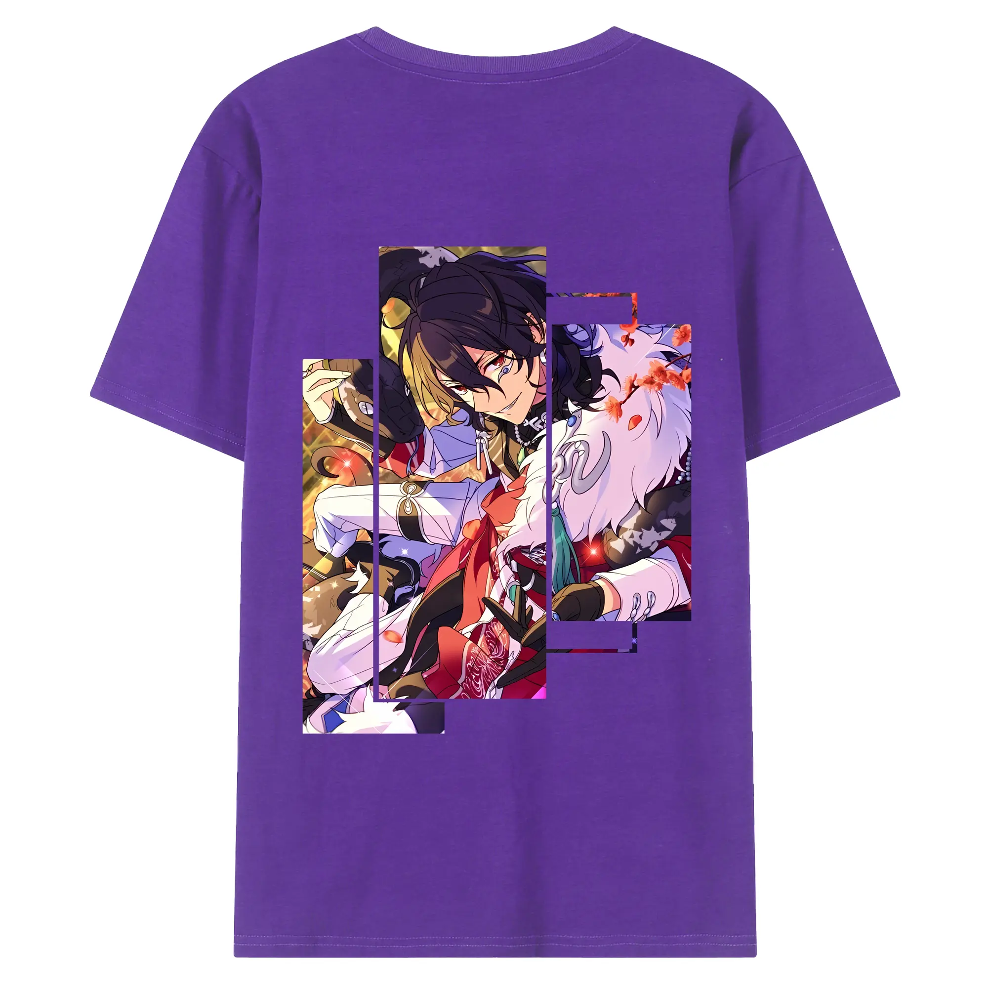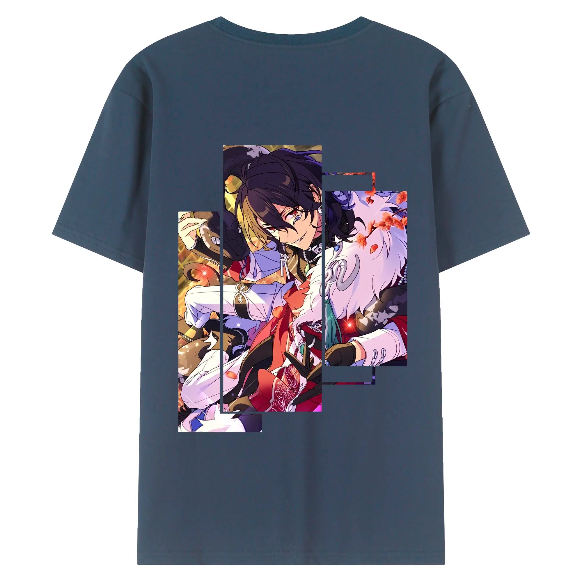 原 神 グッズ 荒瀧 一 斗 - 綿100% 半袖Tシャツ ・ バックプリント ・ 快適 通気性 ・ 日常使い 散歩 スポーツ用