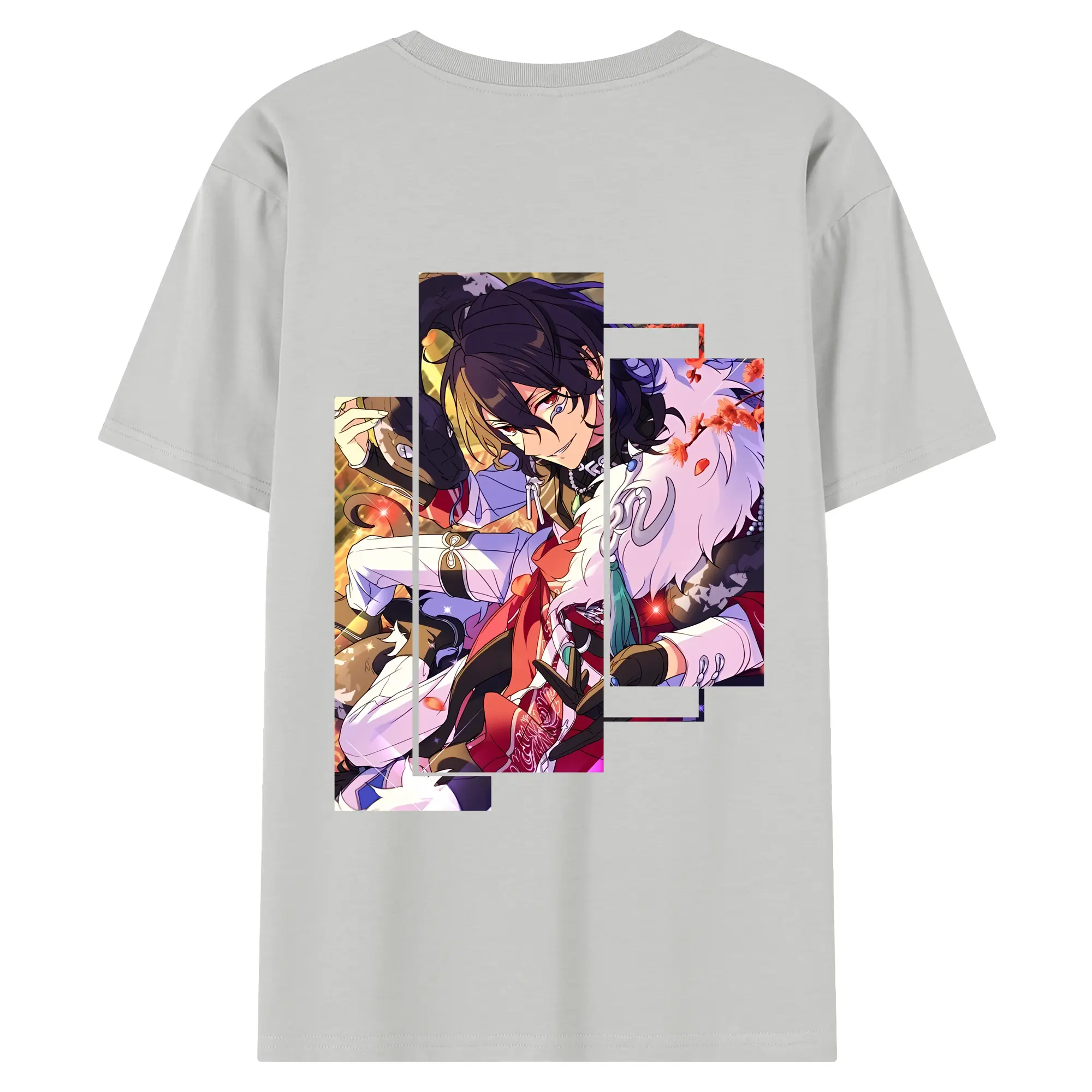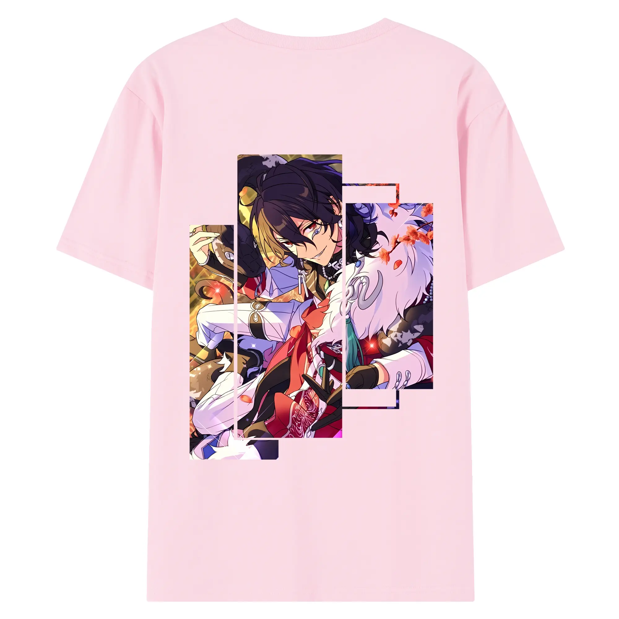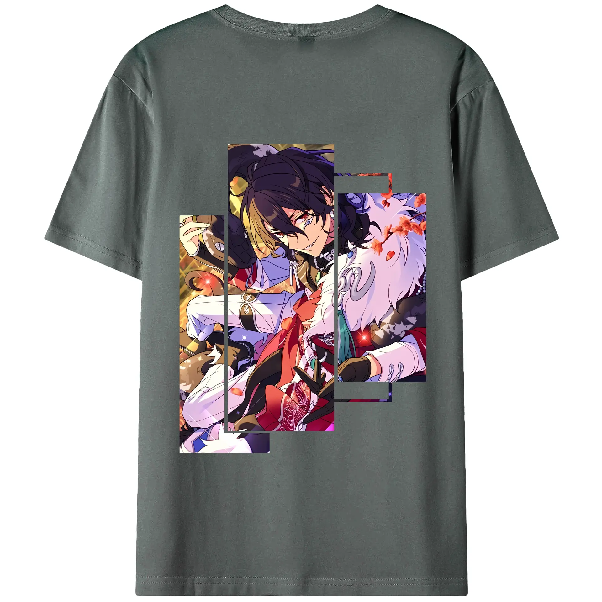 原 神 グッズ 荒瀧 一 斗 - 綿100% 半袖Tシャツ ・ バックプリント ・ 快適 通気性 ・ 日常使い 散歩 スポーツ用