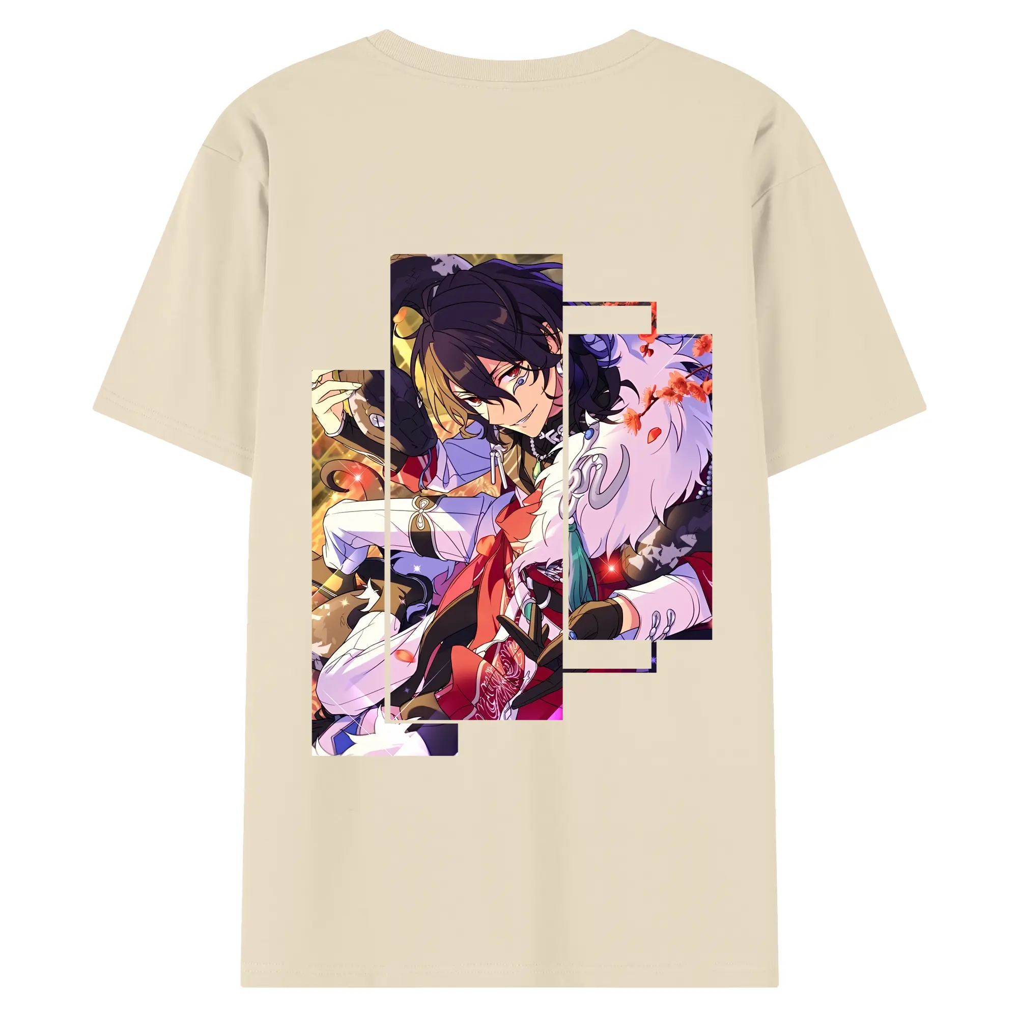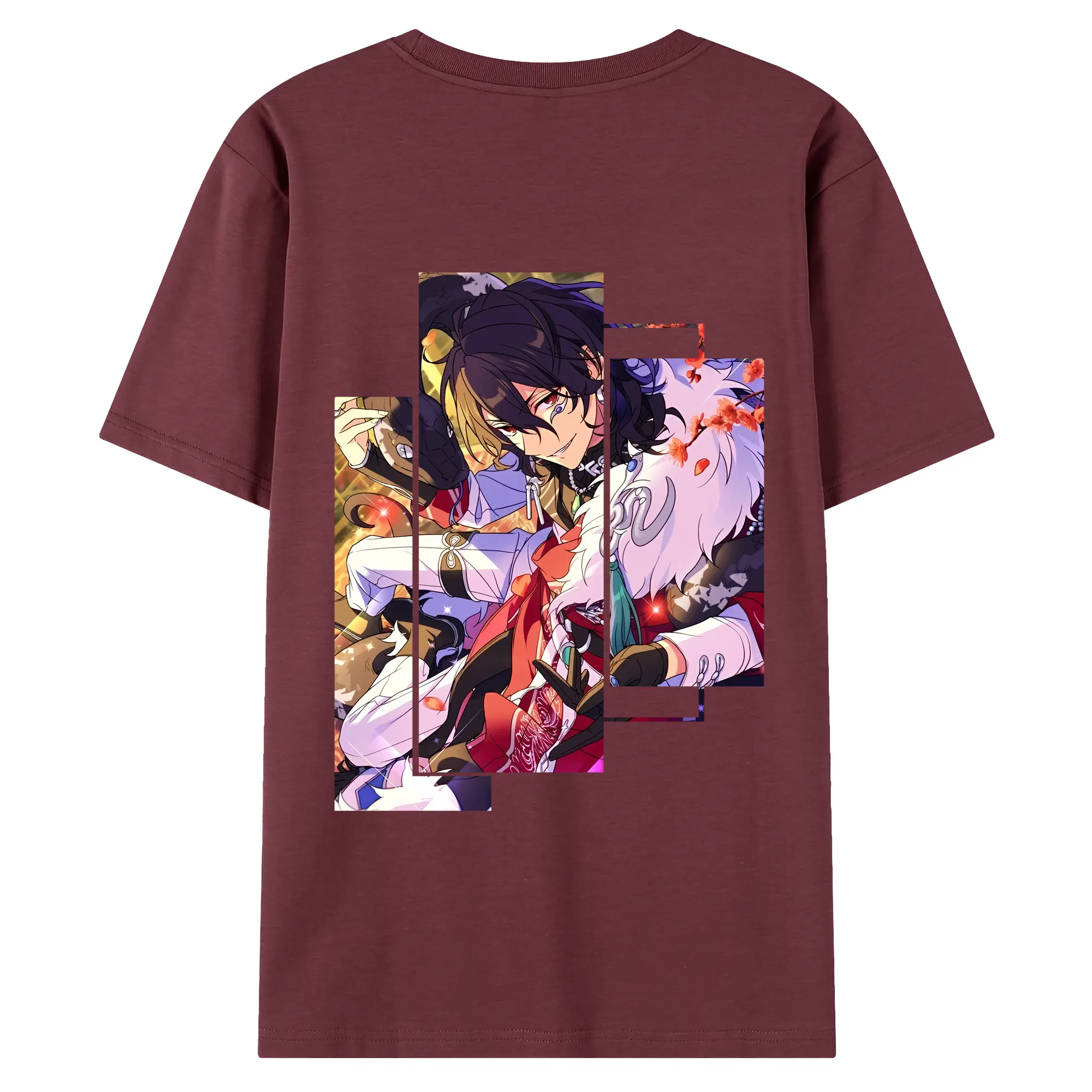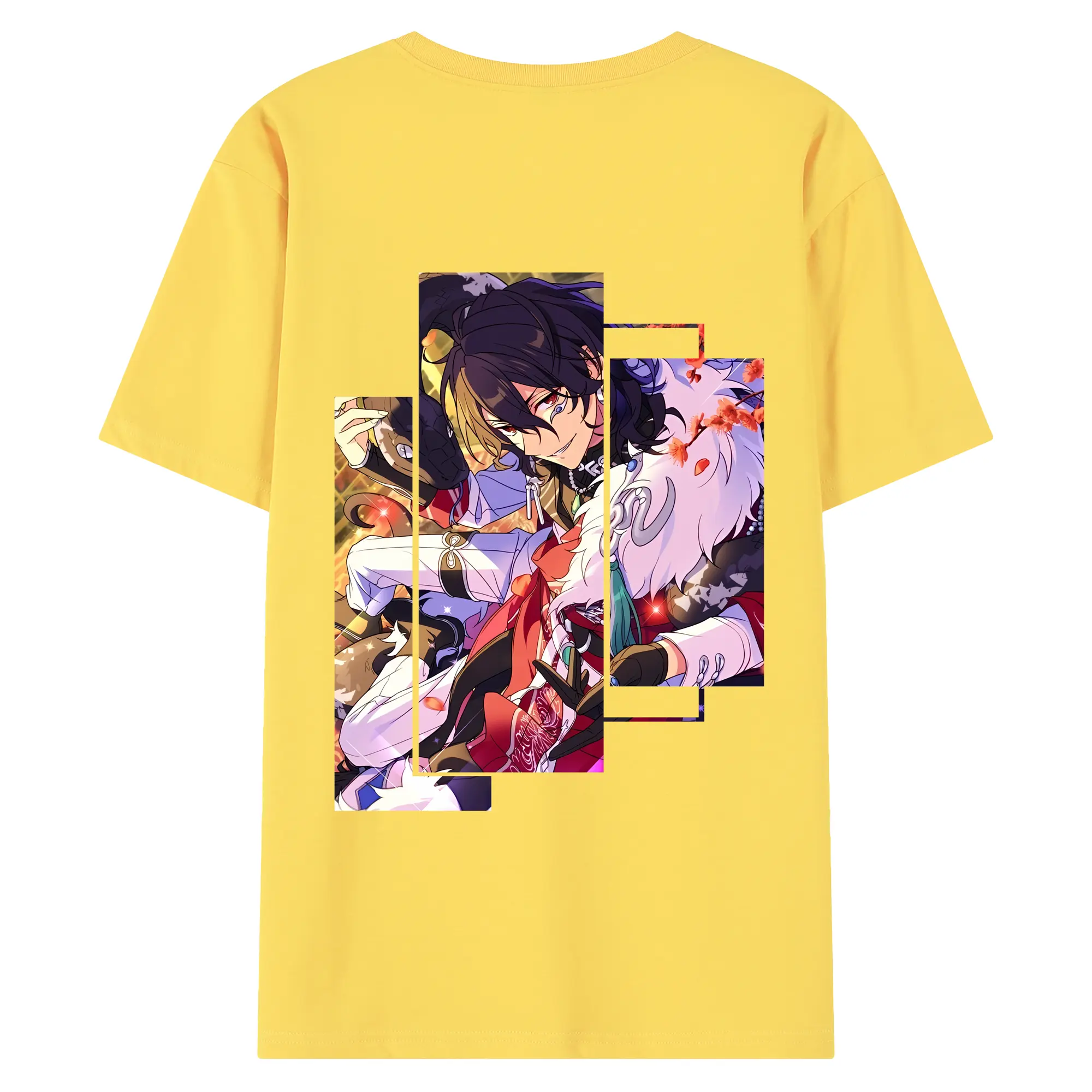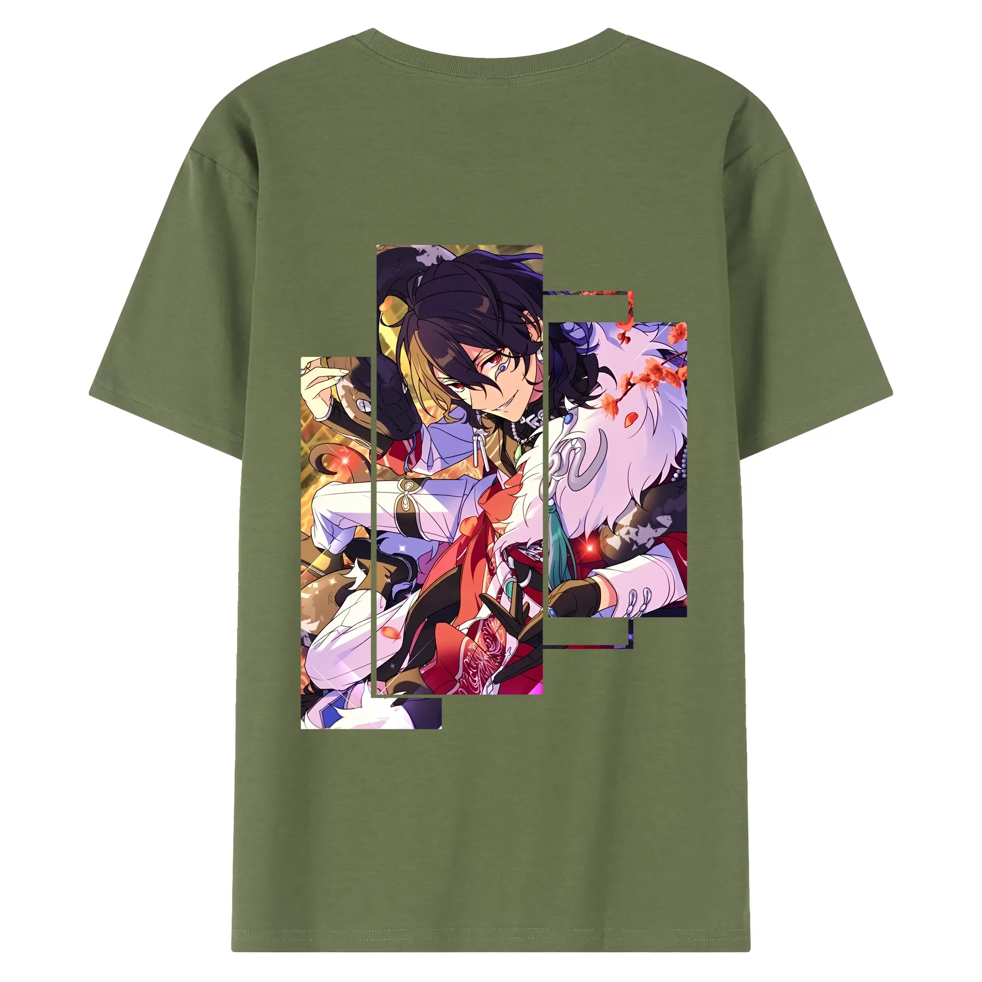 原 神 グッズ 荒瀧 一 斗 - 綿100% 半袖Tシャツ ・ バックプリント ・ 快適 通気性 ・ 日常使い 散歩 スポーツ用