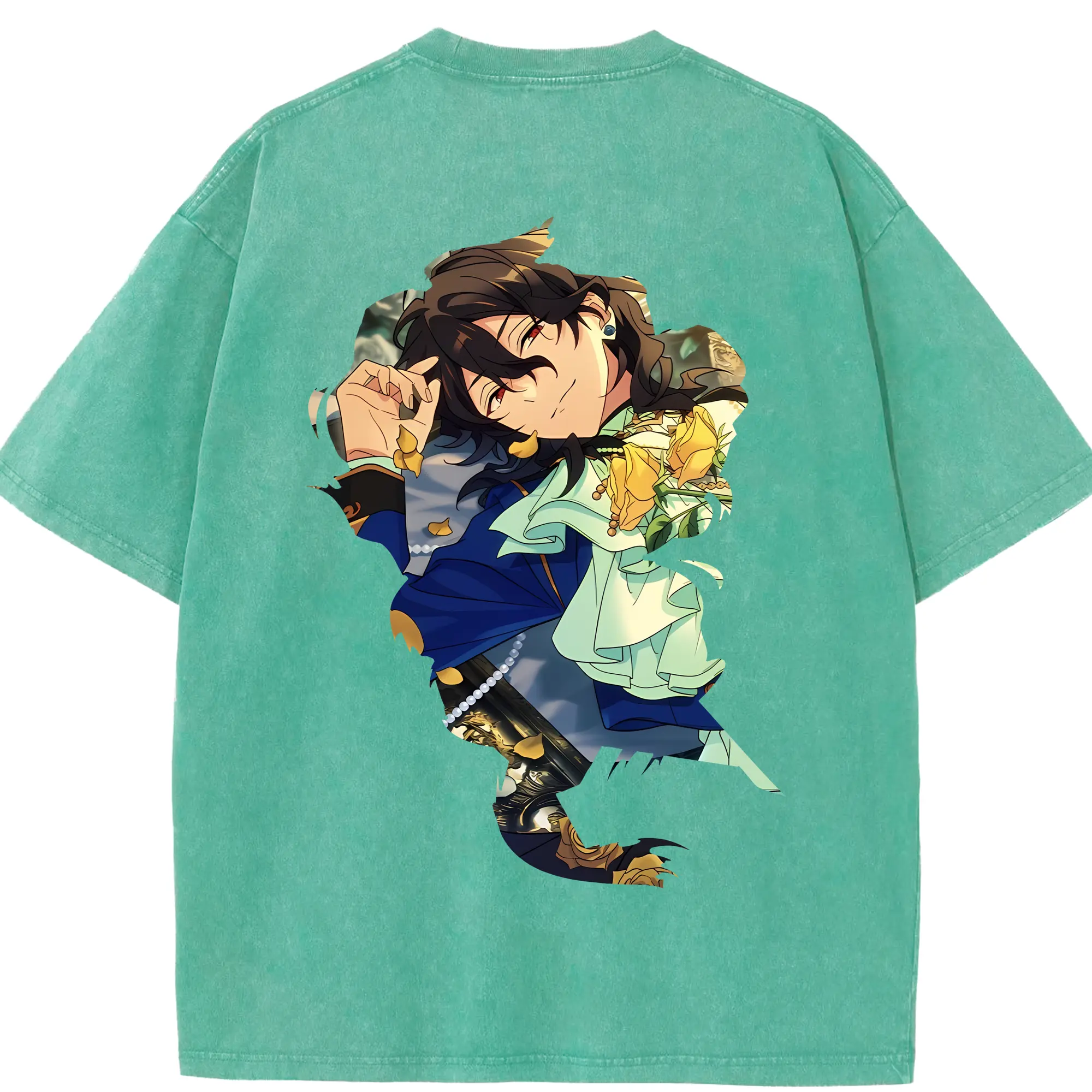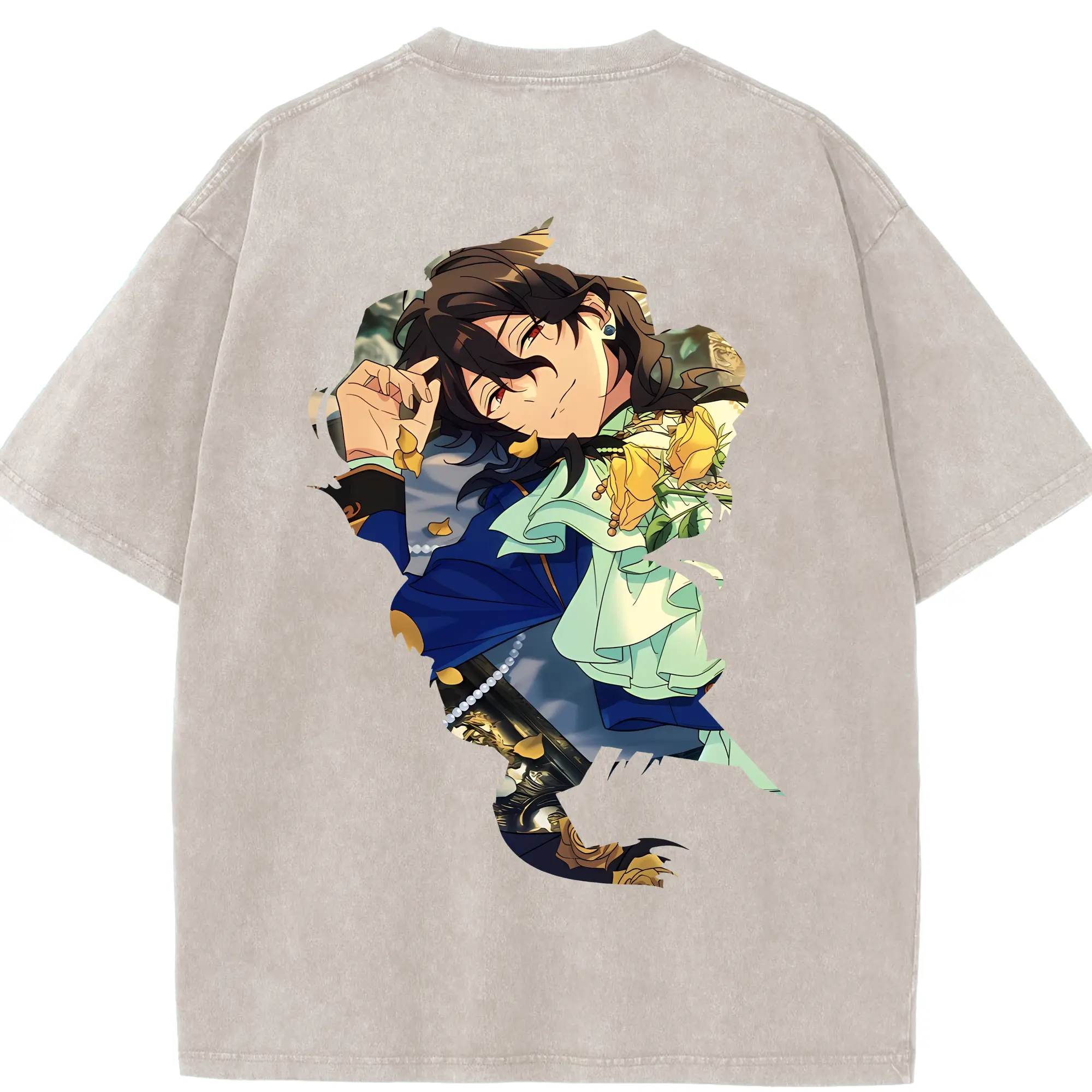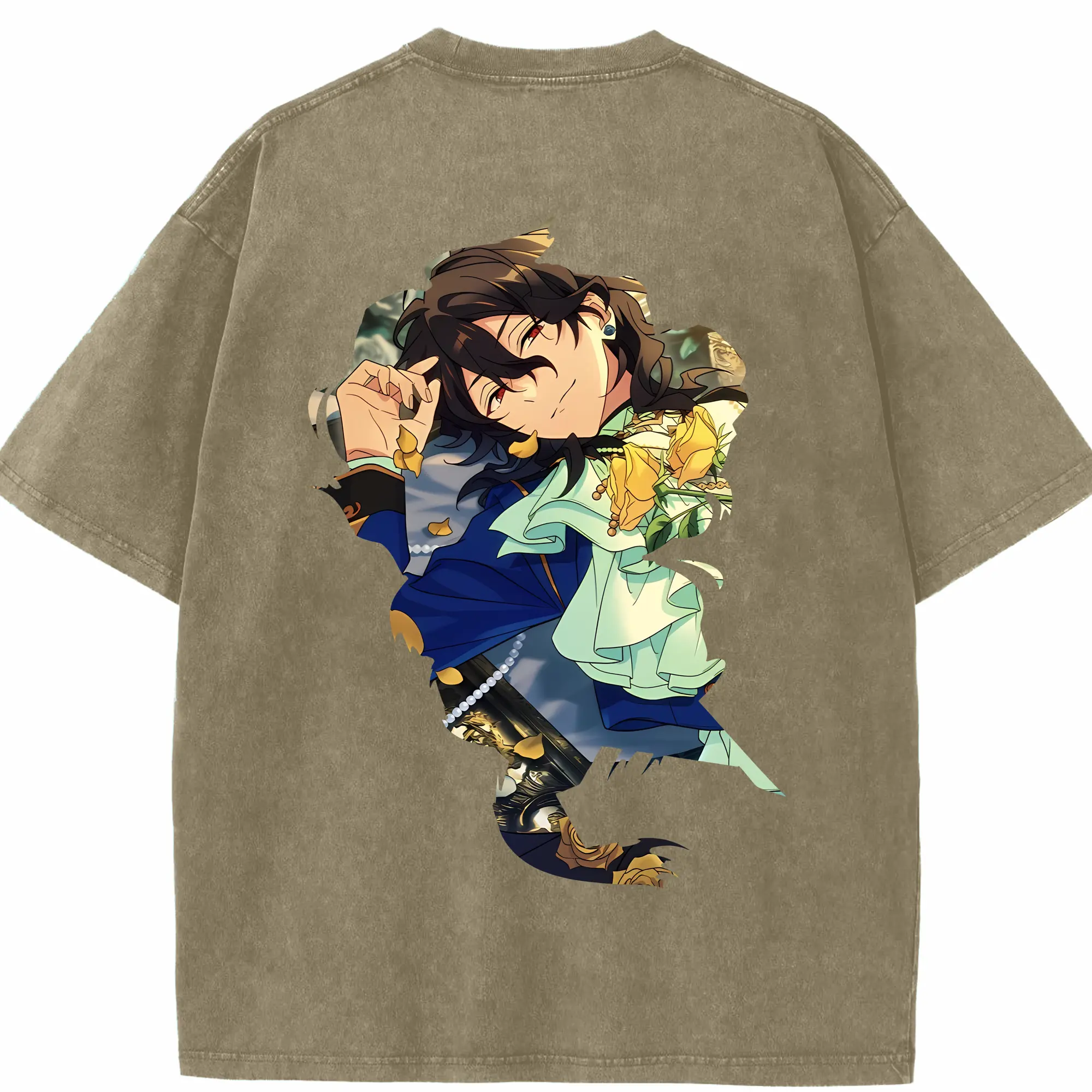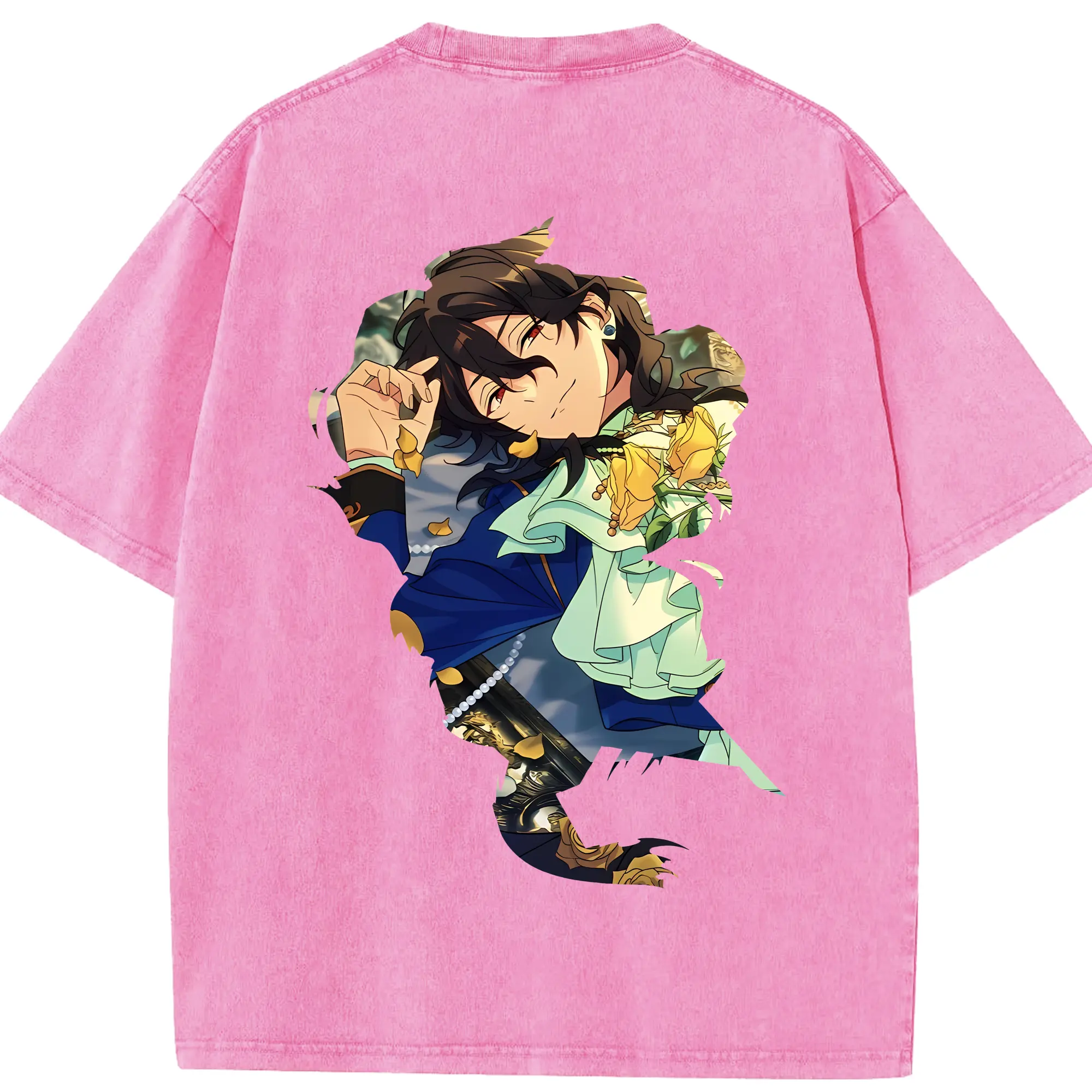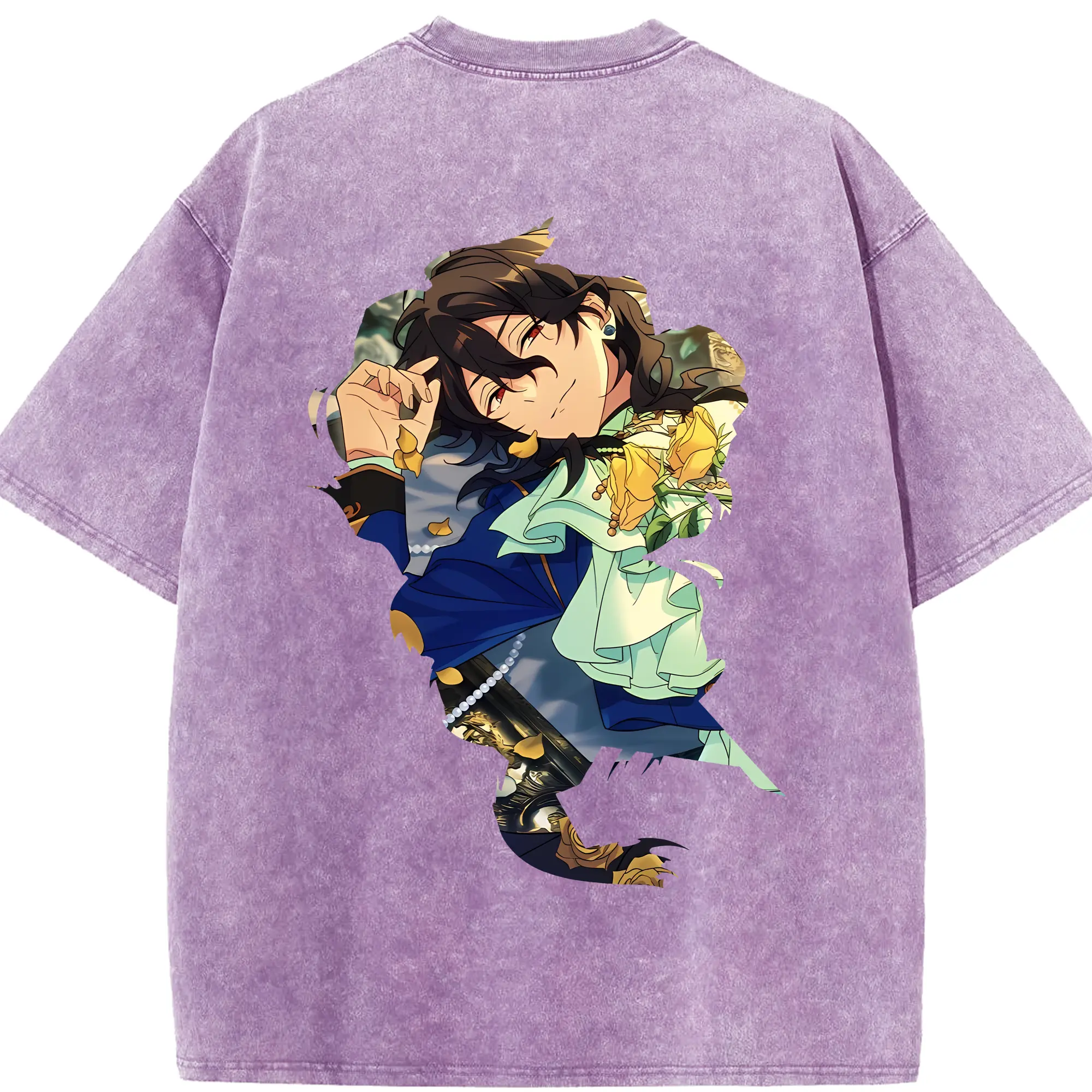 原 神 グッズ 神里綾華 - 綿100% ヴィンテージ風 半袖Tシャツ ・ 背面プリント ・ 柔らか肌触り ・ 通気性 快適 ・ スポーツ カジュアル 外出用