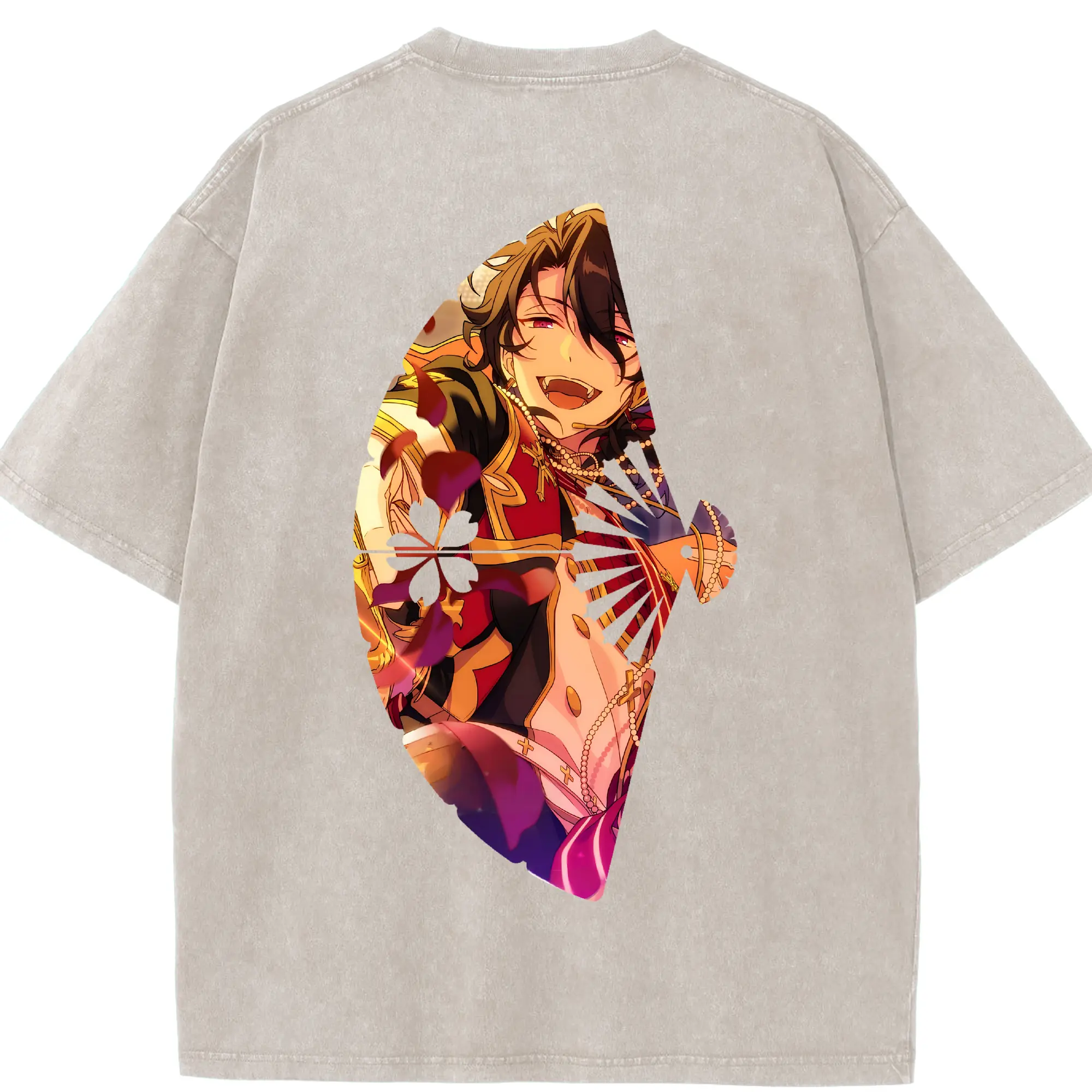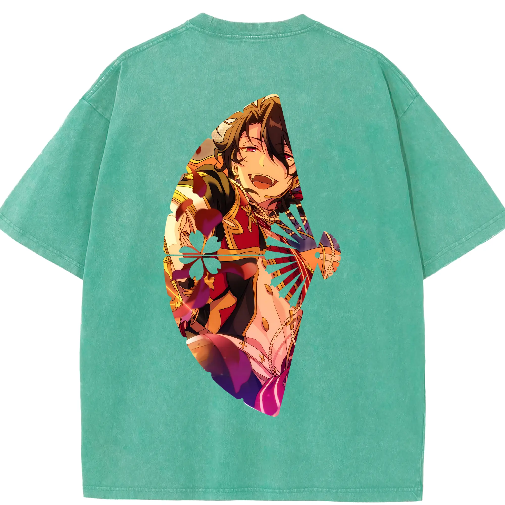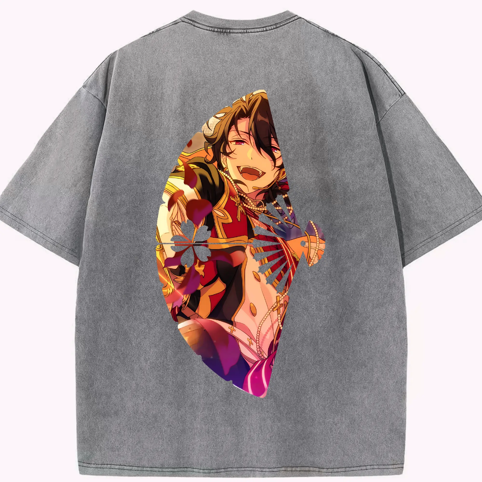 あんさん ぶる グッズ Trickstar 氷鷹北斗 - 綿100% ヴィンテージ風 半袖Tシャツ ・ 背面プリント ・ 柔らか肌触り ・ 通気性 快適 ・ スポーツ カジュアル 外出用