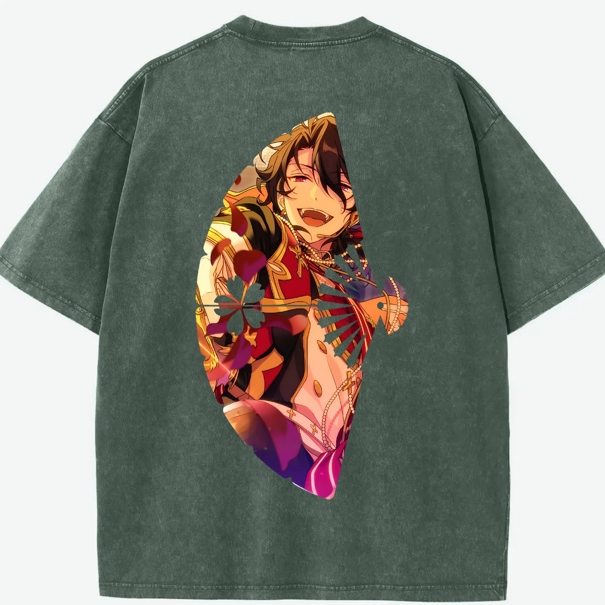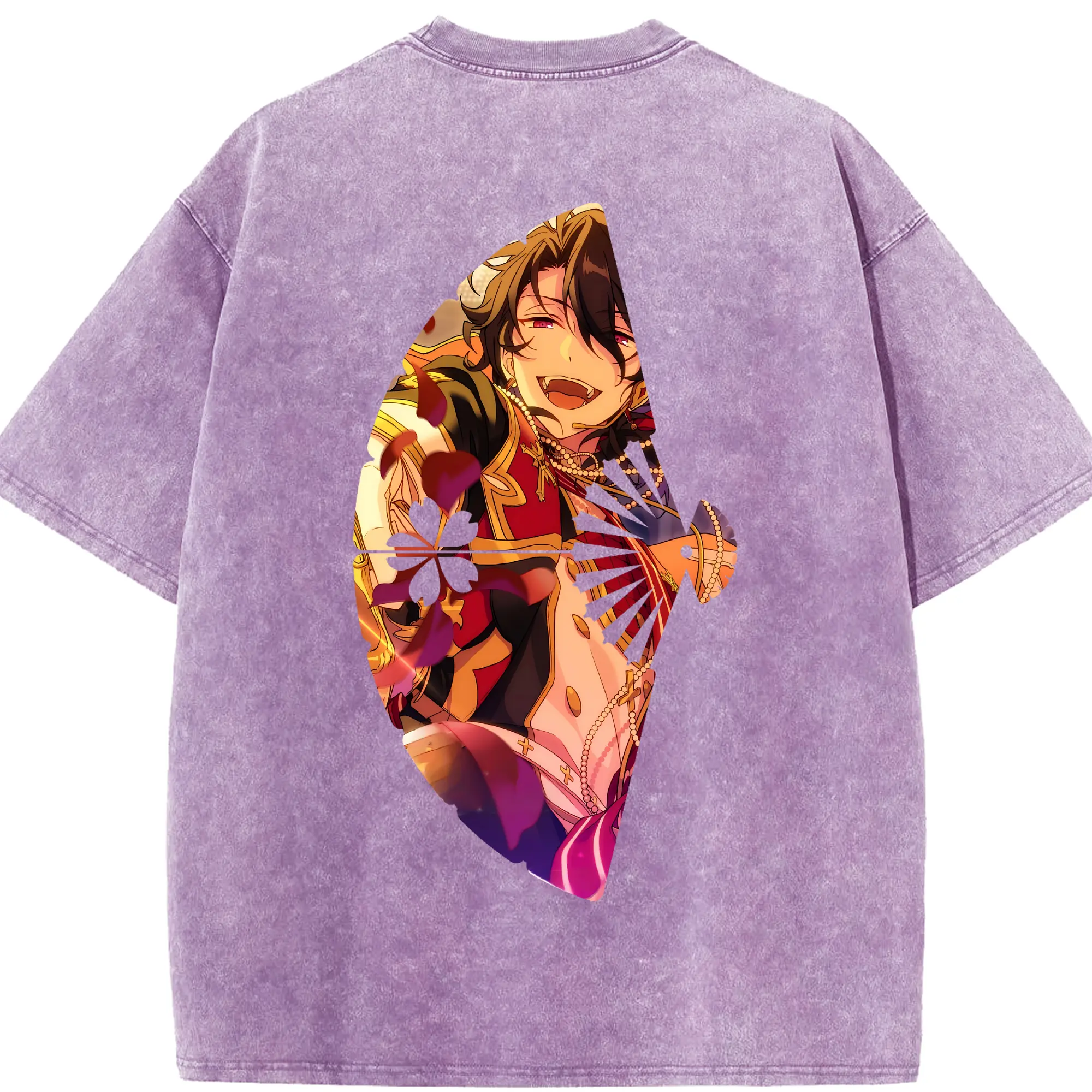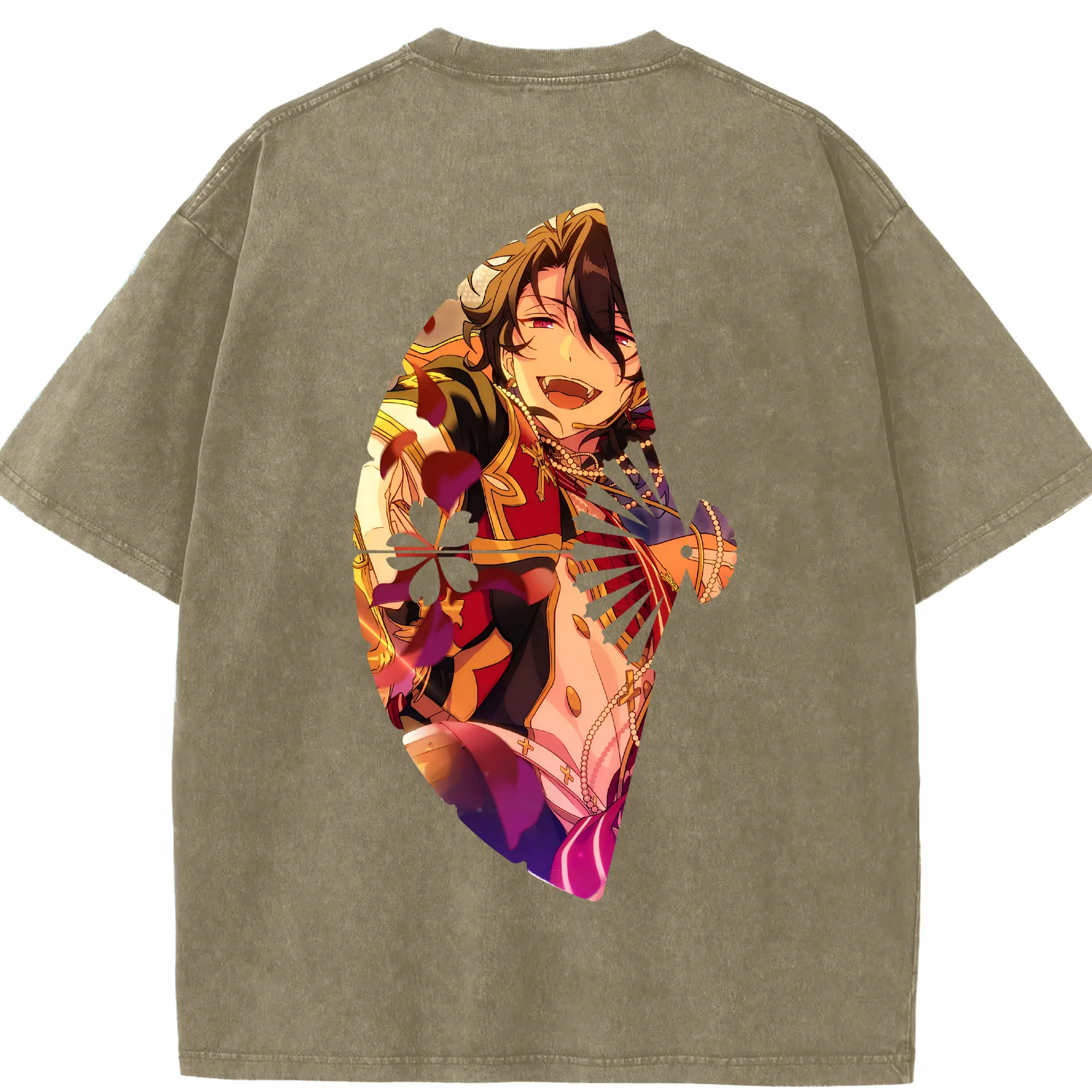 あんさん ぶる グッズ Trickstar 氷鷹北斗 - 綿100% ヴィンテージ風 半袖Tシャツ ・ 背面プリント ・ 柔らか肌触り ・ 通気性 快適 ・ スポーツ カジュアル 外出用