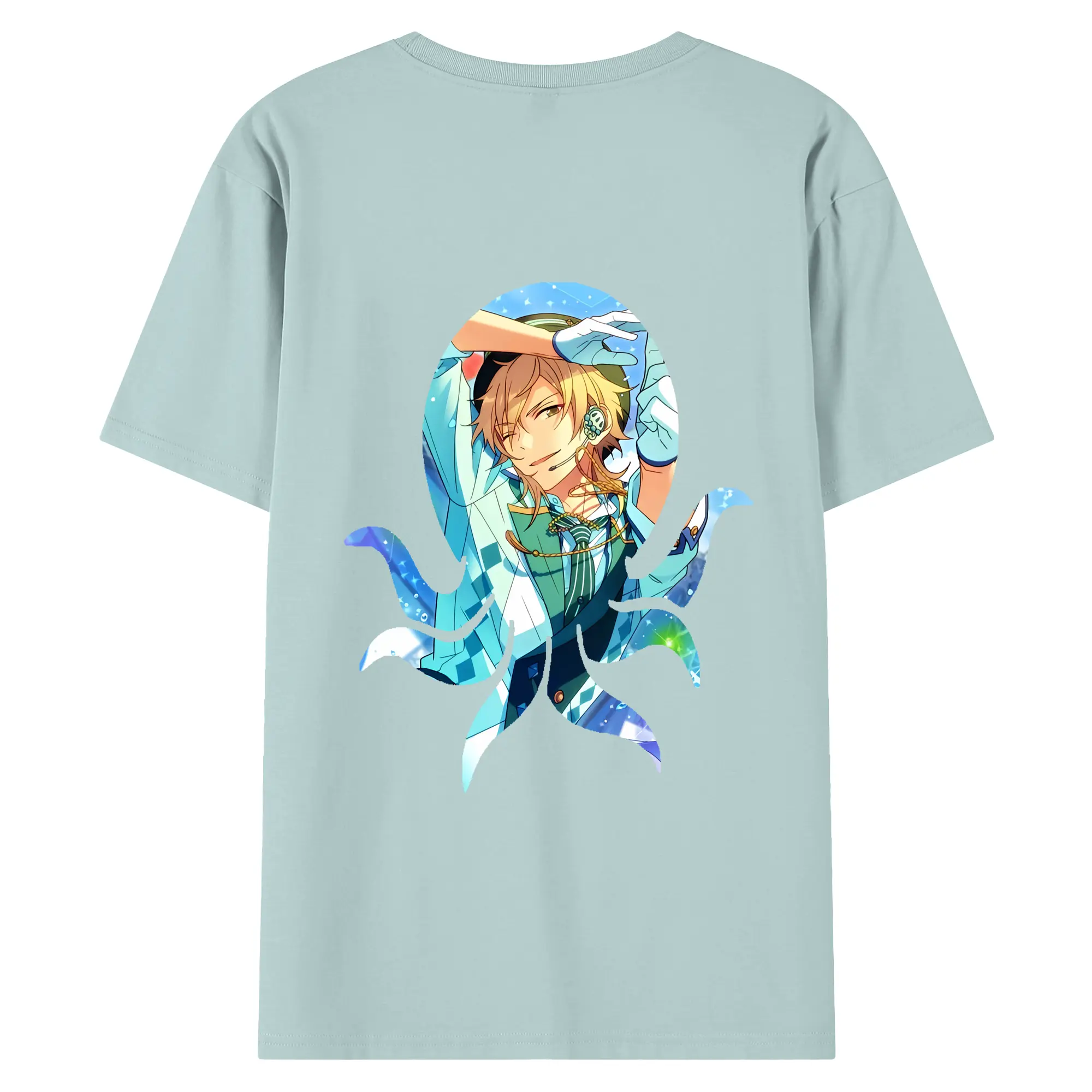 あんさん ぶる グッズ Knights 月永レオ - 綿100% 半袖Tシャツ ・ バックプリント ・ 快適 通気性 ・ 日常使い 散歩 スポーツ用