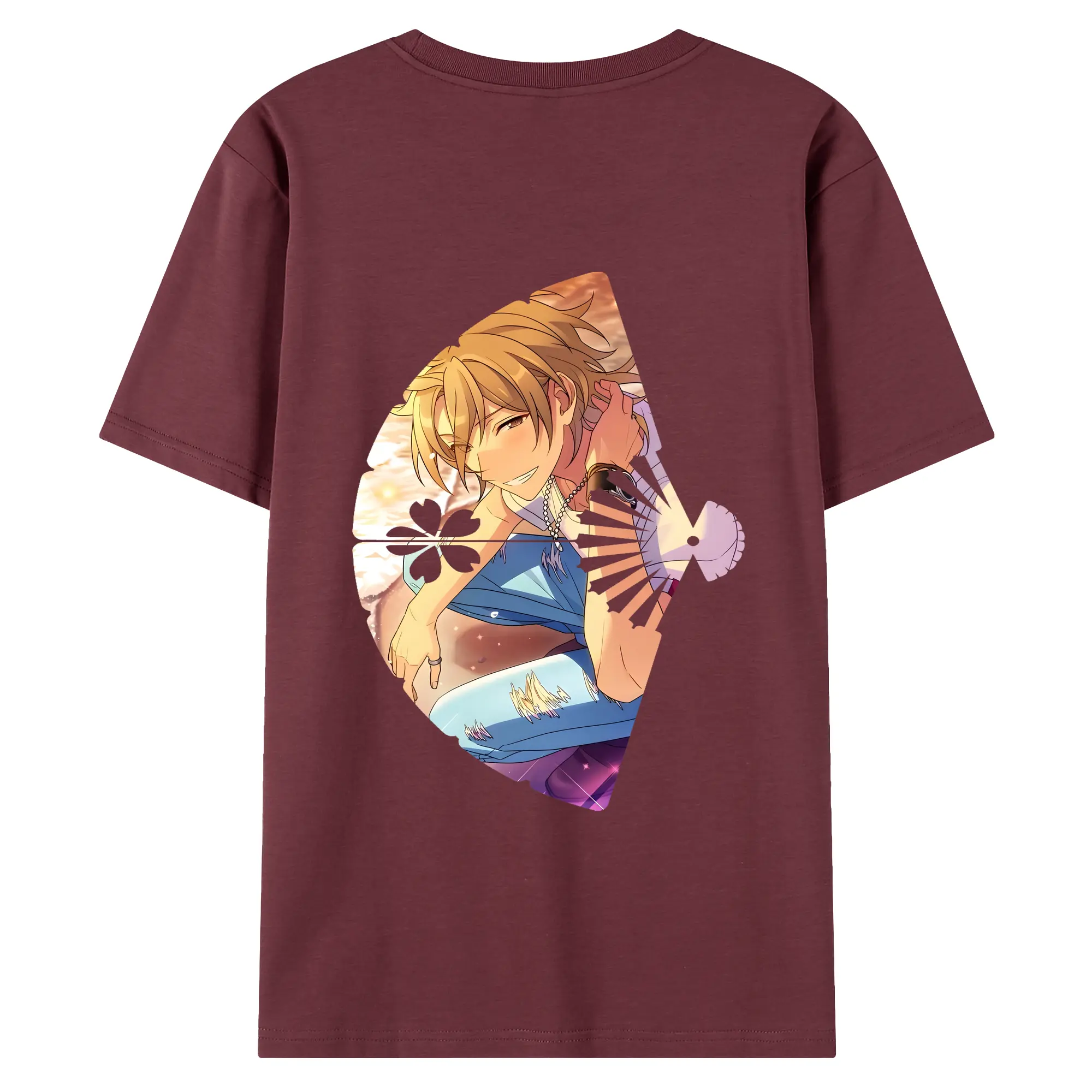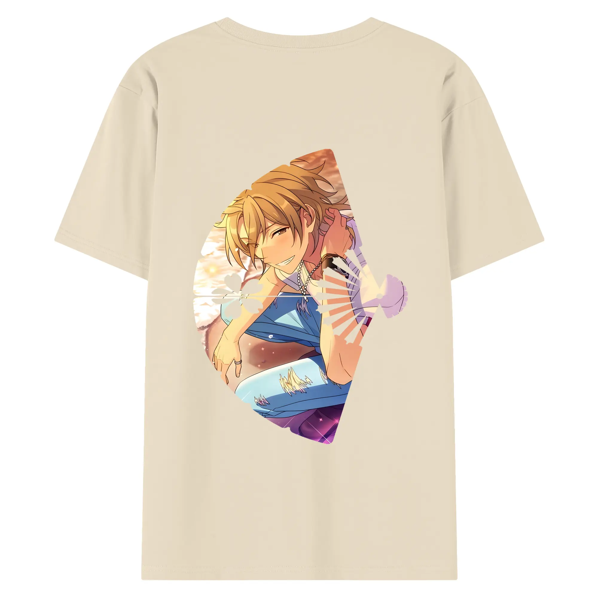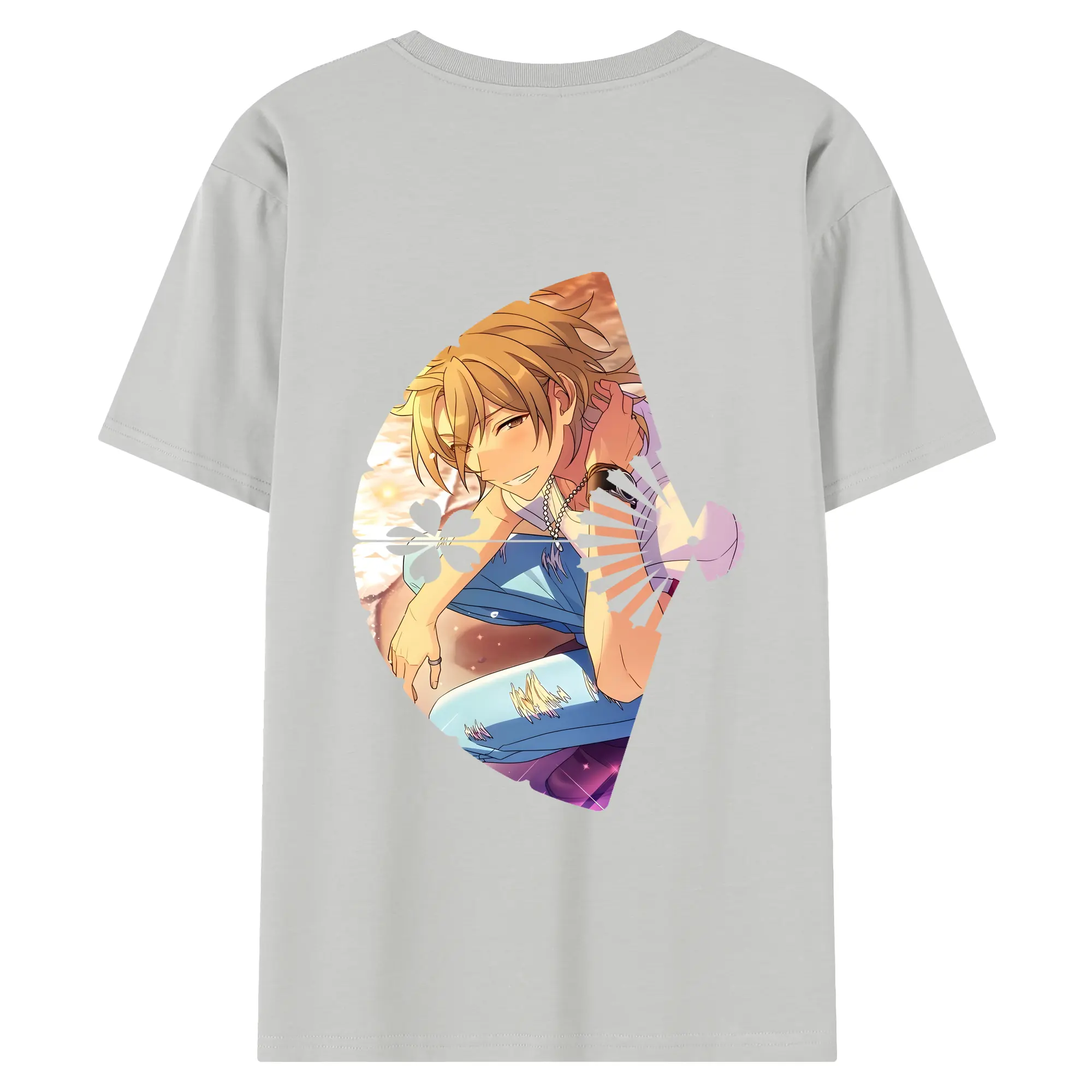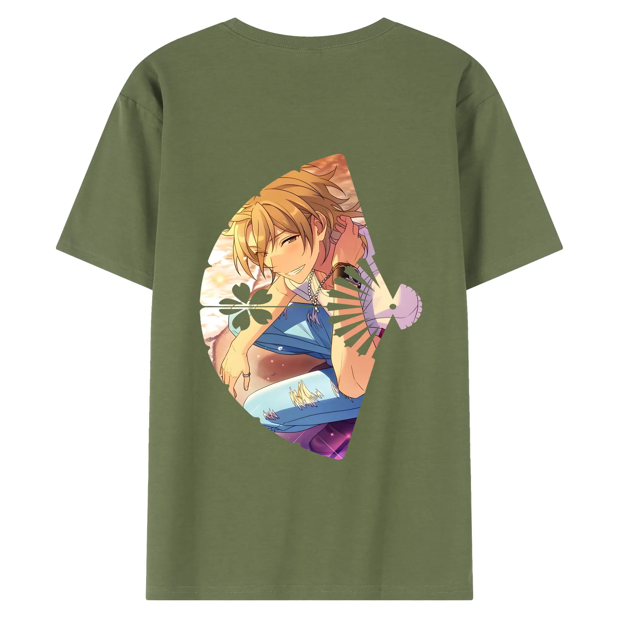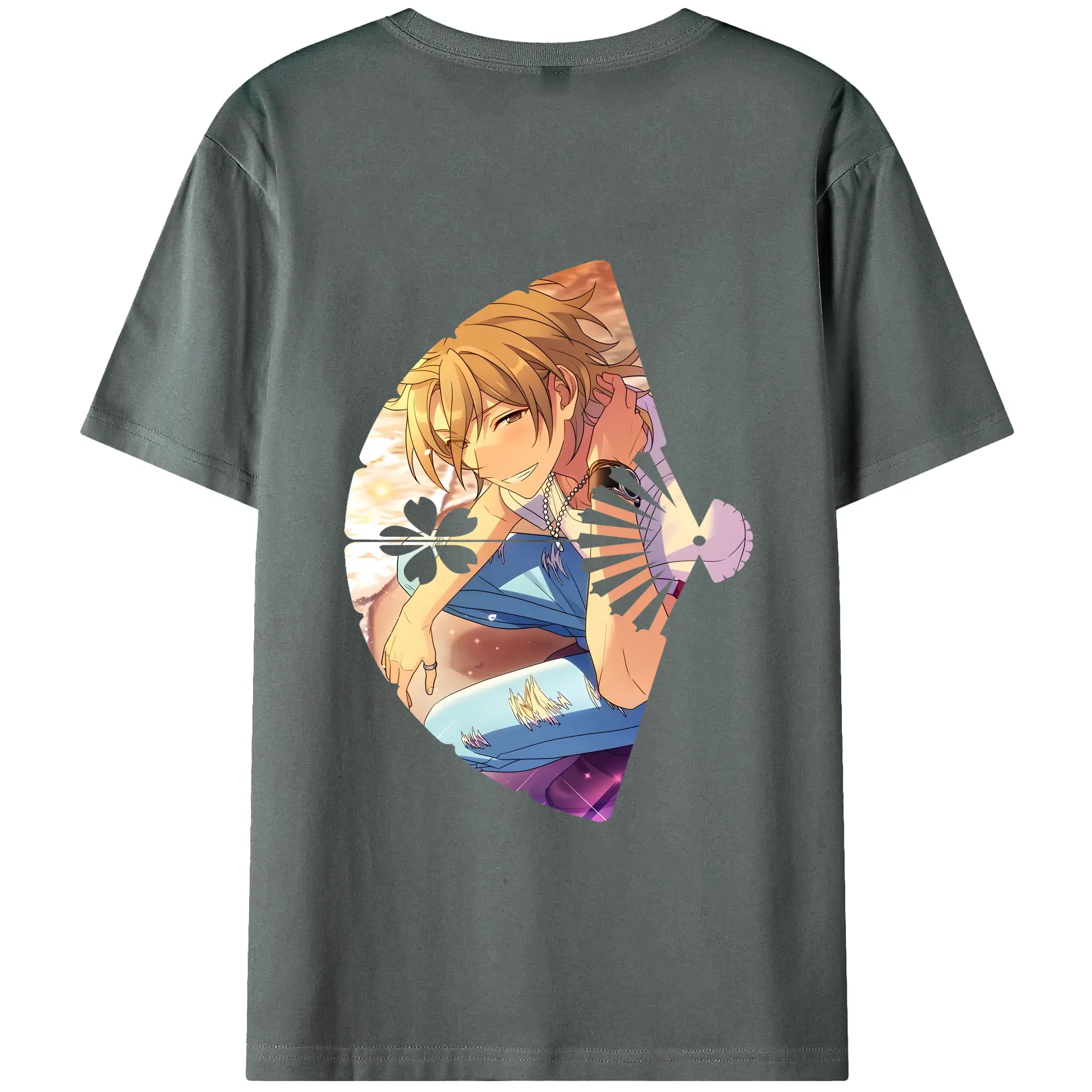あんさん ぶる グッズ UNDEAD 羽風薫 - 綿100% ヴィンテージ風 半袖Tシャツ ・ 背面プリント ・ 柔らか肌触り ・ 通気性 快適 ・ スポーツ カジュアル 外出用