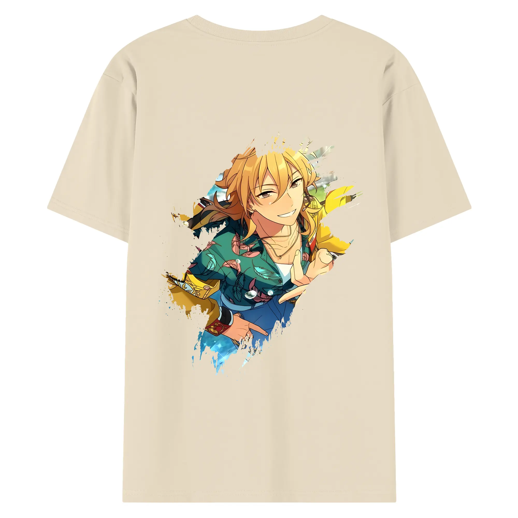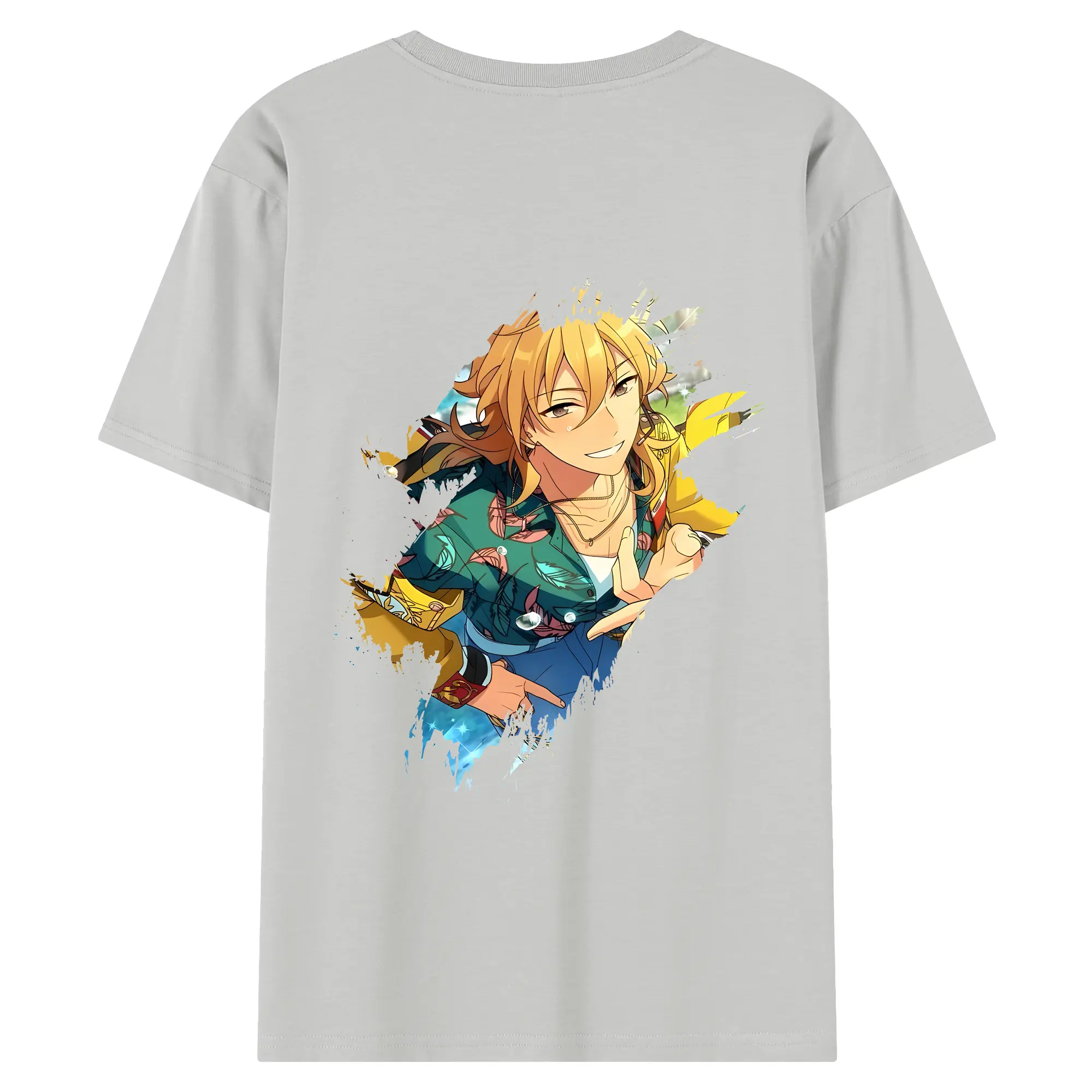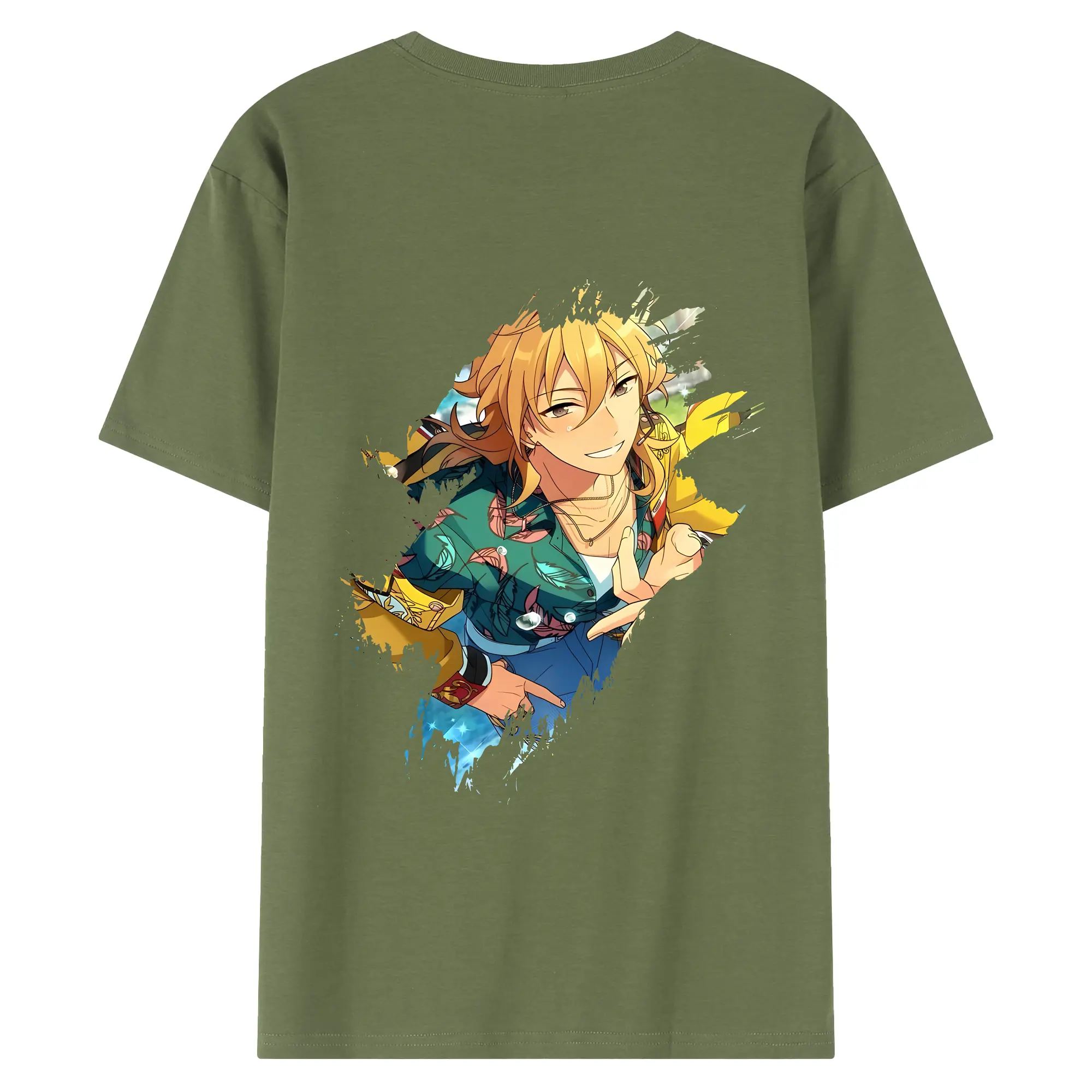 あんさん ぶる グッズ UNDEAD 羽風薫 - 綿100% ヴィンテージ風 半袖Tシャツ ・ 背面プリント ・ 柔らか肌触り ・ 通気性 快適 ・ スポーツ カジュアル 外出用