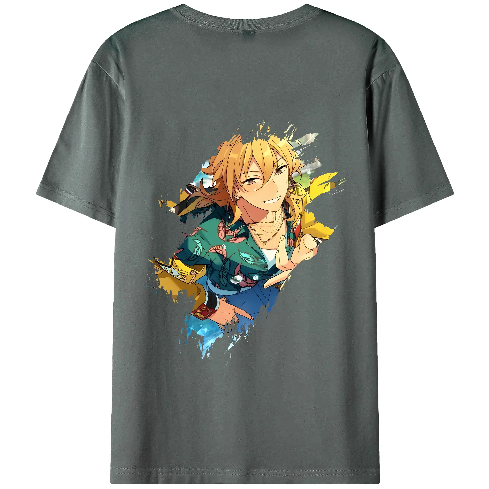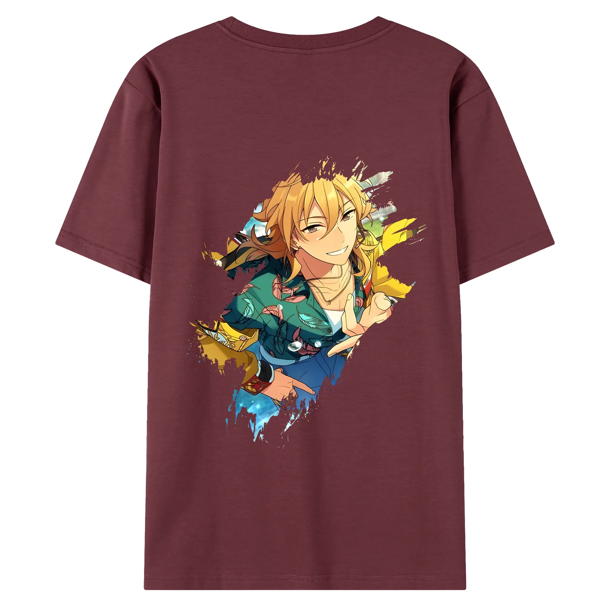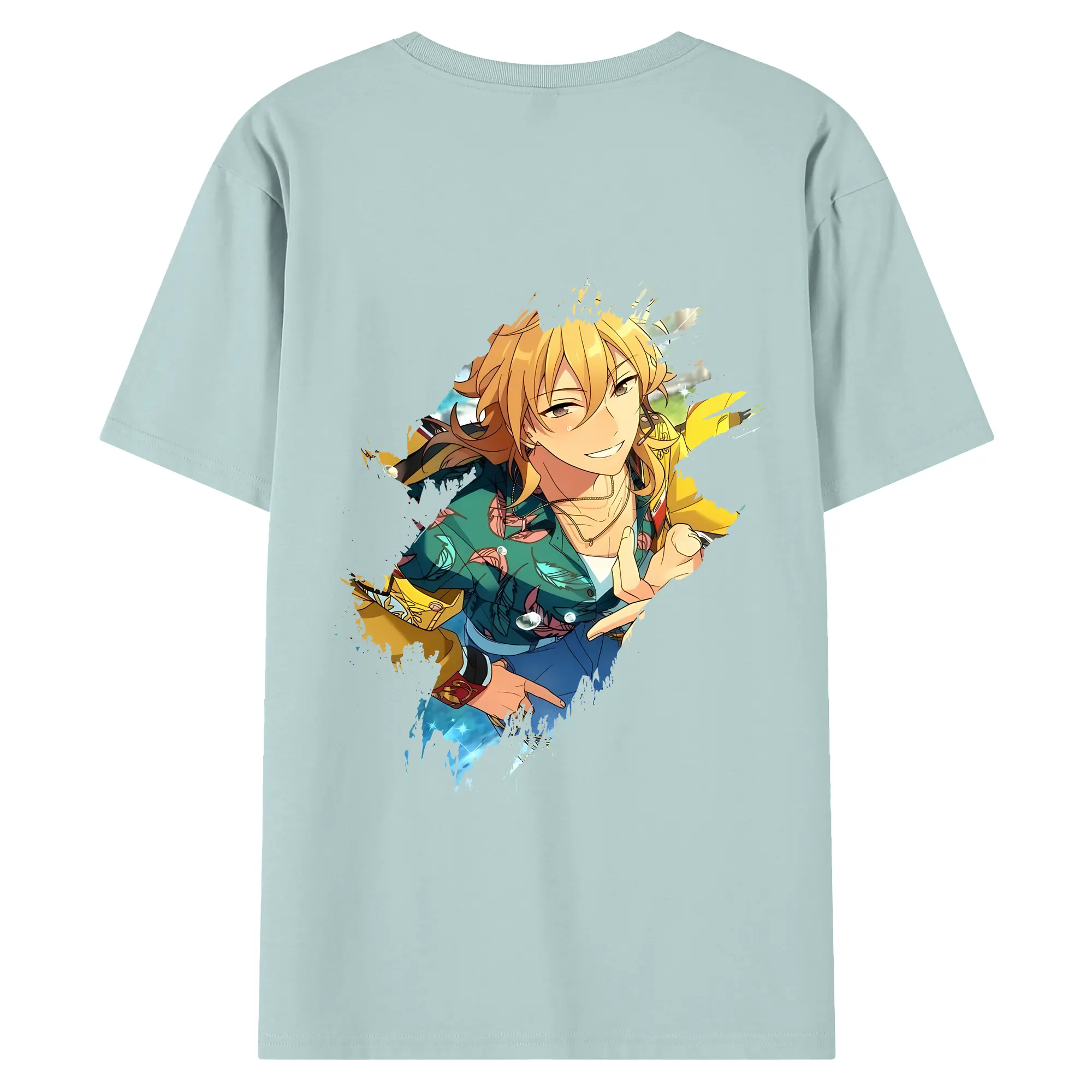 あんさん ぶる グッズ UNDEAD 羽風薫 - 綿100% ヴィンテージ風 半袖Tシャツ ・ 背面プリント ・ 柔らか肌触り ・ 通気性 快適 ・ スポーツ カジュアル 外出用