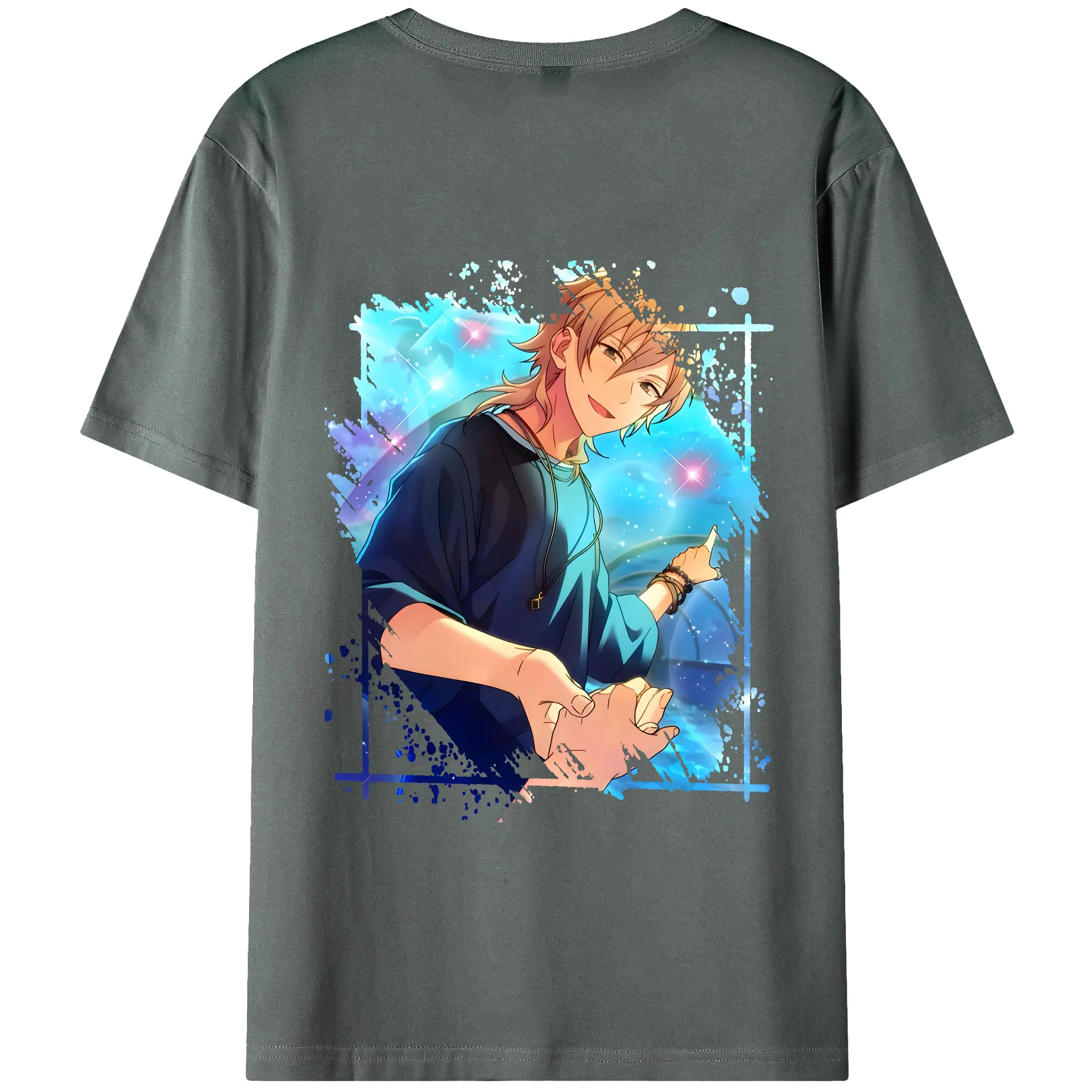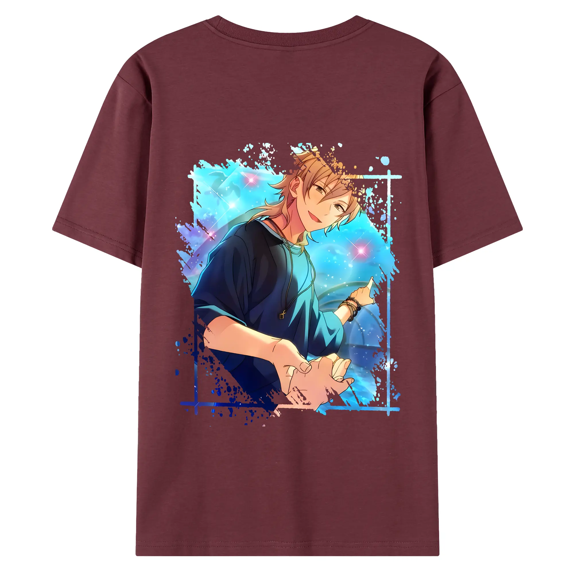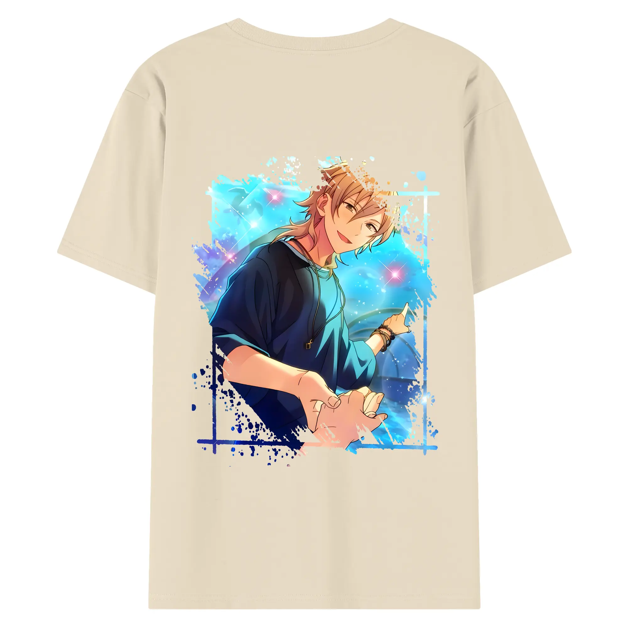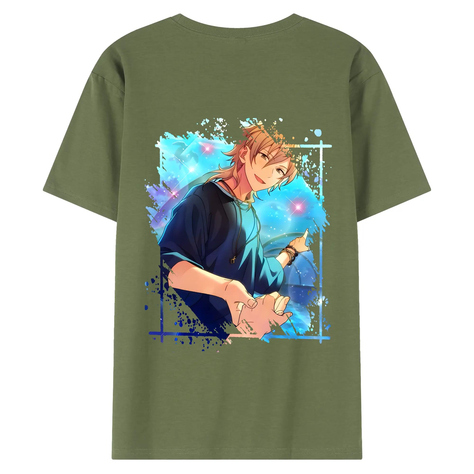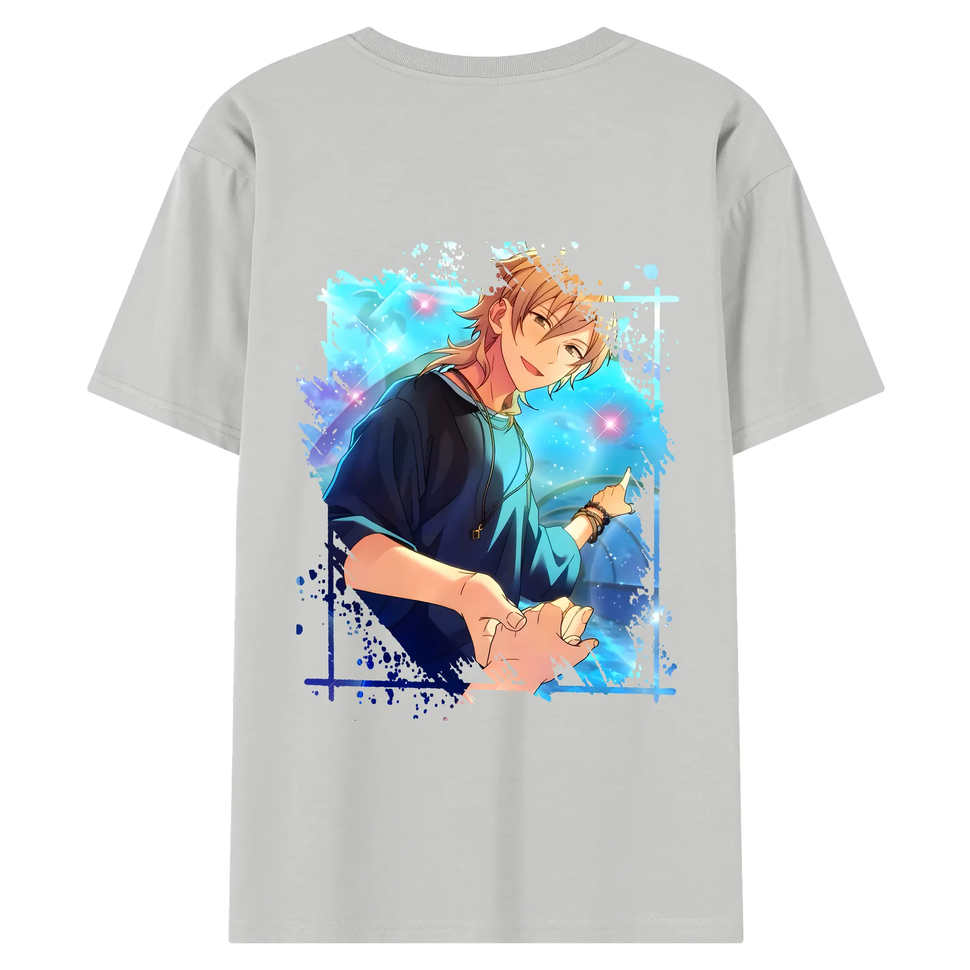 あんさん ぶる グッズ UNDEAD 羽風薫 - 綿100% ヴィンテージ風 半袖Tシャツ ・ 背面プリント ・ 柔らか肌触り ・ 通気性 快適 ・ スポーツ カジュアル 外出用