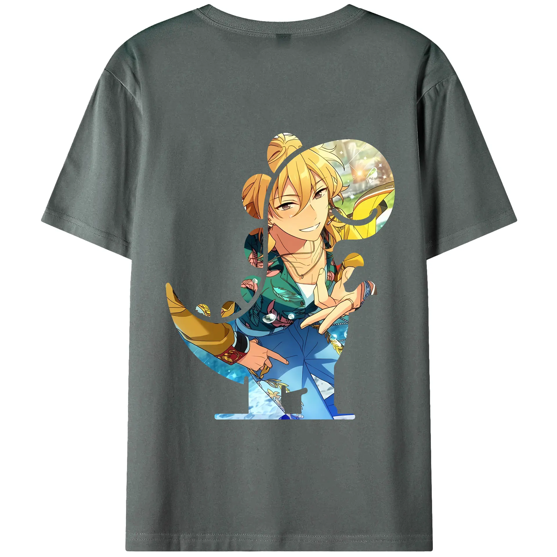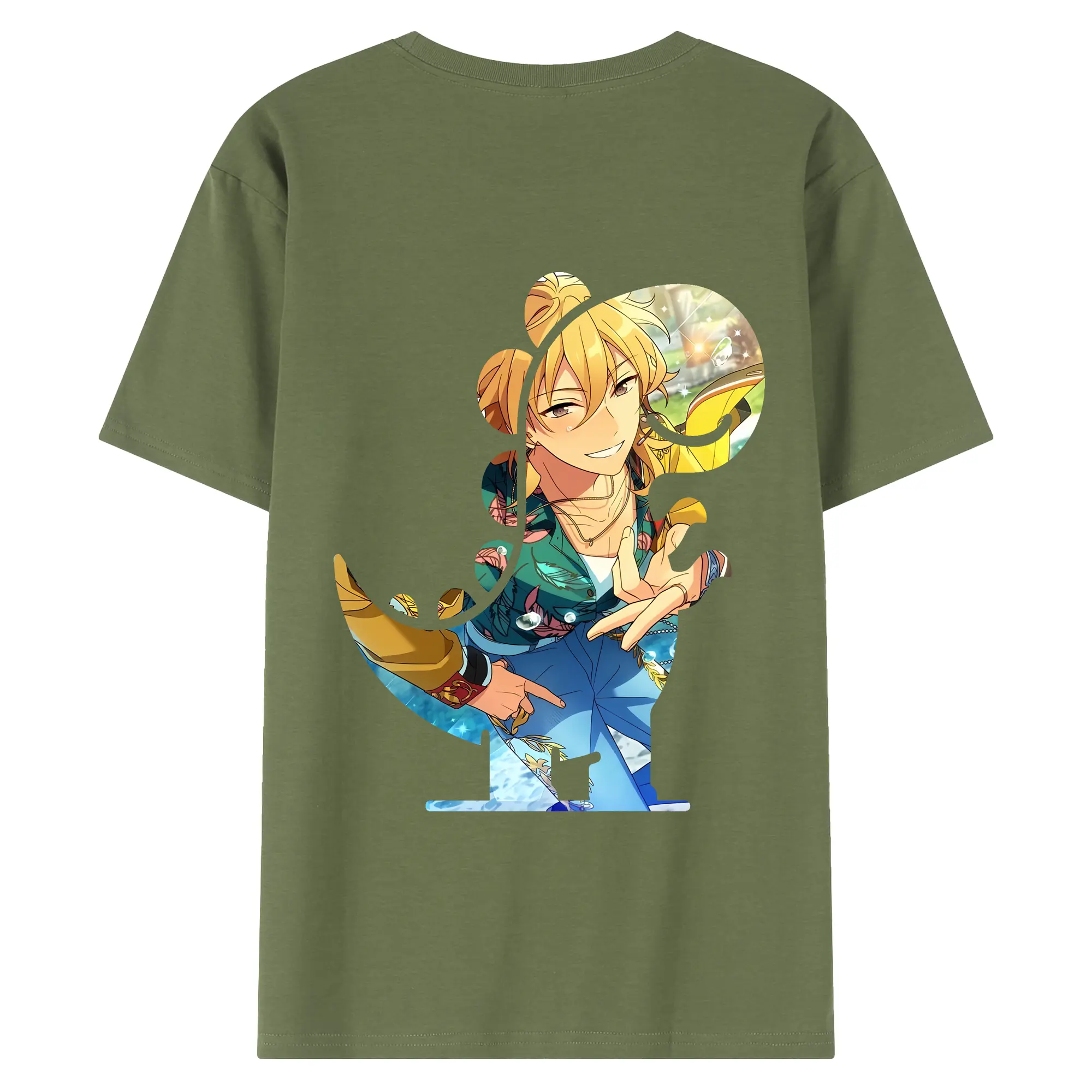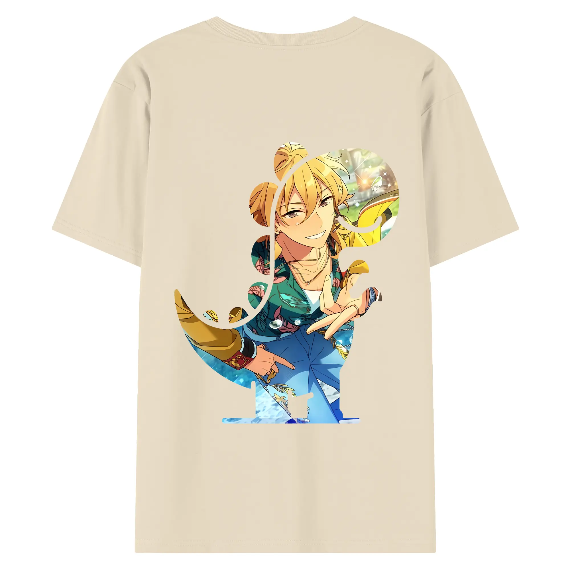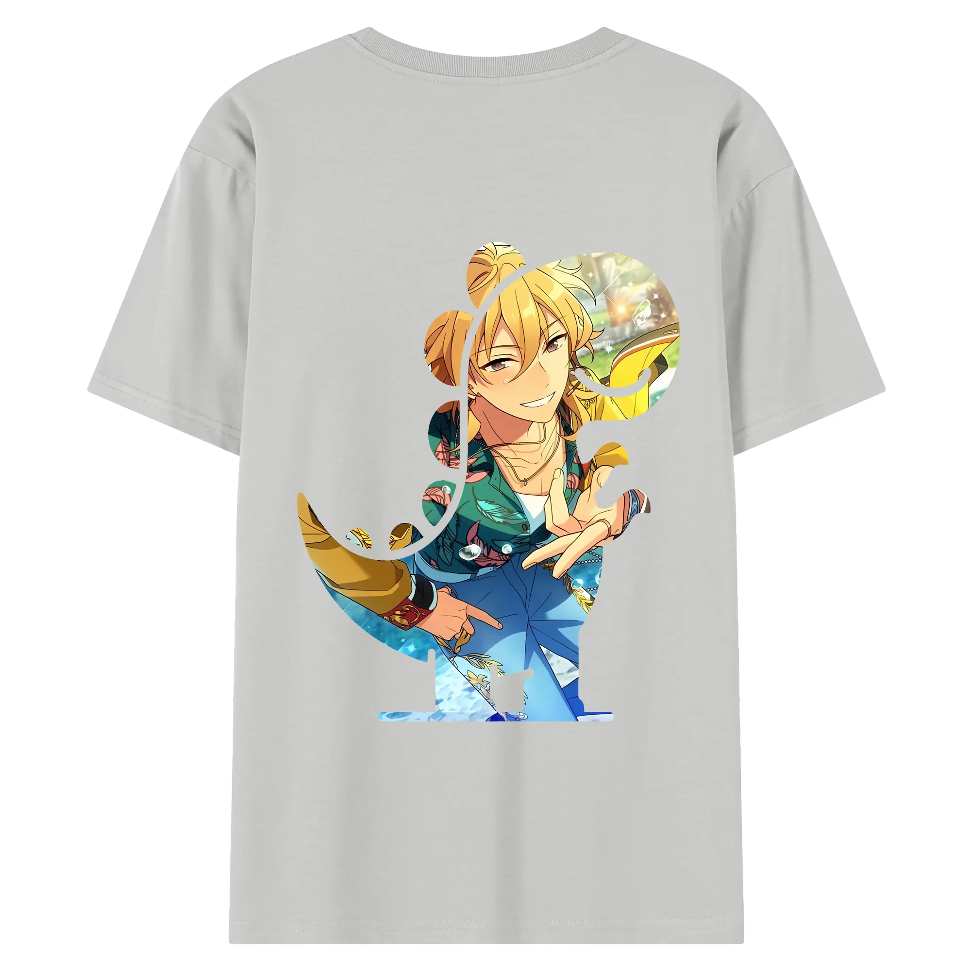 あんさん ぶる グッズ UNDEAD 羽風薫 - 綿100% ヴィンテージ風 半袖Tシャツ ・ 背面プリント ・ 柔らか肌触り ・ 通気性 快適 ・ スポーツ カジュアル 外出用