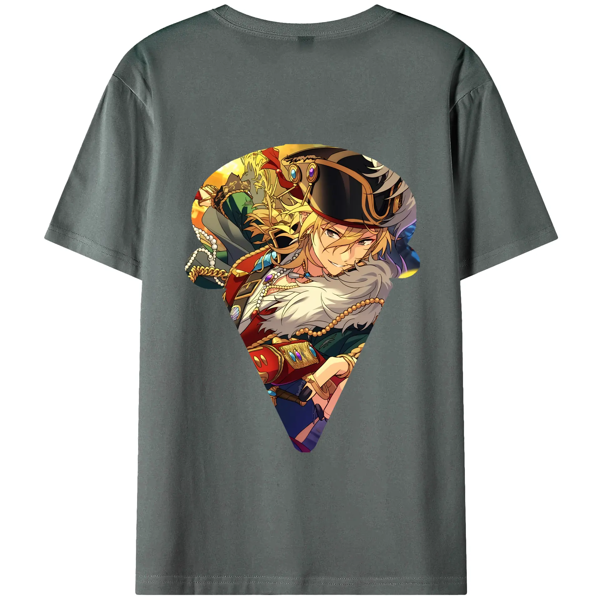 原 神 グッズ ディルック - 綿100% 半袖Tシャツ ・ バックプリント ・ 快適 通気性 ・ 日常使い 散歩 スポーツ用