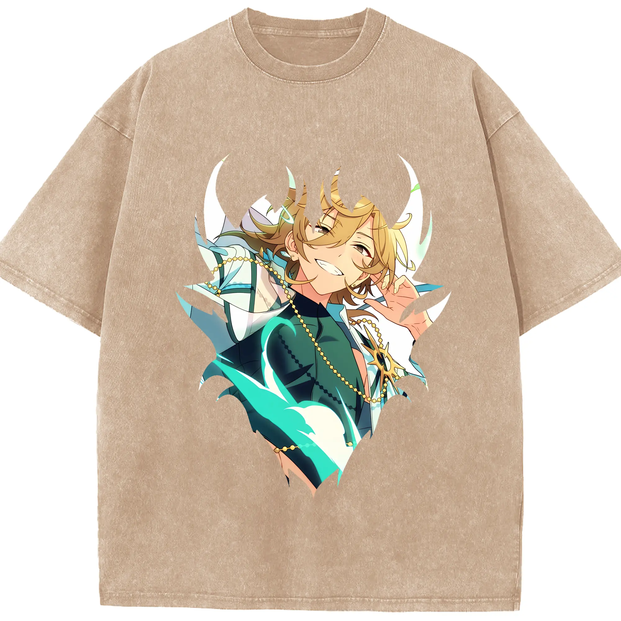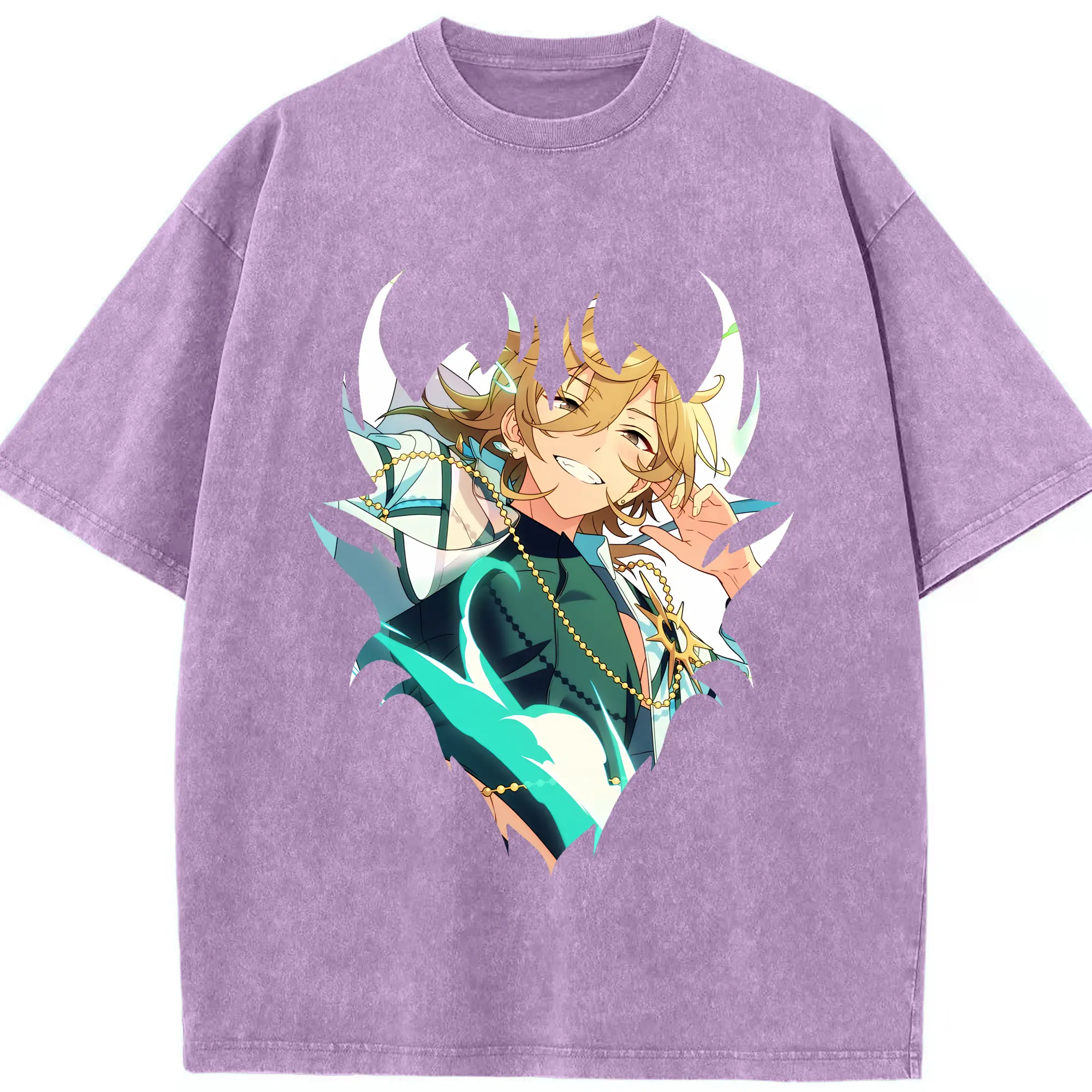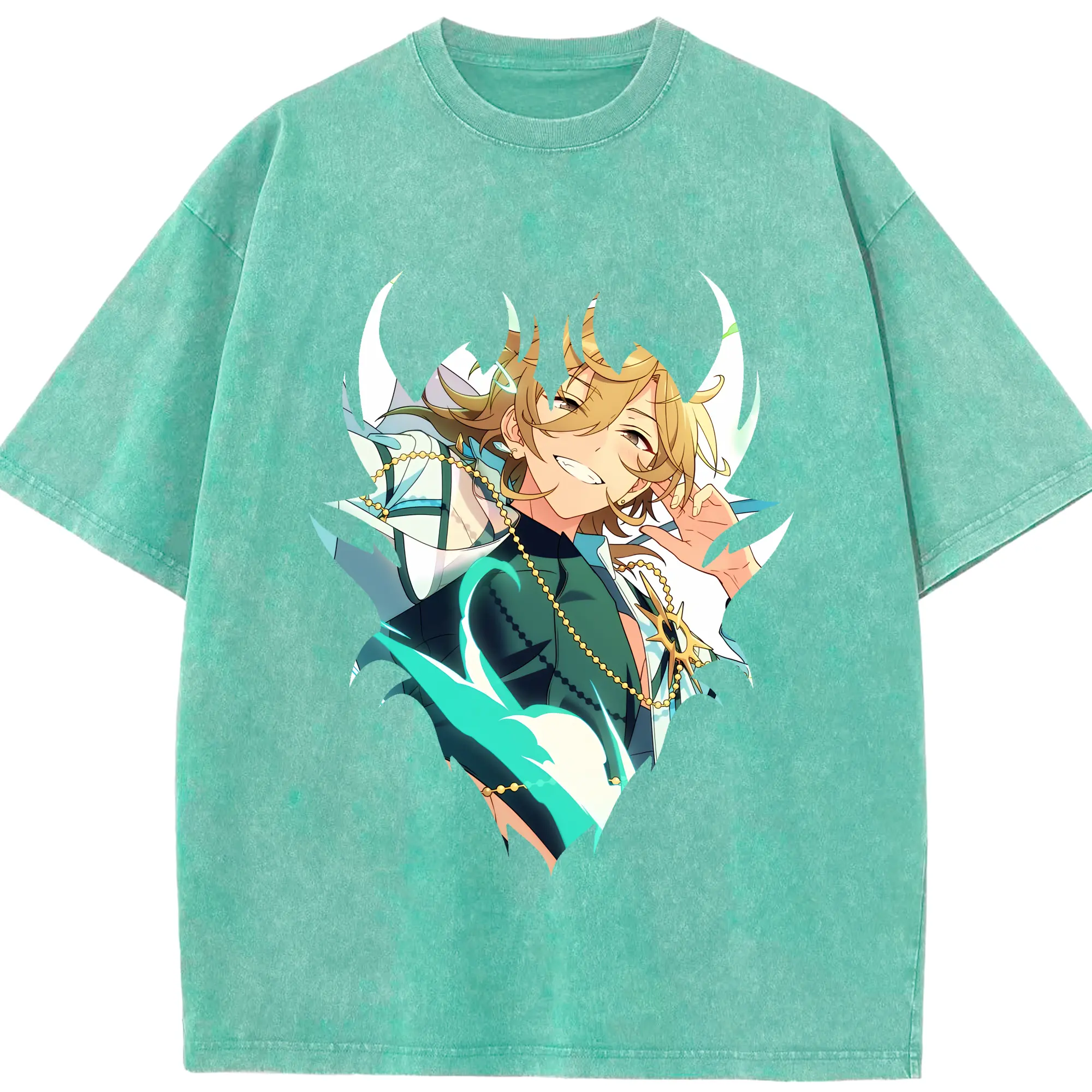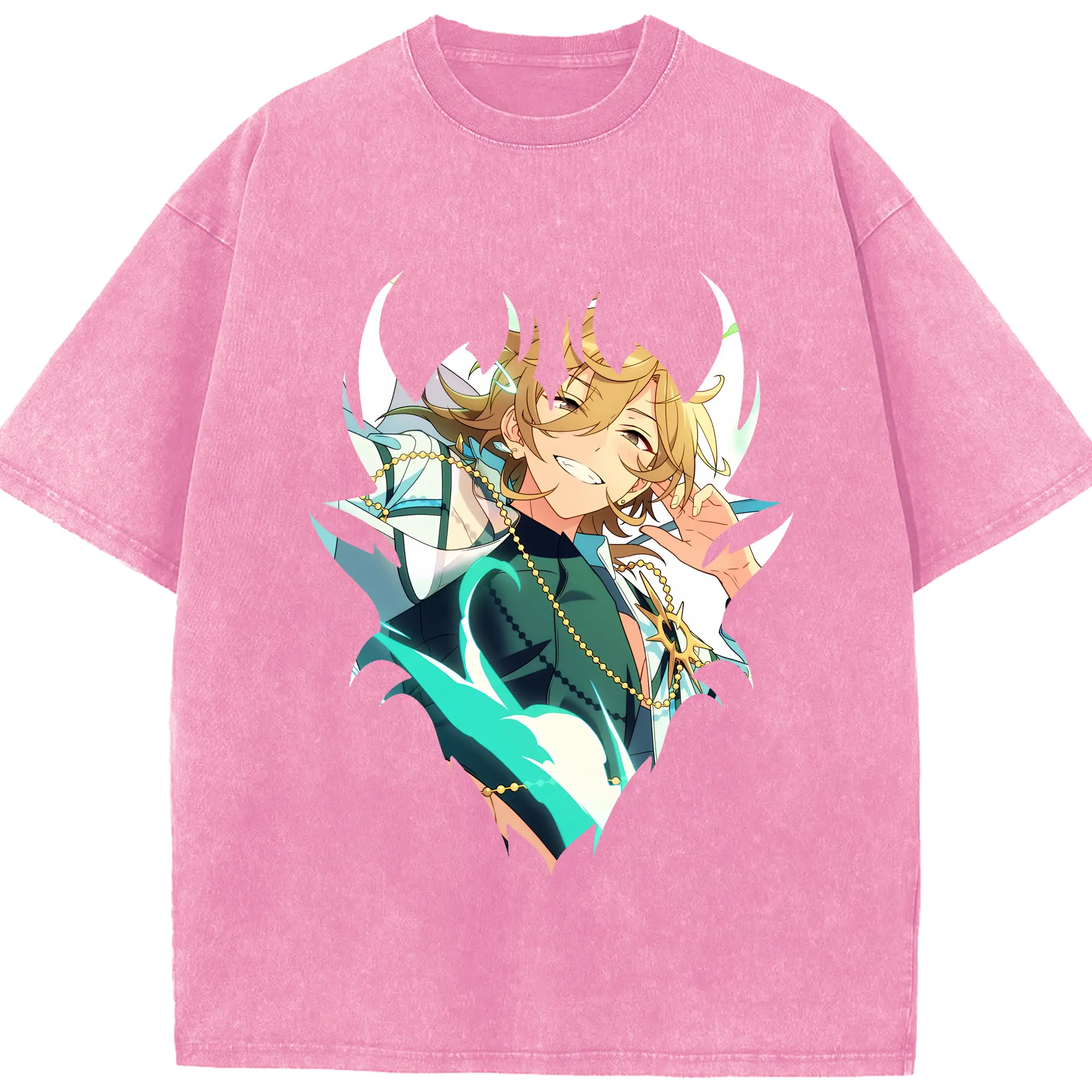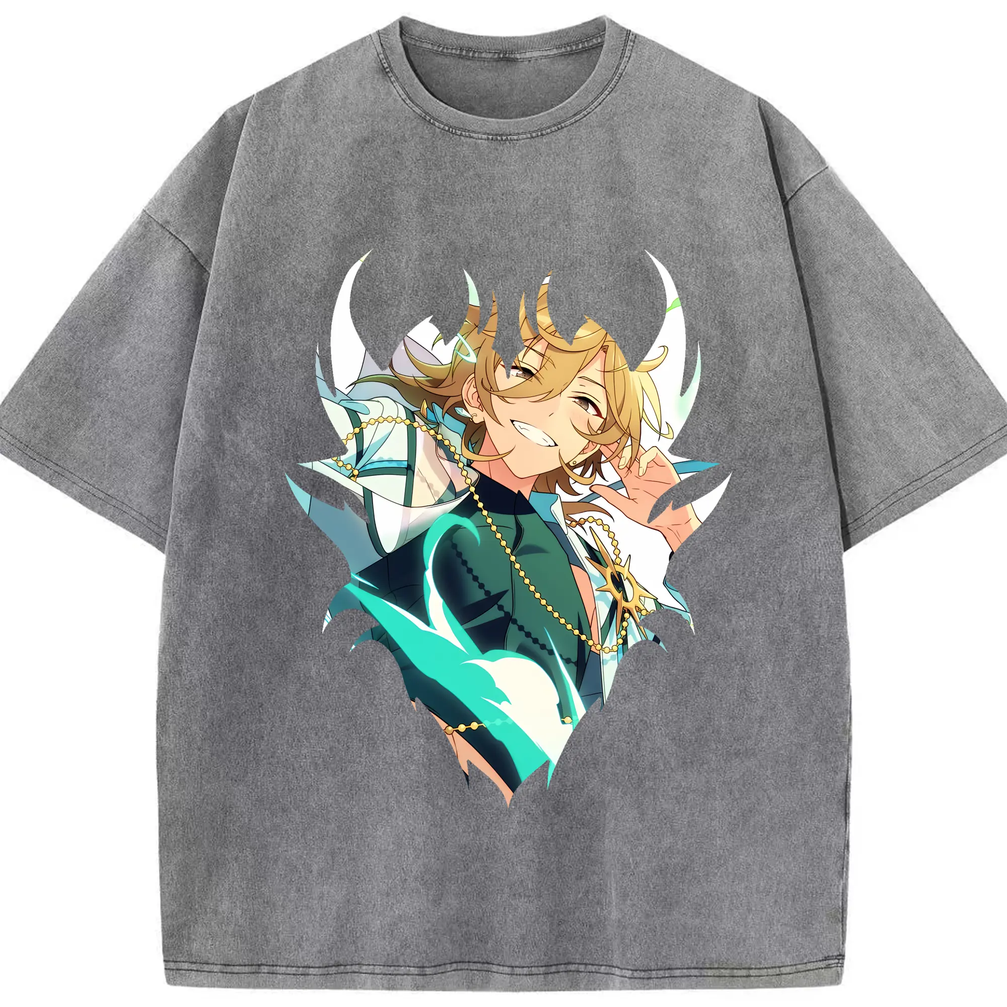 あんさん ぶる グッズ UNDEAD 羽風薫 - 綿100% ヴィンテージ風 半袖Tシャツ ・ 背面プリント ・ 柔らか肌触り ・ 通気性 快適 ・ スポーツ カジュアル 外出用