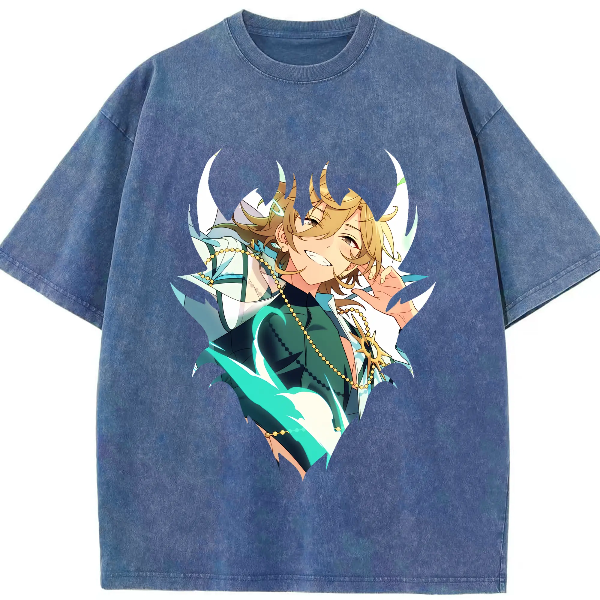 あんさん ぶる グッズ ALKALOID 天城一彩 - 綿100% ヴィンテージ風 半袖Tシャツ ・ フロントプリント ・ 柔らか肌触り ・ 通気性 快適 ・ スポーツ カジュアル 外出用