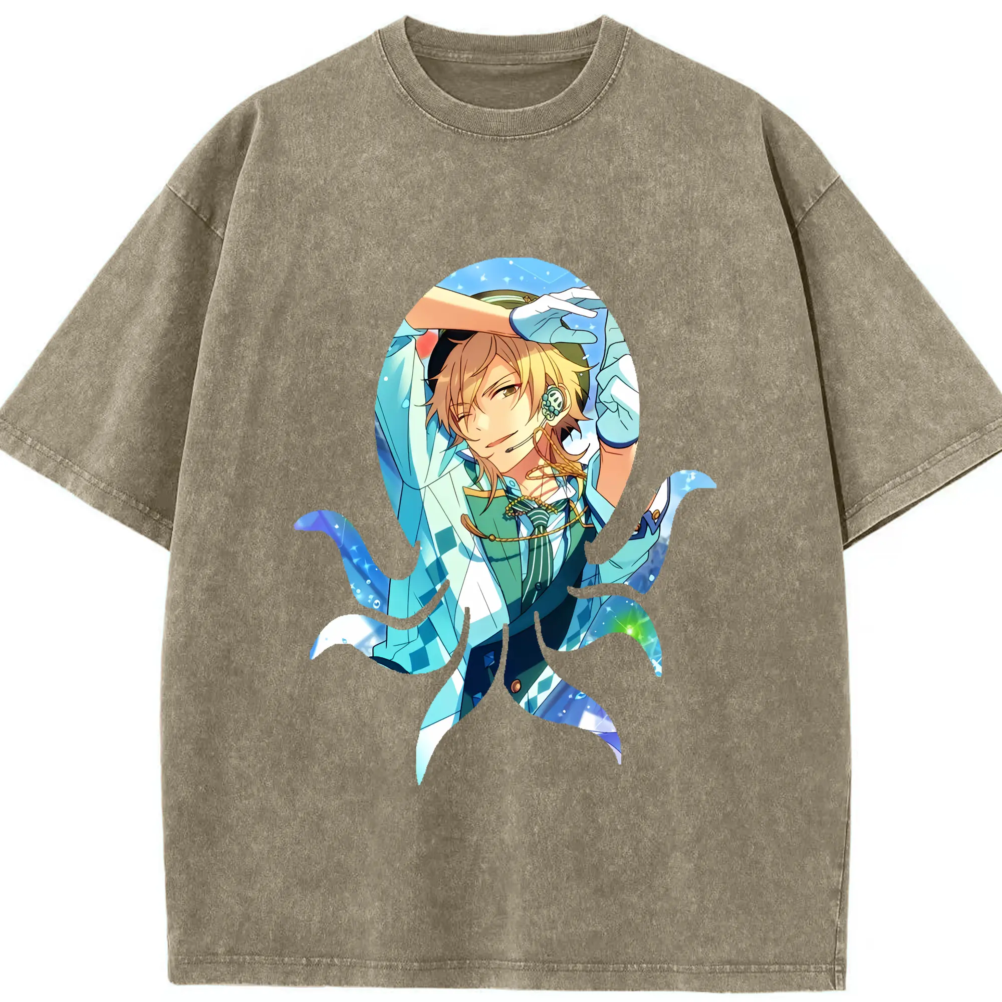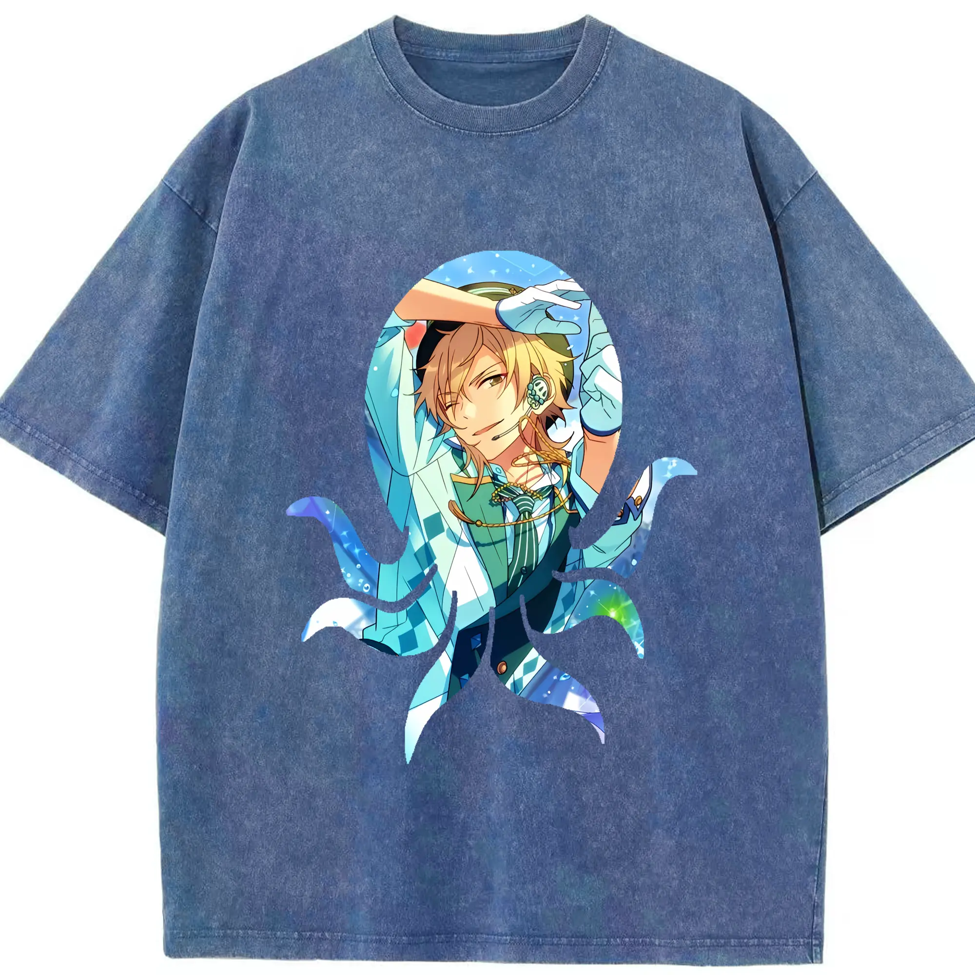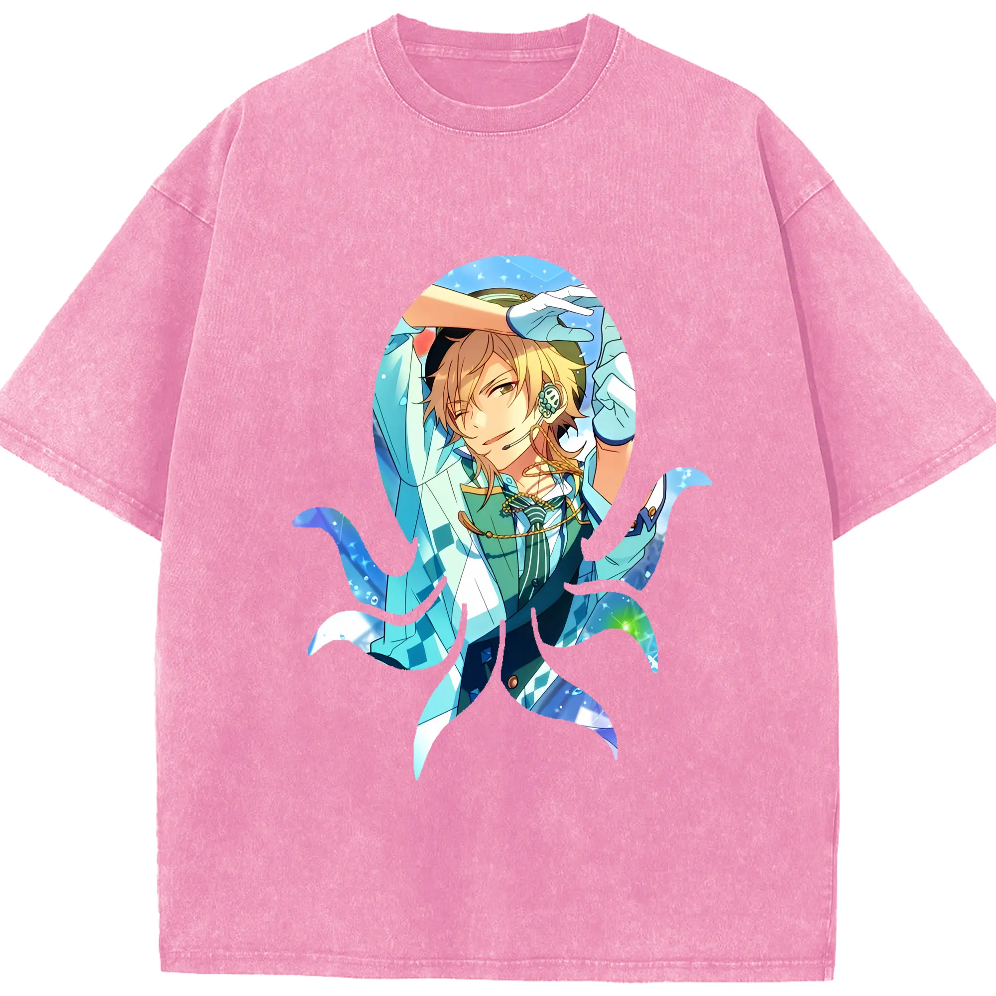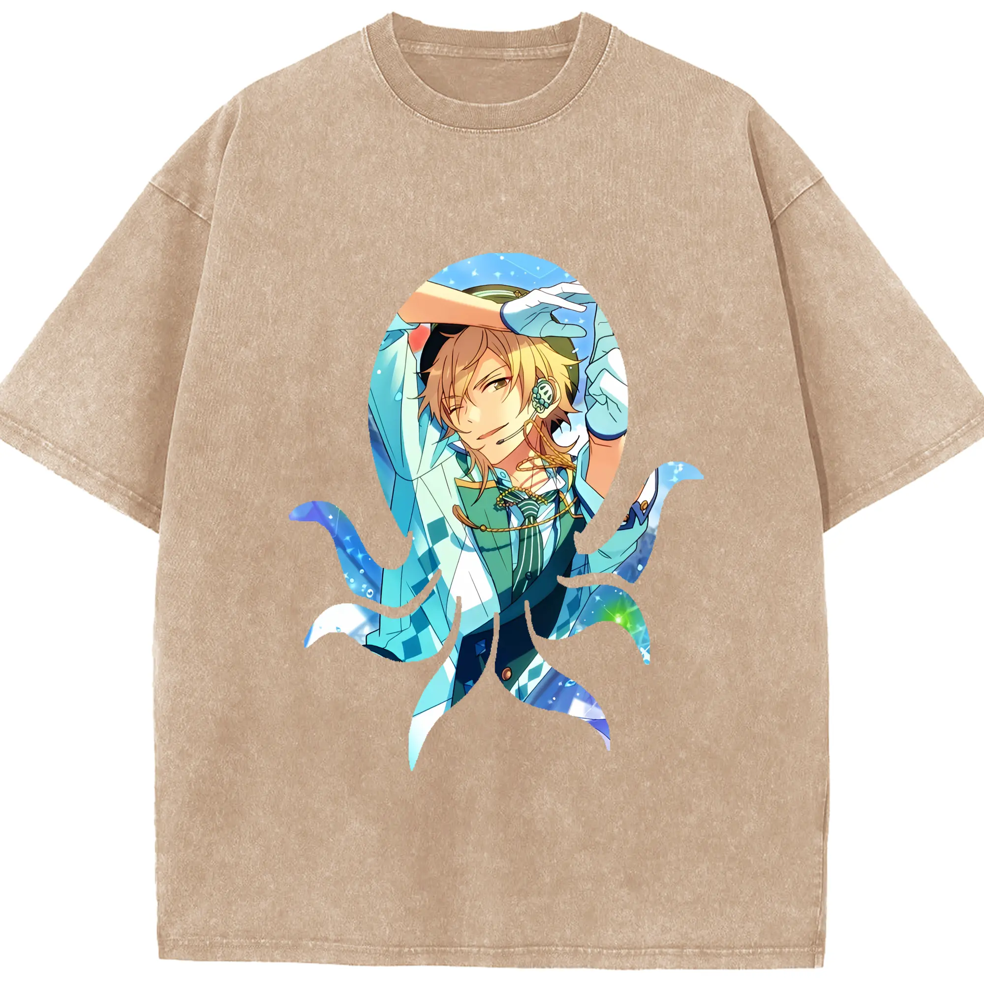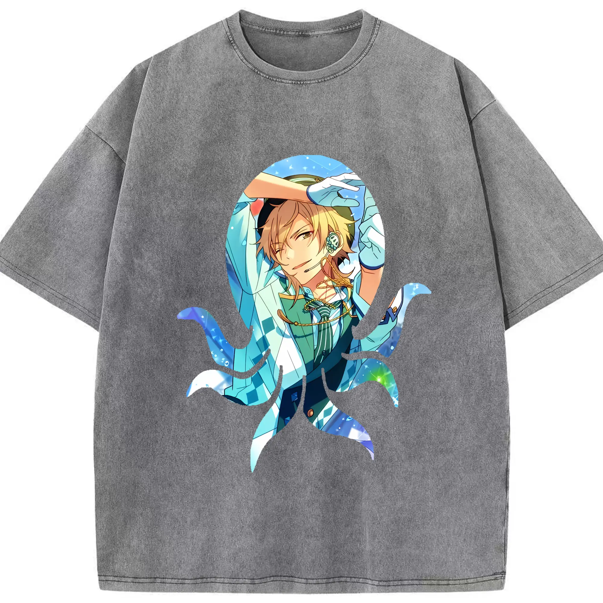 あんさん ぶる グッズ UNDEAD 羽風薫 - 綿100% ヴィンテージ風 半袖Tシャツ ・ 背面プリント ・ 柔らか肌触り ・ 通気性 快適 ・ スポーツ カジュアル 外出用