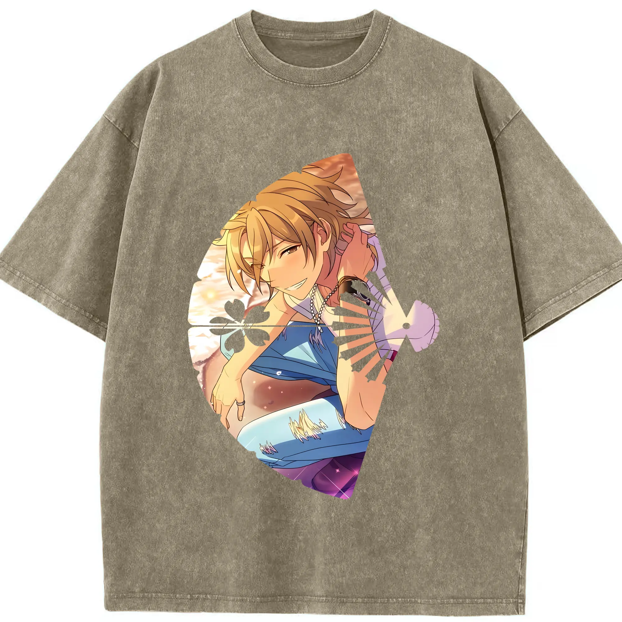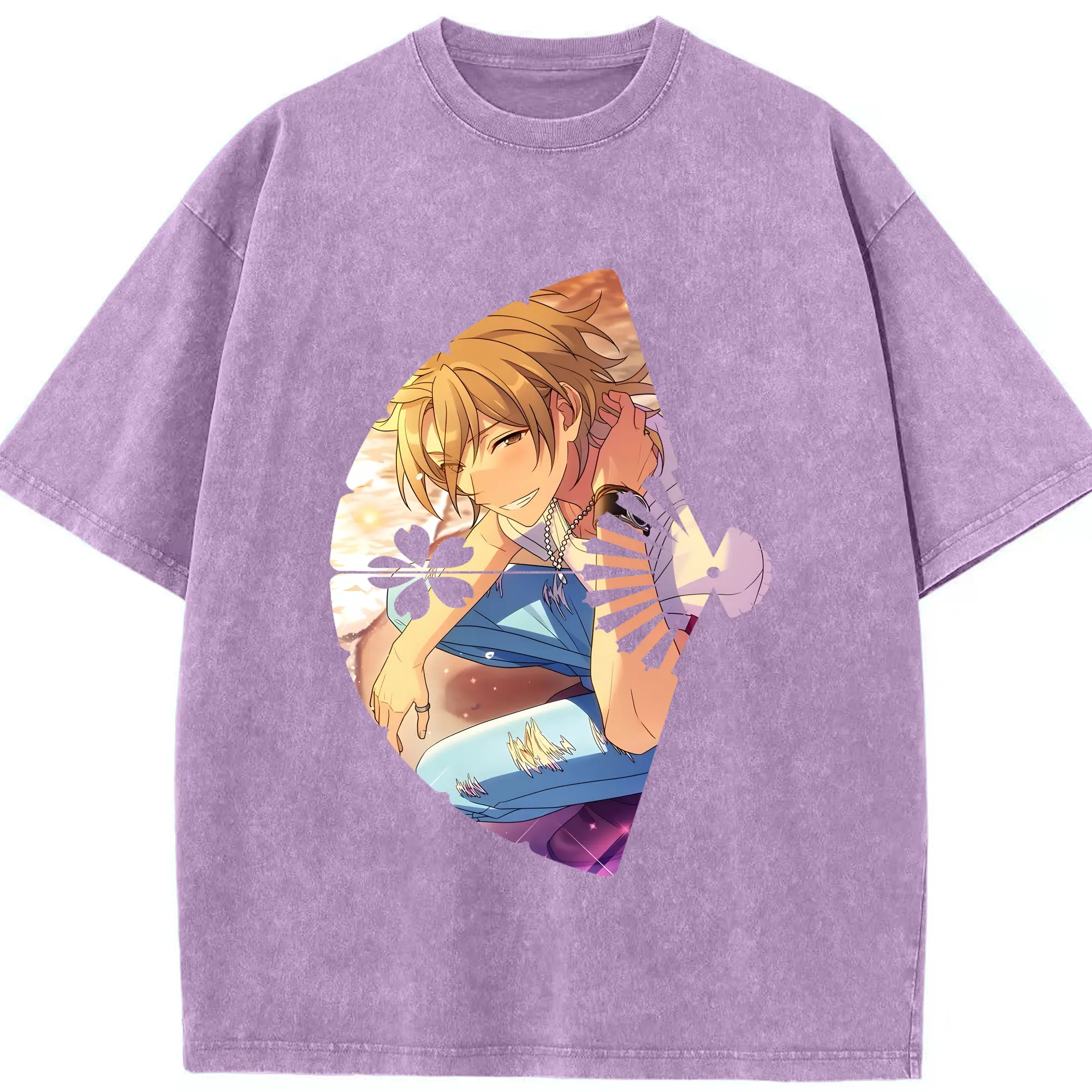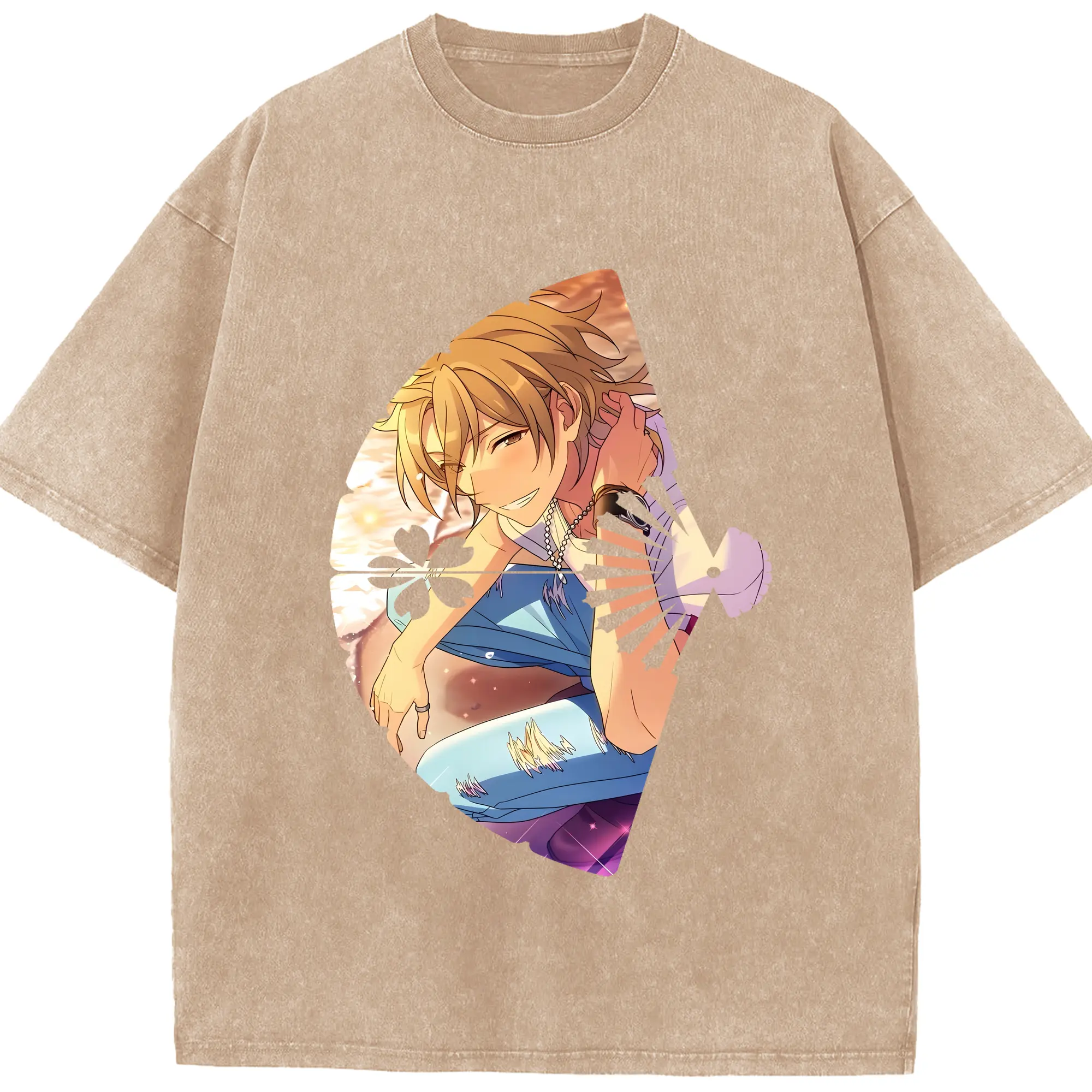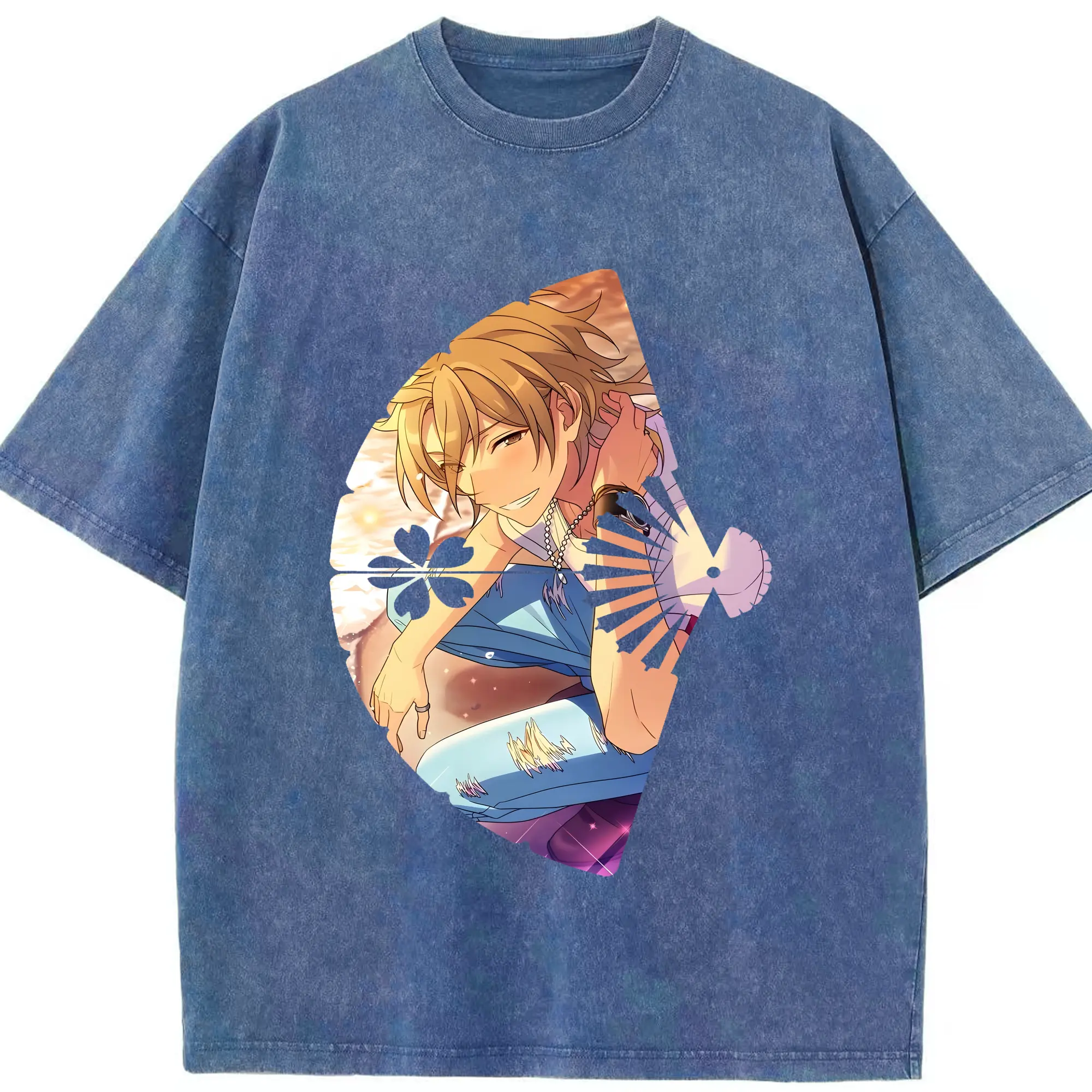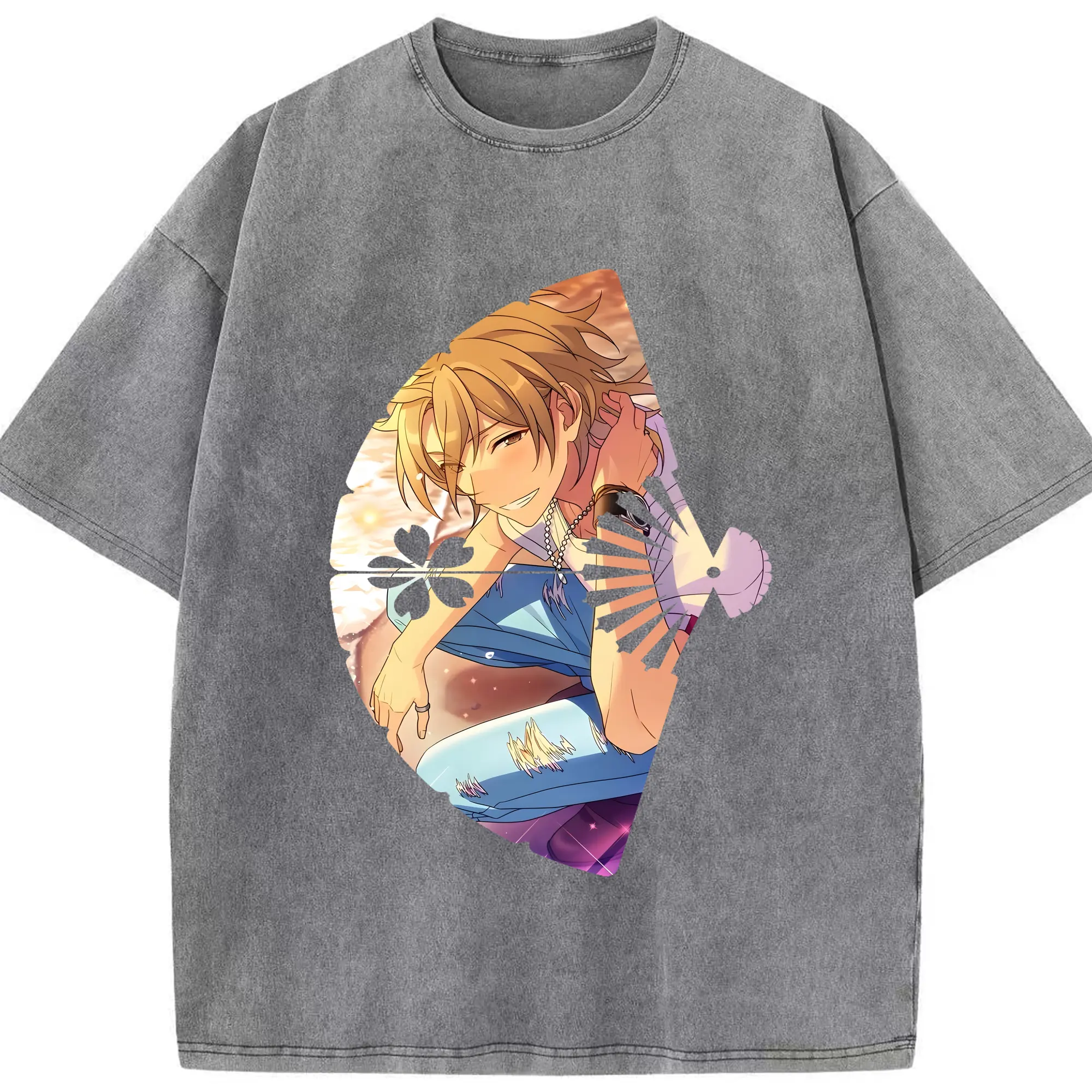 あんさん ぶる グッズ UNDEAD 羽風薫 - 綿100% ヴィンテージ風 半袖Tシャツ ・ 背面プリント ・ 柔らか肌触り ・ 通気性 快適 ・ スポーツ カジュアル 外出用