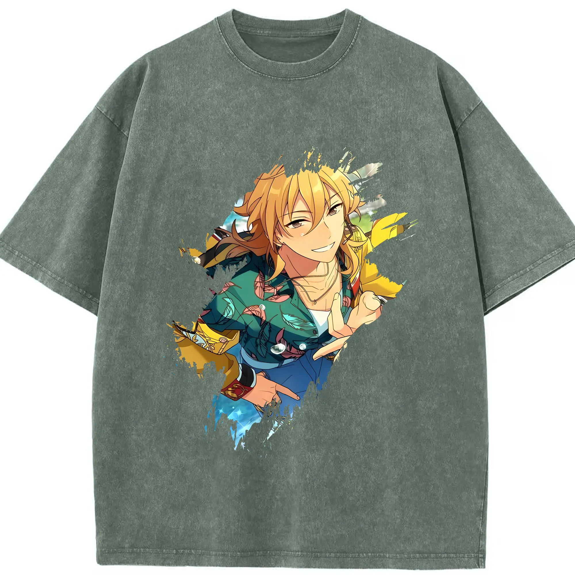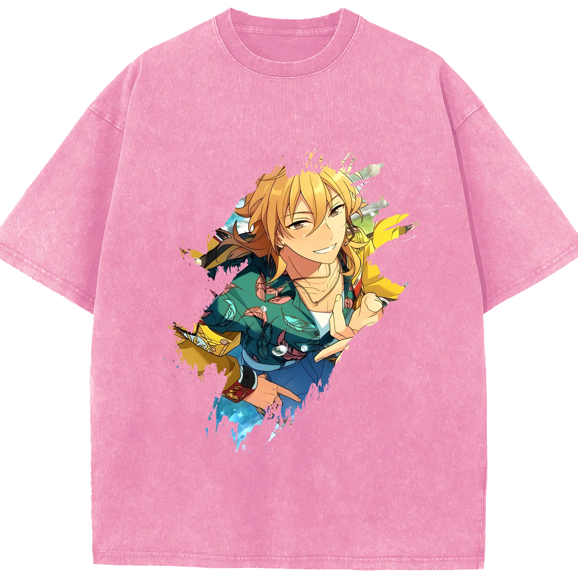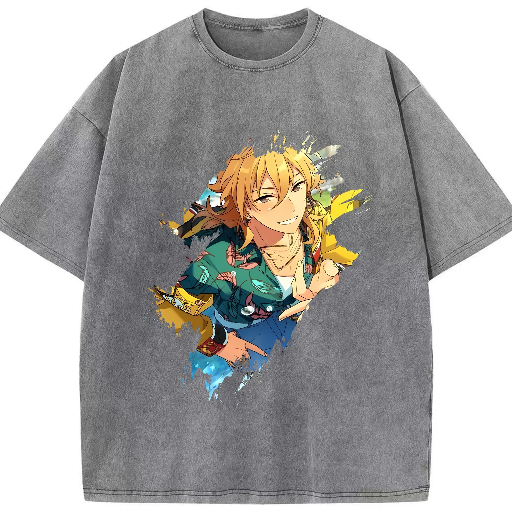 あんさん ぶる グッズ UNDEAD 羽風薫 - 綿100% ヴィンテージ風 半袖Tシャツ ・ 背面プリント ・ 柔らか肌触り ・ 通気性 快適 ・ スポーツ カジュアル 外出用