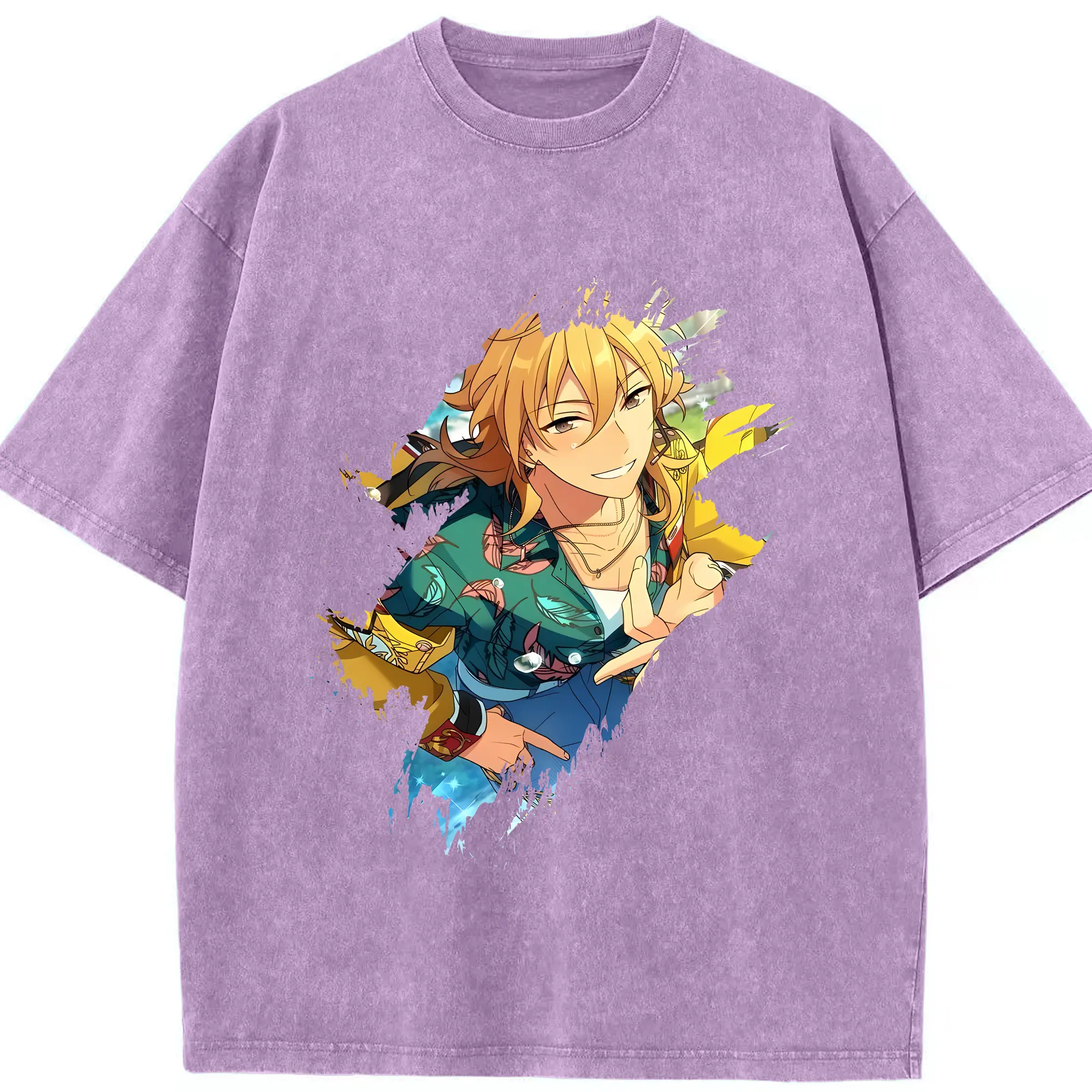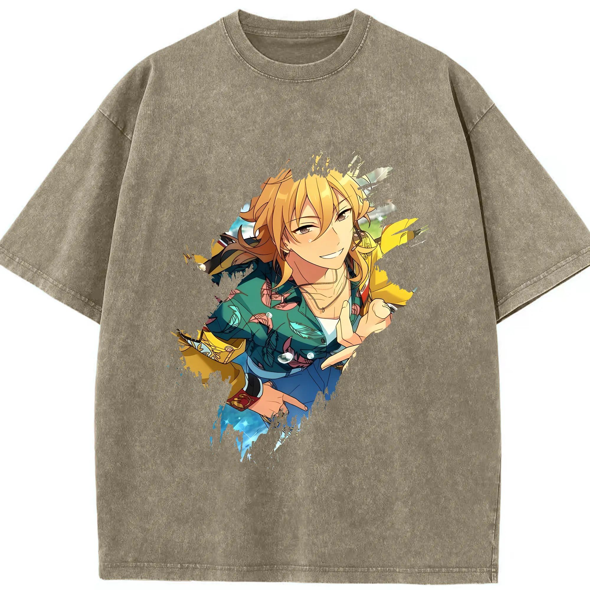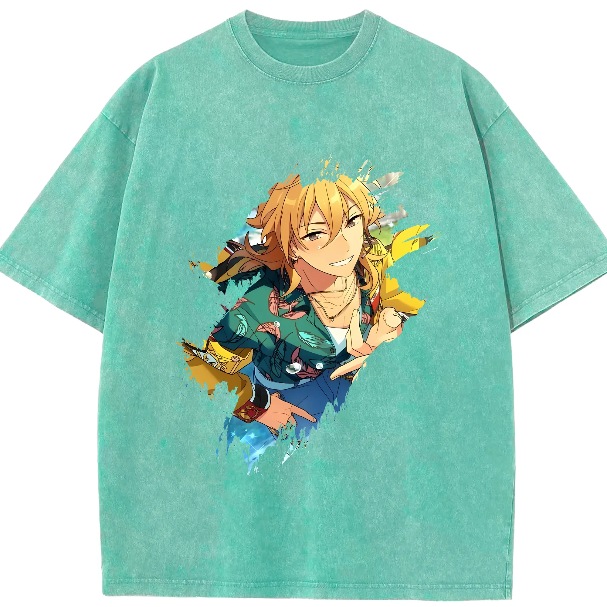 あんさん ぶる グッズ UNDEAD 羽風薫 - 綿100% ヴィンテージ風 半袖Tシャツ ・ 背面プリント ・ 柔らか肌触り ・ 通気性 快適 ・ スポーツ カジュアル 外出用