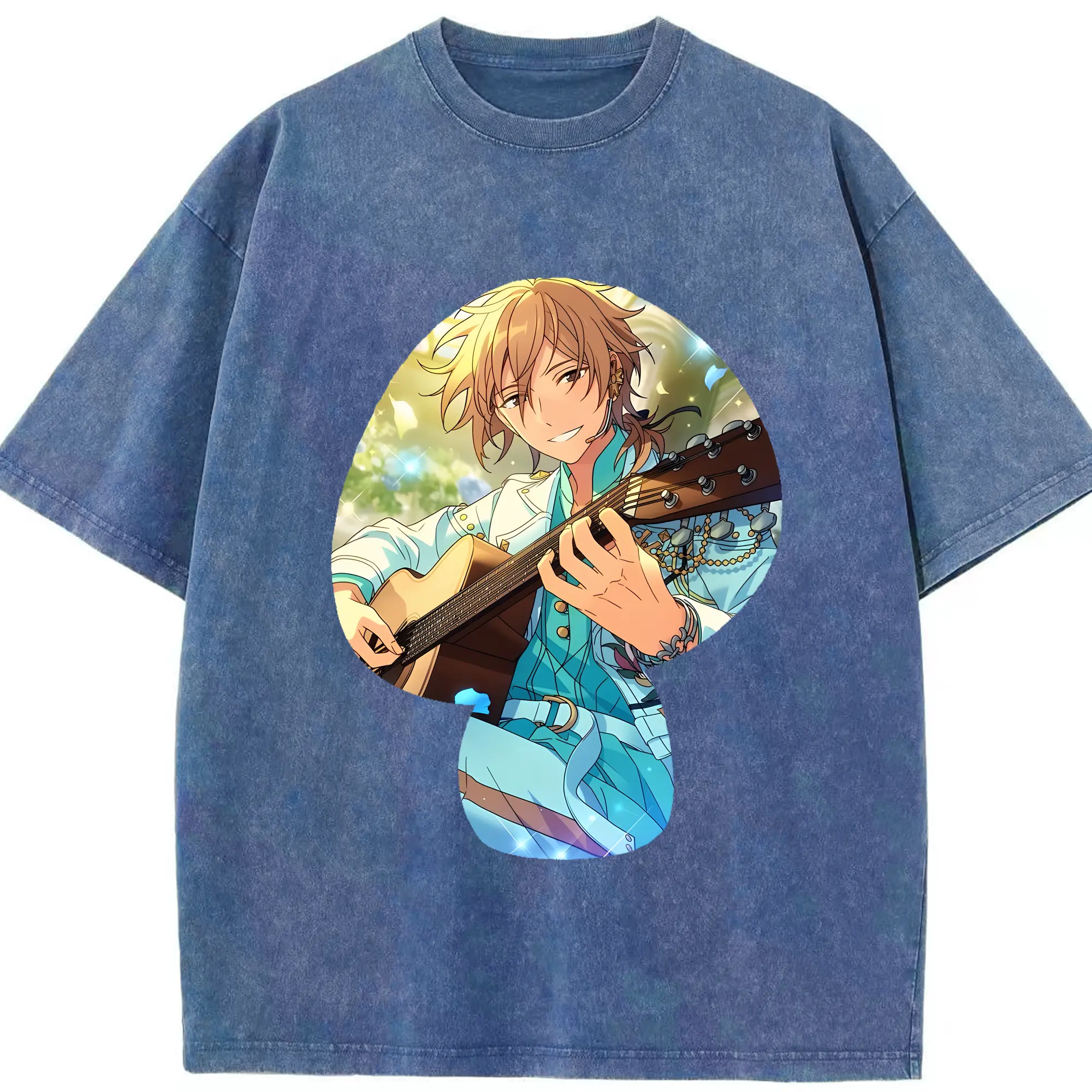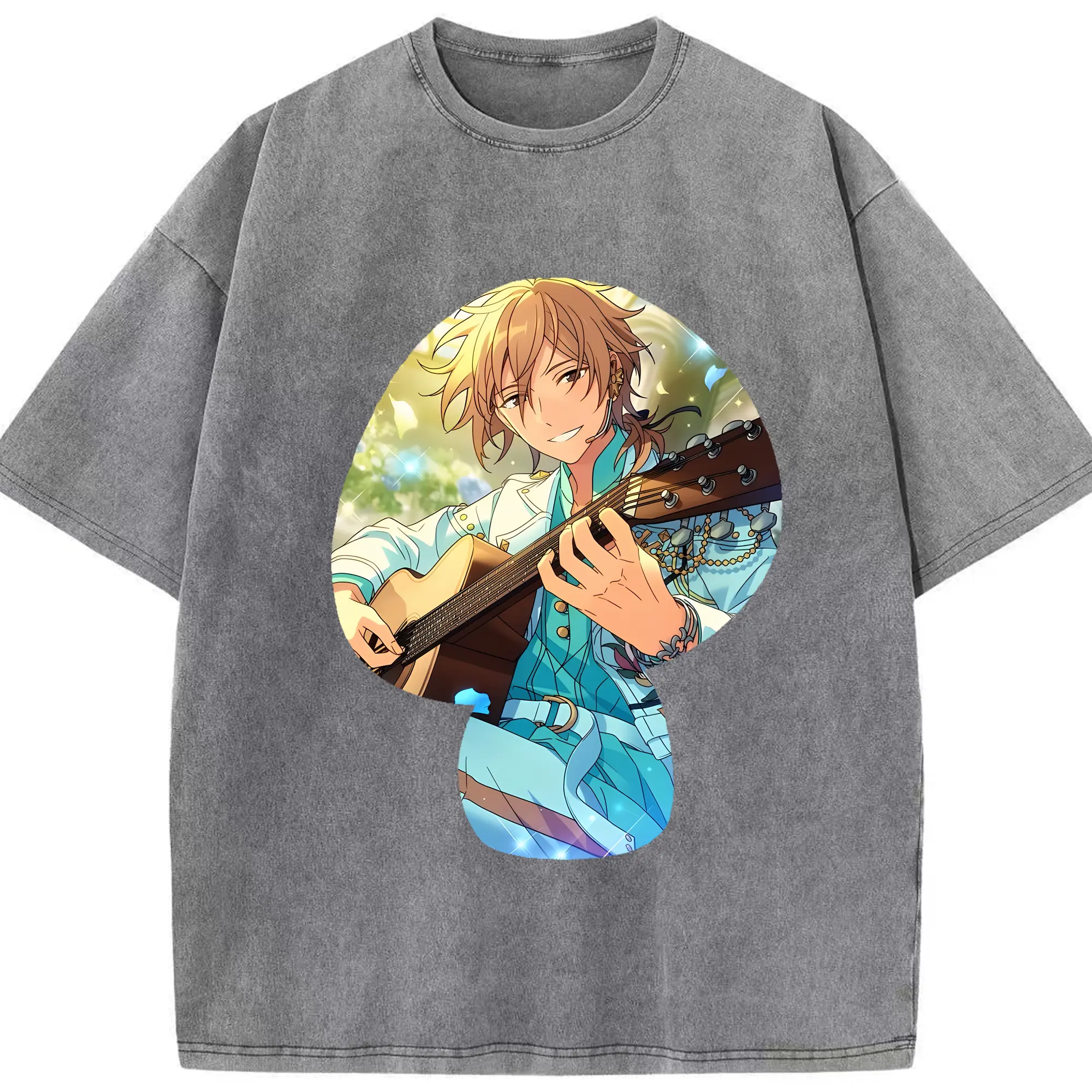 あんさん ぶる グッズ UNDEAD 羽風薫 - 綿100% ヴィンテージ風 半袖Tシャツ ・ 背面プリント ・ 柔らか肌触り ・ 通気性 快適 ・ スポーツ カジュアル 外出用