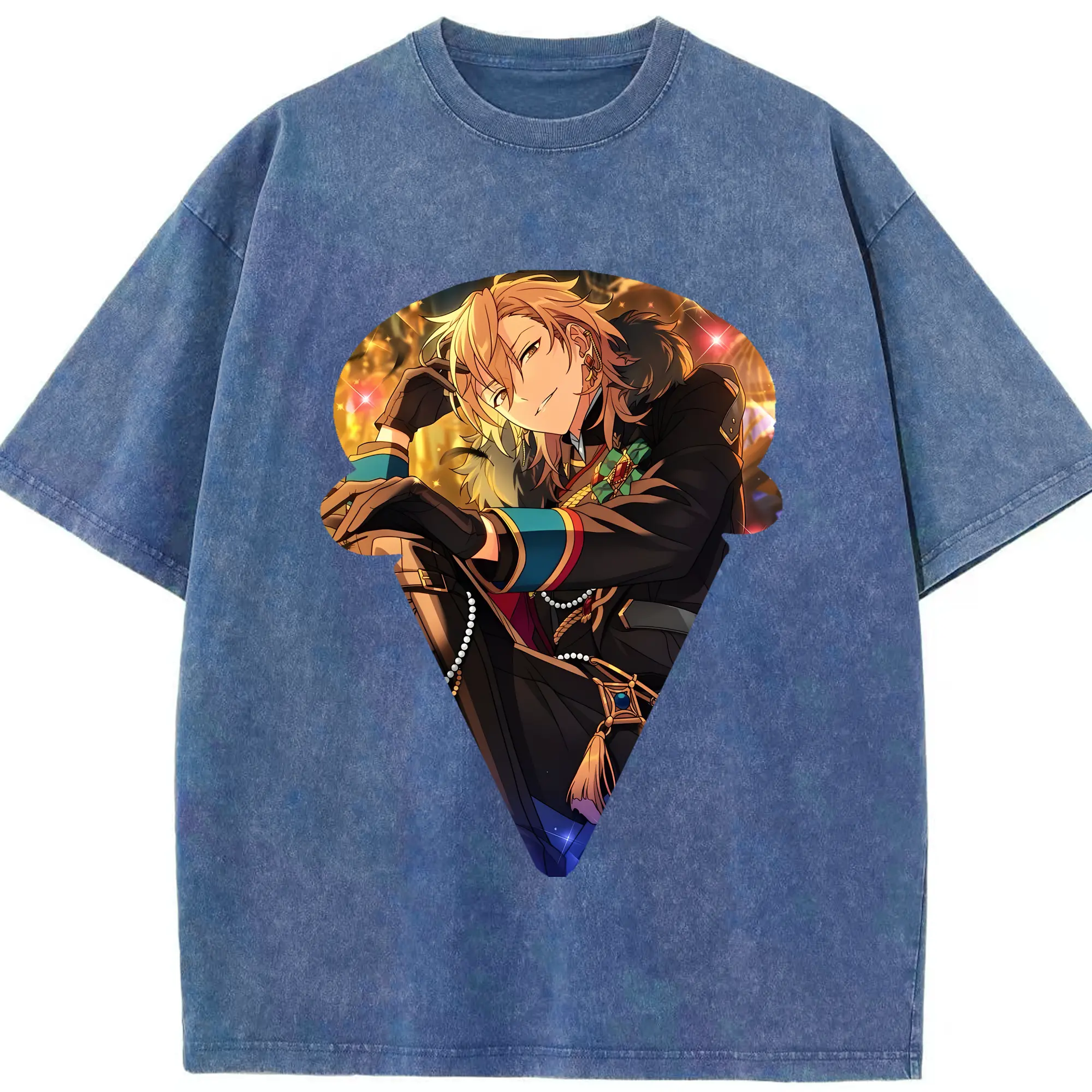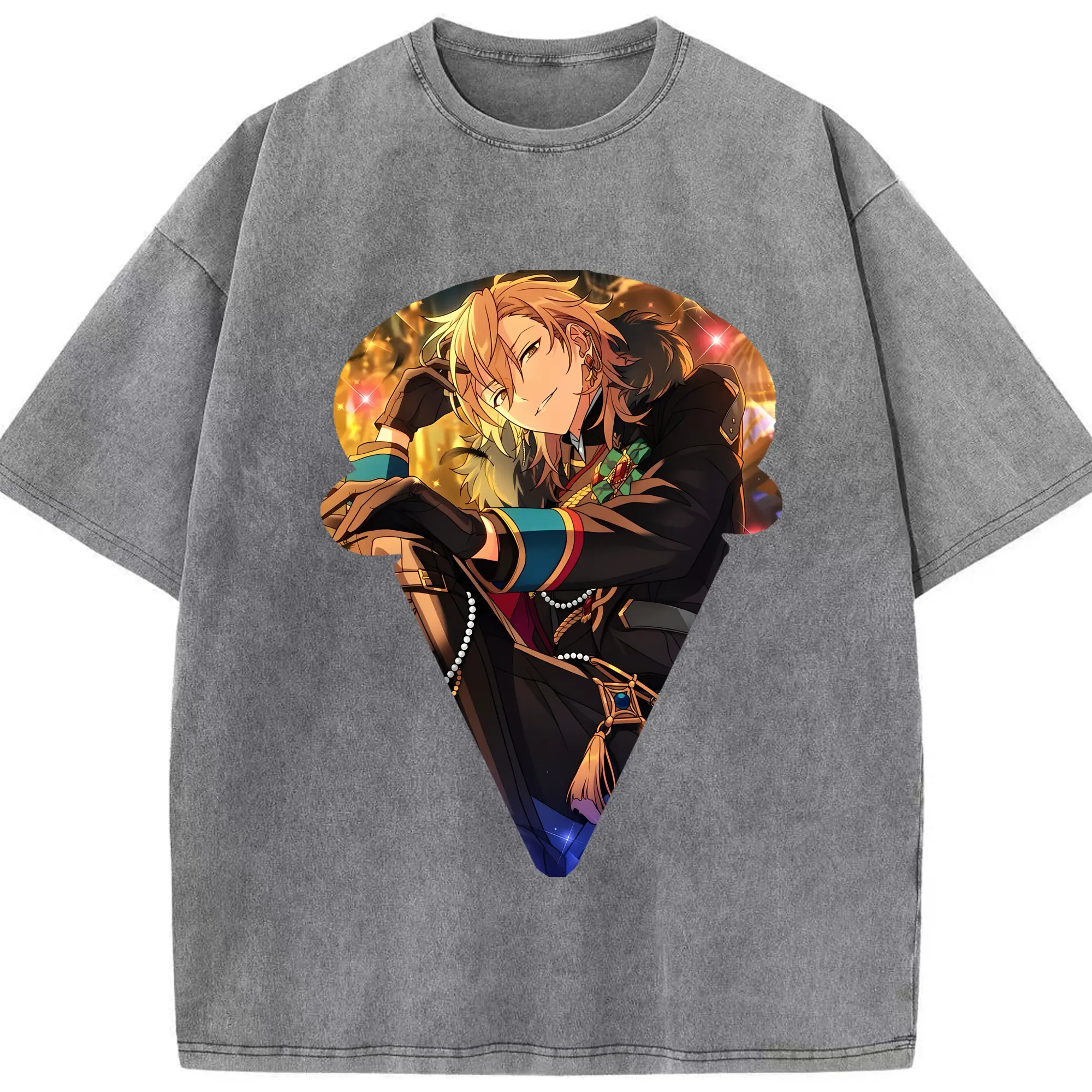 あんさん ぶる グッズ UNDEAD 羽風薫 - 綿100% ヴィンテージ風 半袖Tシャツ ・ 背面プリント ・ 柔らか肌触り ・ 通気性 快適 ・ スポーツ カジュアル 外出用