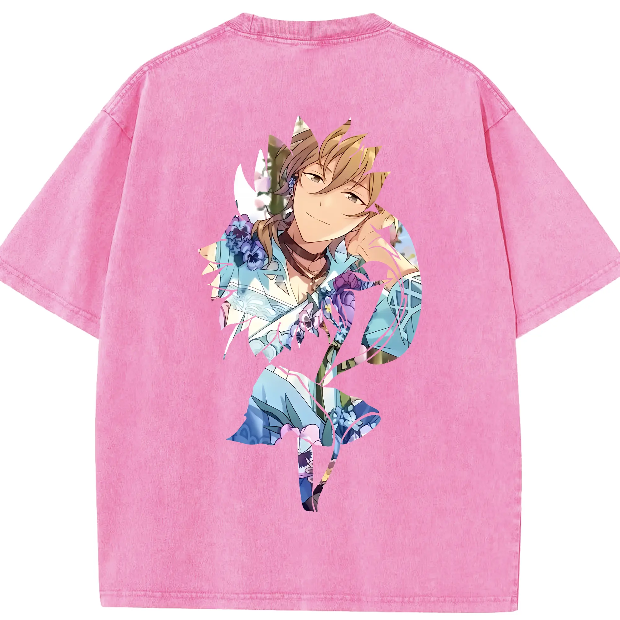 アイカツ グッズ 氷上 スミレ - 綿100% ヴィンテージ風 半袖Tシャツ ・ 背面プリント ・ 柔らか肌触り ・ 通気性 快適 ・ スポーツ カジュアル 外出用