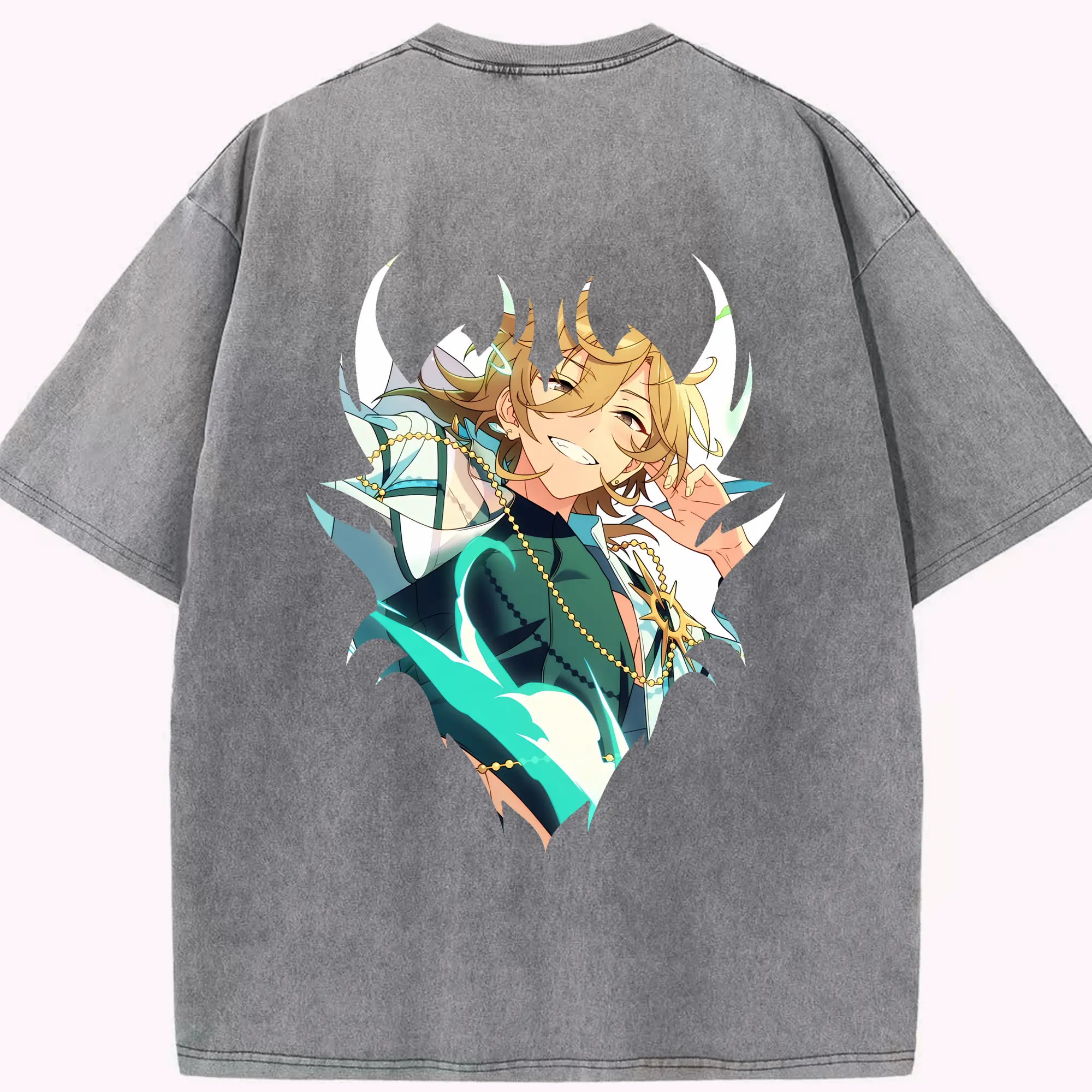 あんさん ぶる グッズ UNDEAD 羽風薫 - 綿100% ヴィンテージ風 半袖Tシャツ ・ フロントプリント ・ 柔らか肌触り ・ 通気性 快適 ・ スポーツ カジュアル 外出用