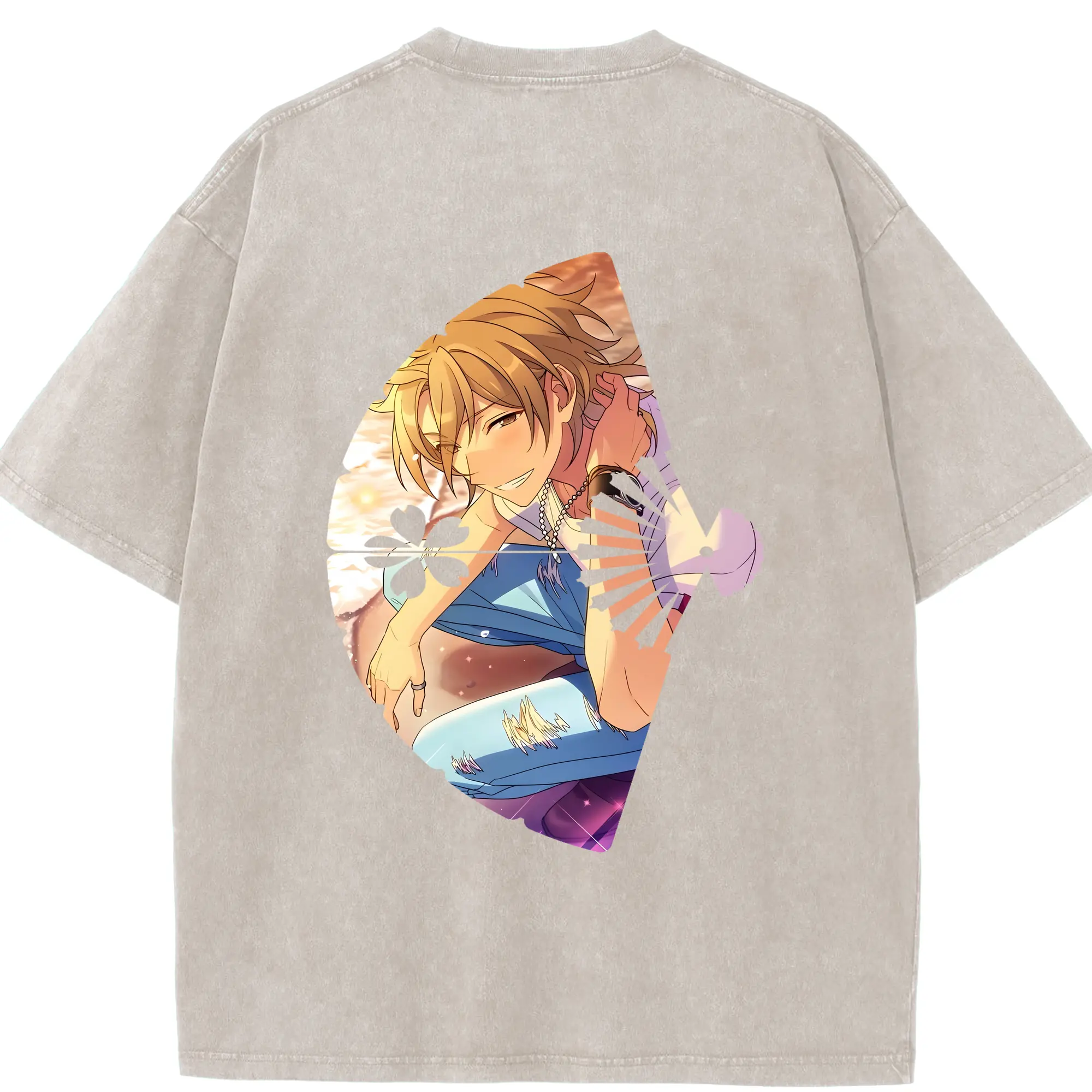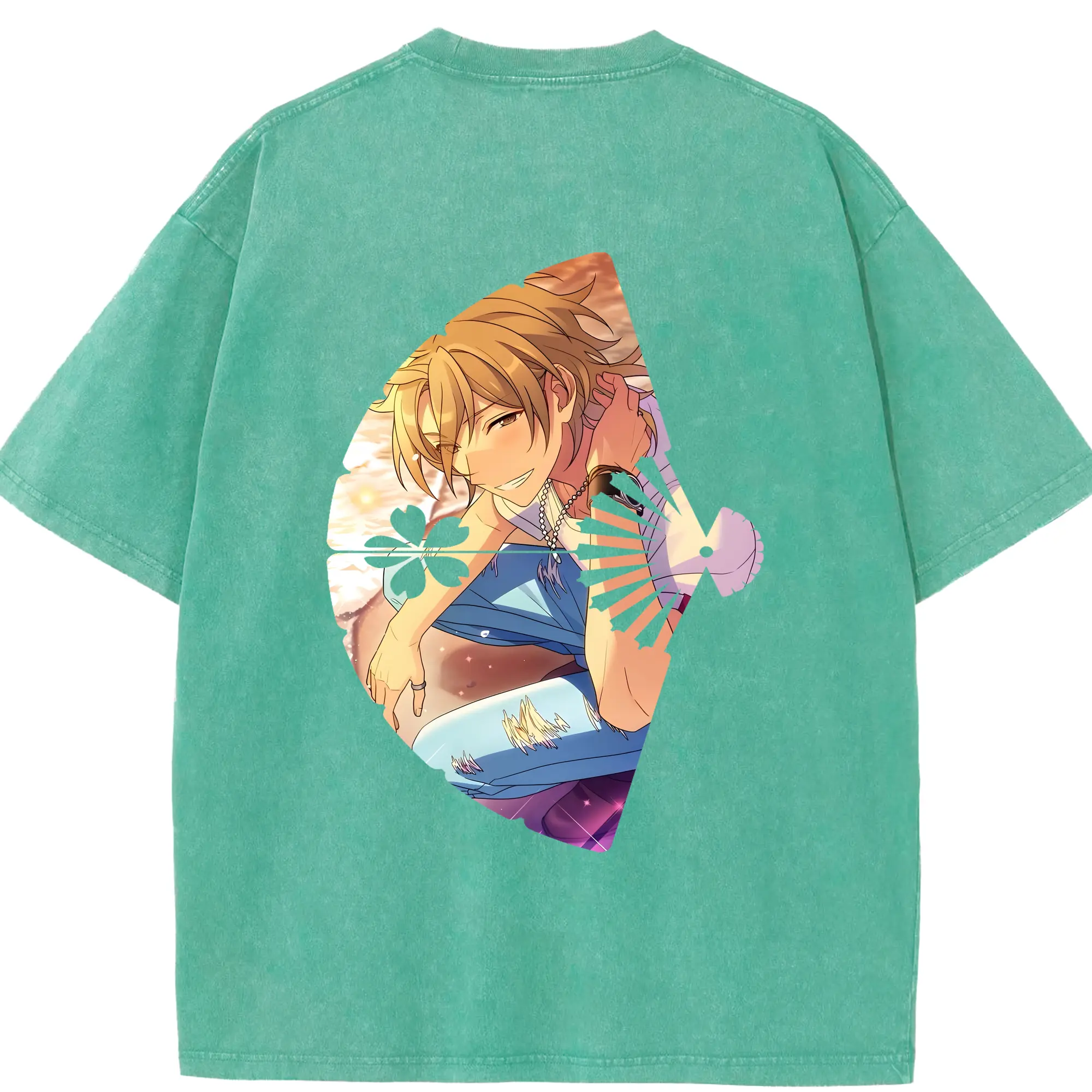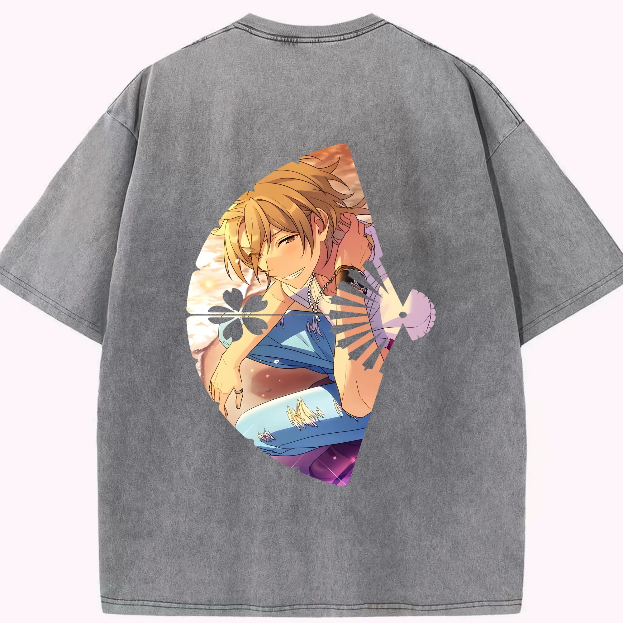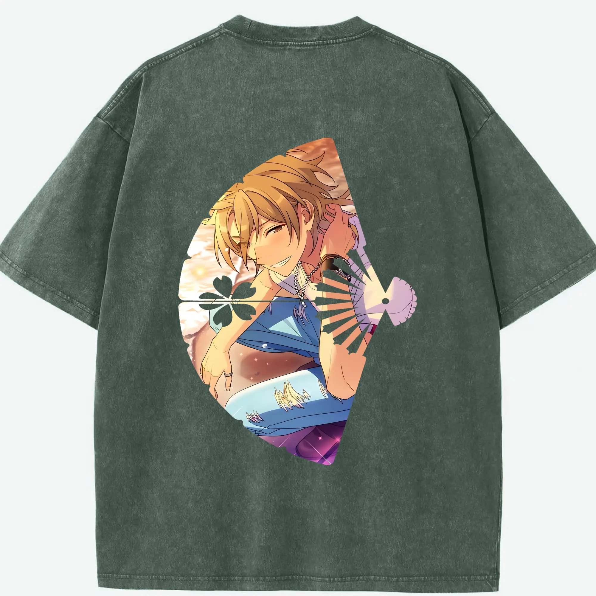 あんさん ぶる グッズ UNDEAD 羽風薫 - 綿100% ヴィンテージ風 半袖Tシャツ ・ フロントプリント ・ 柔らか肌触り ・ 通気性 快適 ・ スポーツ カジュアル 外出用